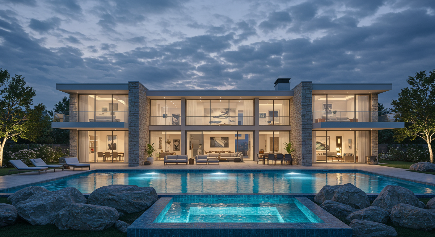 outdoor spaces. Many have patterned concrete breezeblocks to help block the intense rays of the sun and provide a unique decorative feature to houses for sale in Palm Desert. These homes tend to have clean lines and understated features, and the style takes advantage of natural materials by featuring exposed wood beams and natural stone throughout the home.