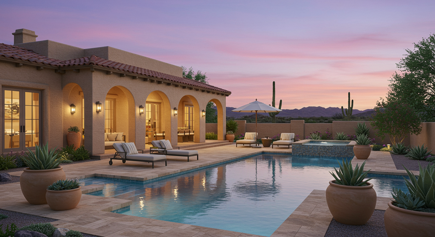 This style of home stands out among Palm Desert real estate because the exterior walls are often a bright white color. The iconic red-tiled roof is designed to keep the house cool in the hottest temperatures, and the interior of the roof has beautiful, large wooden beams.