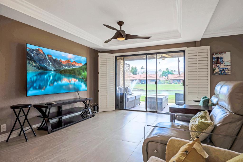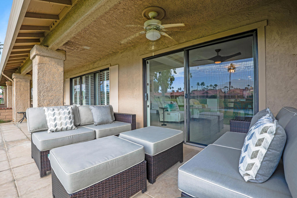 Seasonal Lease available December 2025 - April 2026. This stunning 3-bedroom home captures the essence of desert luxury living with its bright, open-concept design and seamless flow between the dining and living areas, perfect for entertaining. The spacious chef's kitchen, upgraded with new countertops and modern appliances, opens to the great room, creating an inviting space filled with natural light. Step outside to your west-facing patio and take in the lush green fairways, sparkling lake, and breathtaking panoramic mountain views. Every detail has been thoughtfully updated, including new flooring and paint throughout, new carpet in all bedrooms, and two fully remodeled bathrooms. The home features three bedrooms, including a generous primary suite, a welcoming guest room, and a third room currently used as an office. Ideally situated in the heart of Palm Desert, Chaparral Country Club offers resort-style amenities including a clubhouse, restaurant, 18-hole golf course, fitness center, tennis and pickleball courts, and multiple pools and spas. Located near world-class shopping, theaters, the El Paseo fashion district, and top-rated restaurants, this home delivers the best of desert living.