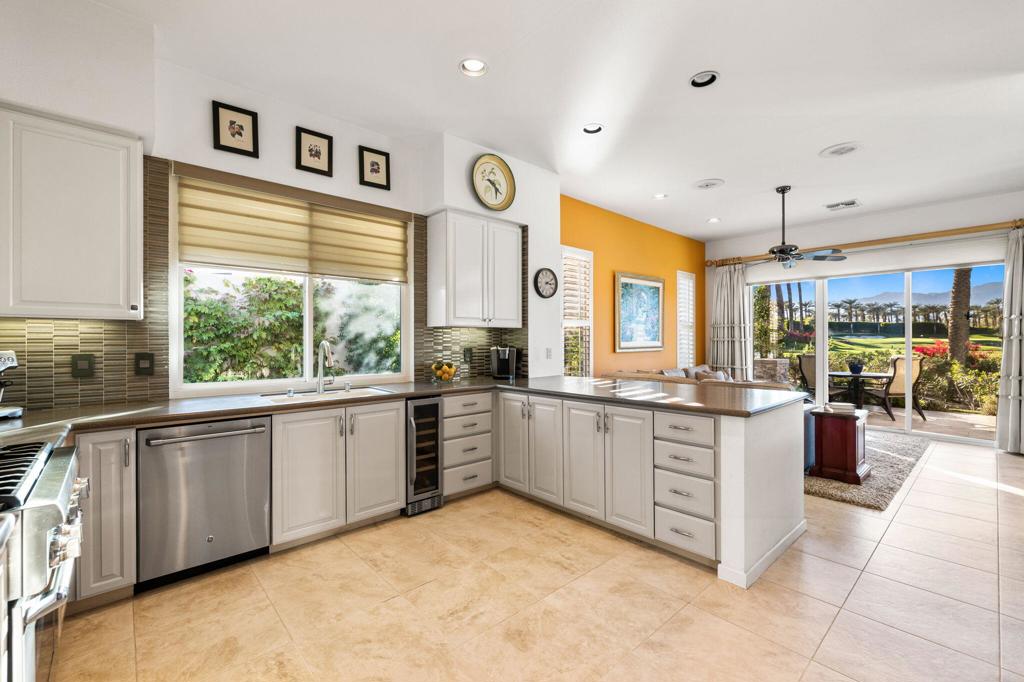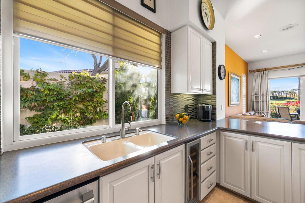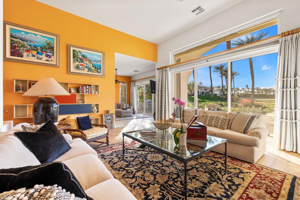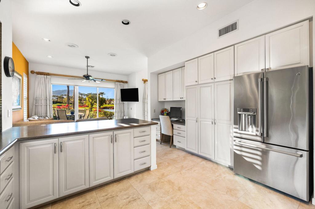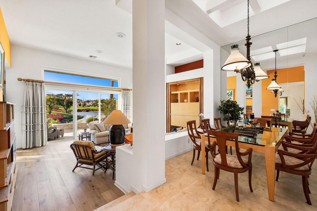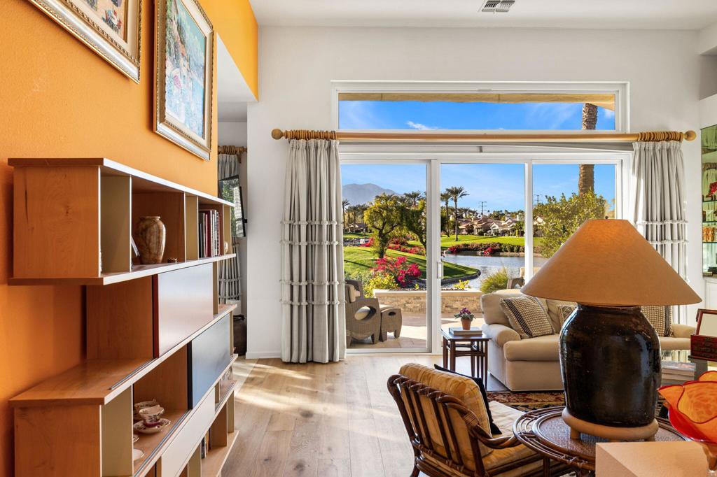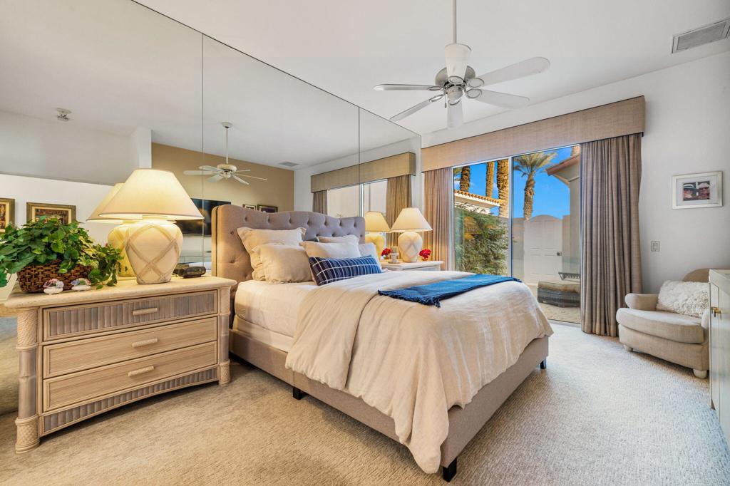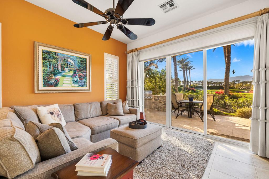 Welcome to the rare and stunning Acacia 5 home, a Palm Desert oasis featuring its own pool and spa in the beautiful flora and fauna of the private courtyard. Nestled in Indian Ridge Country Club, this home offers breathtaking panoramic views of serene lakes, cascading waterfalls, majestic mountains, and the signature 8th fairway of the Grove Golf Course. The newly expanded Travertine patio is an entertainer's dream, complete with a built-in BBQ island, ample seating, a cozy fire pit, and the perfect ambiance for enjoying spectacular desert sunsets with your favorite drink in hand. Inside, the spacious kitchen shines with newer stainless-steel appliances, a chic tile backsplash, peninsula bar seating, and a convenient desk area for organizing recipes or planning your next gathering. Luxurious new wood plank flooring and fresh carpeting in the bedrooms add a modern touch of elegance throughout the home. The primary suite features a charming outdoor seating area, perfect for savoring your morning coffee or unwinding with a good book. En-suite guest bedrooms ensure comfort and privacy for visiting family and friends. Doors and windows have been replaced and there is nothing left for you to do except bring your toothbrush. With views this extraordinary, you'll never want to leave. Offered furnished per inventory, with a Club Membership available with no wait. This is a rare opportunity to embrace the ultimate desert lifestyle--don't miss it!