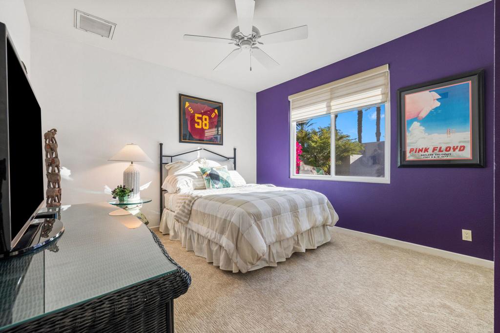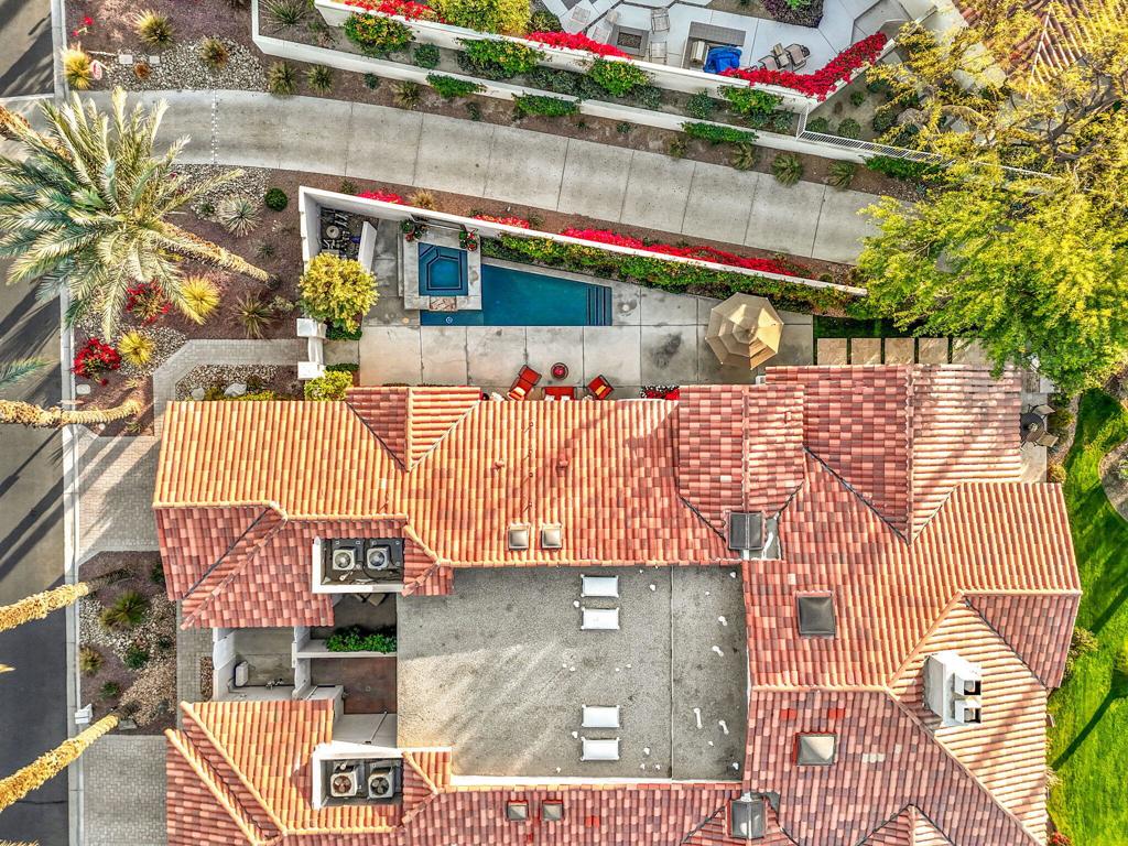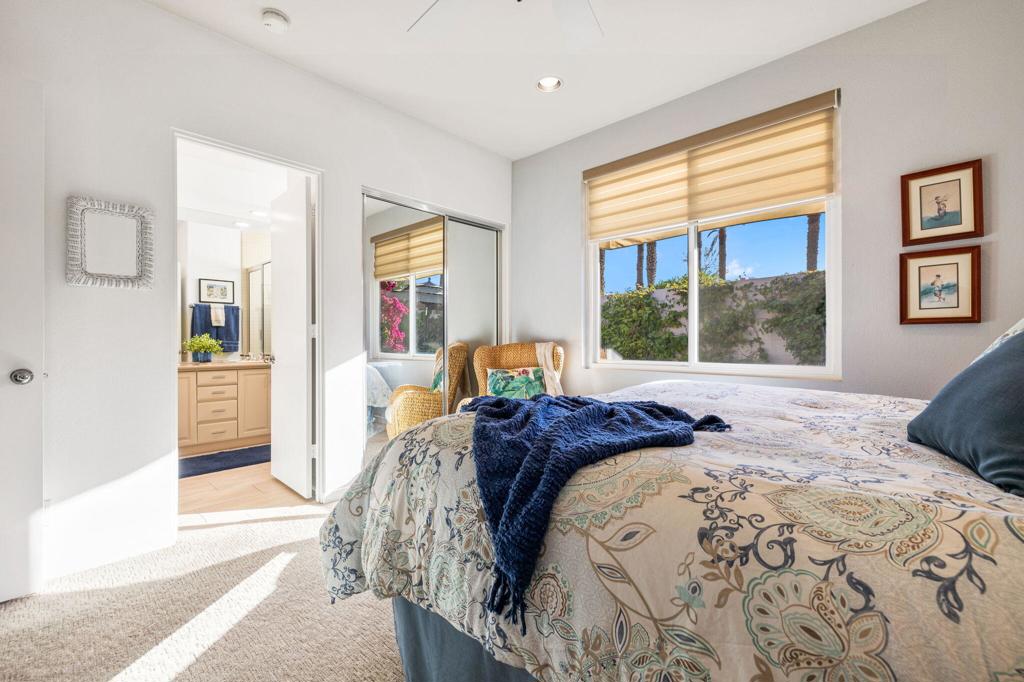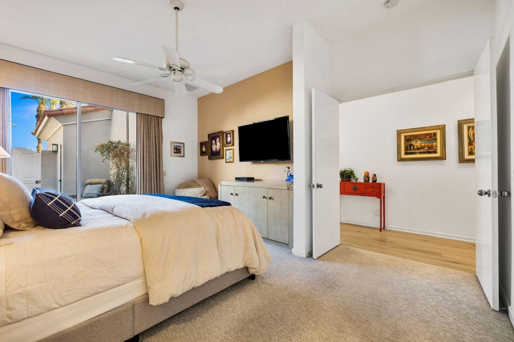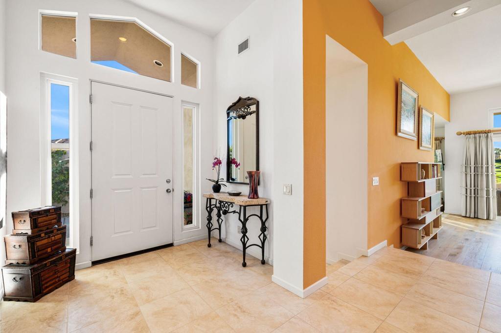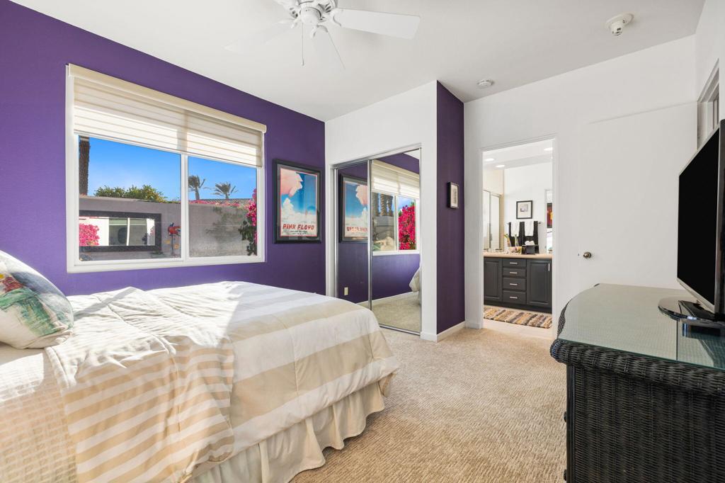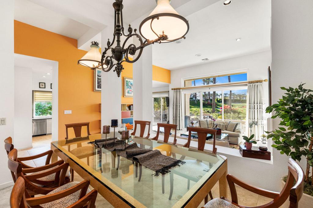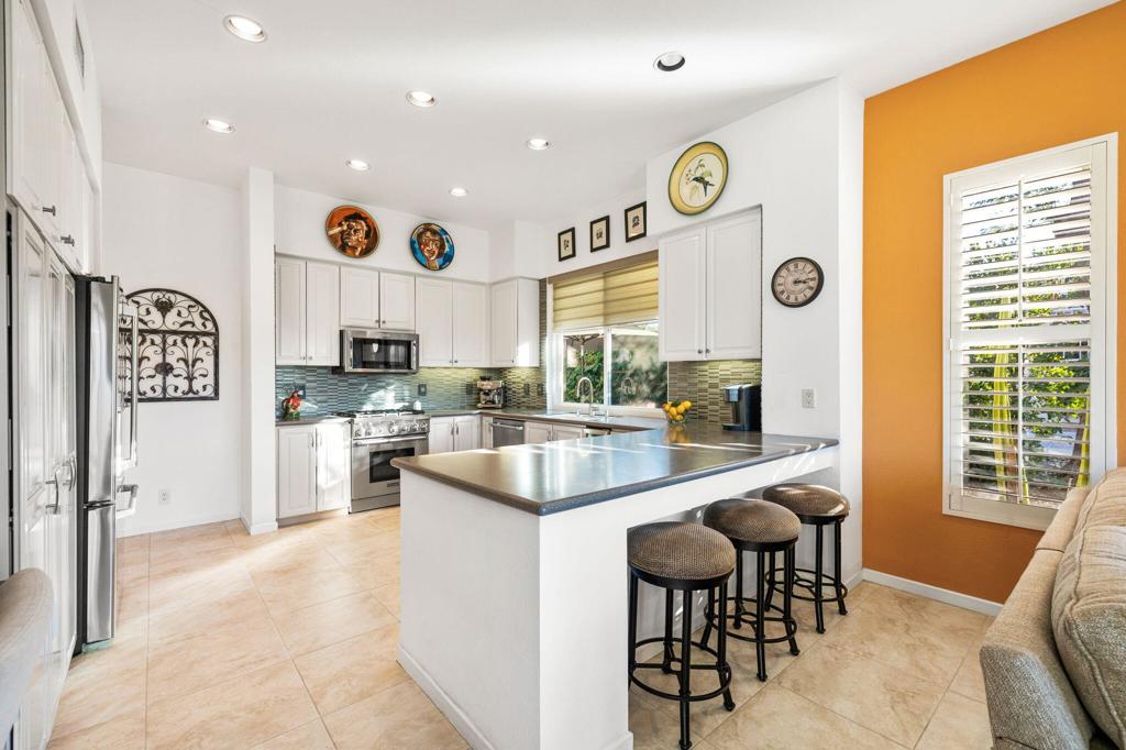 Welcome to the rare and stunning Acacia 5 home, a Palm Desert oasis featuring its own pool and spa in the beautiful flora and fauna of the private courtyard. Nestled in Indian Ridge Country Club, this home offers breathtaking panoramic views of serene lakes, cascading waterfalls, majestic mountains, and the signature 8th fairway of the Grove Golf Course. The newly expanded Travertine patio is an entertainer's dream, complete with a built-in BBQ island, ample seating, a cozy fire pit, and the perfect ambiance for enjoying spectacular desert sunsets with your favorite drink in hand. Inside, the spacious kitchen shines with newer stainless-steel appliances, a chic tile backsplash, peninsula bar seating, and a convenient desk area for organizing recipes or planning your next gathering. Luxurious new wood plank flooring and fresh carpeting in the bedrooms add a modern touch of elegance throughout the home. The primary suite features a charming outdoor seating area, perfect for savoring your morning coffee or unwinding with a good book. En-suite guest bedrooms ensure comfort and privacy for visiting family and friends. Doors and windows have been replaced and there is nothing left for you to do except bring your toothbrush. With views this extraordinary, you'll never want to leave. Offered furnished per inventory, with a Club Membership available with no wait. This is a rare opportunity to embrace the ultimate desert lifestyle--don't miss it!