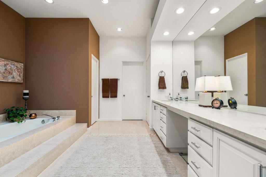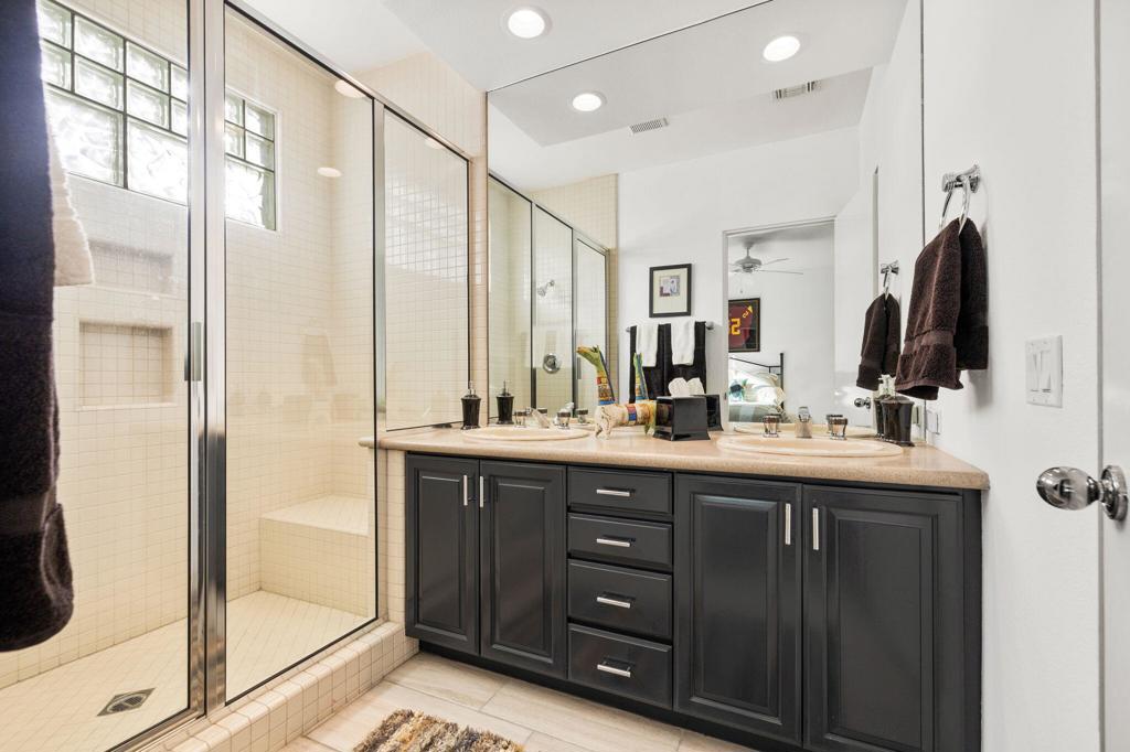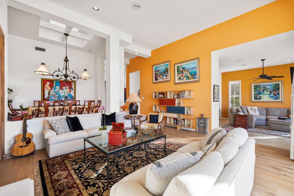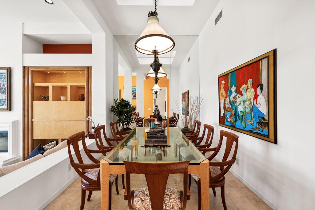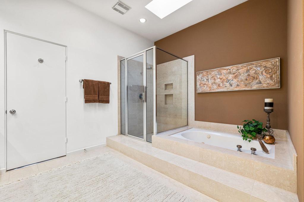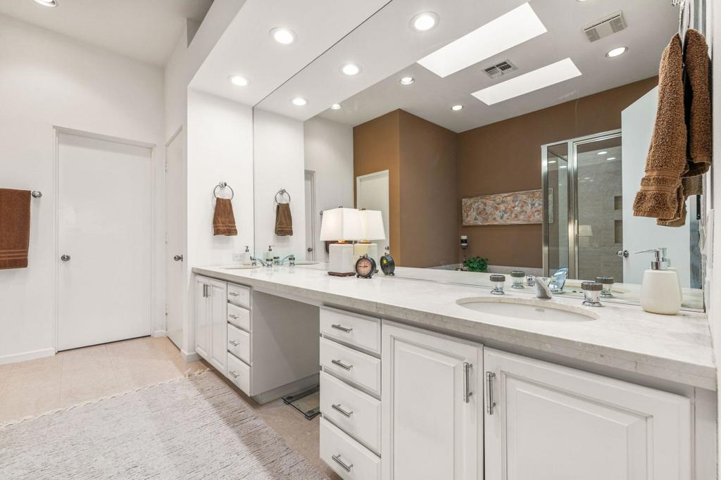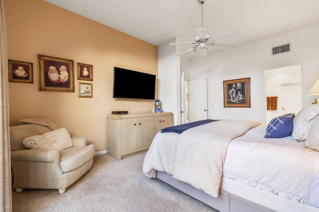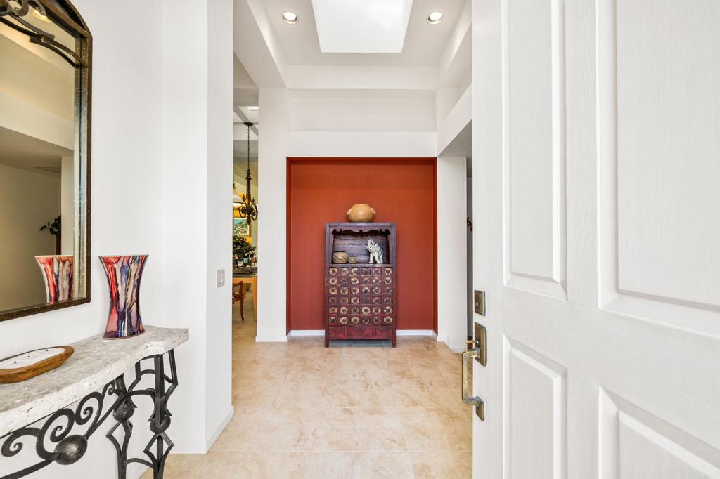 Welcome to the rare and stunning Acacia 5 home, a Palm Desert oasis featuring its own pool and spa in the beautiful flora and fauna of the private courtyard. Nestled in Indian Ridge Country Club, this home offers breathtaking panoramic views of serene lakes, cascading waterfalls, majestic mountains, and the signature 8th fairway of the Grove Golf Course. The newly expanded Travertine patio is an entertainer's dream, complete with a built-in BBQ island, ample seating, a cozy fire pit, and the perfect ambiance for enjoying spectacular desert sunsets with your favorite drink in hand. Inside, the spacious kitchen shines with newer stainless-steel appliances, a chic tile backsplash, peninsula bar seating, and a convenient desk area for organizing recipes or planning your next gathering. Luxurious new wood plank flooring and fresh carpeting in the bedrooms add a modern touch of elegance throughout the home. The primary suite features a charming outdoor seating area, perfect for savoring your morning coffee or unwinding with a good book. En-suite guest bedrooms ensure comfort and privacy for visiting family and friends. Doors and windows have been replaced and there is nothing left for you to do except bring your toothbrush. With views this extraordinary, you'll never want to leave. Offered furnished per inventory, with a Club Membership available with no wait. This is a rare opportunity to embrace the ultimate desert lifestyle--don't miss it!