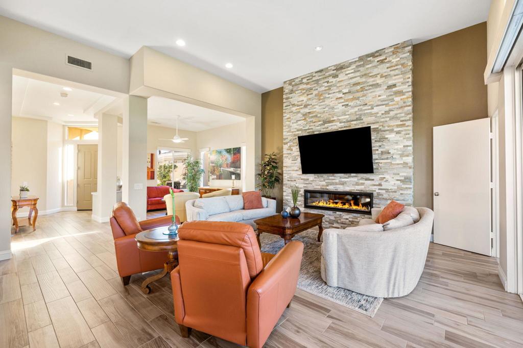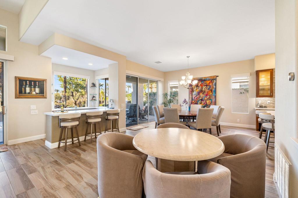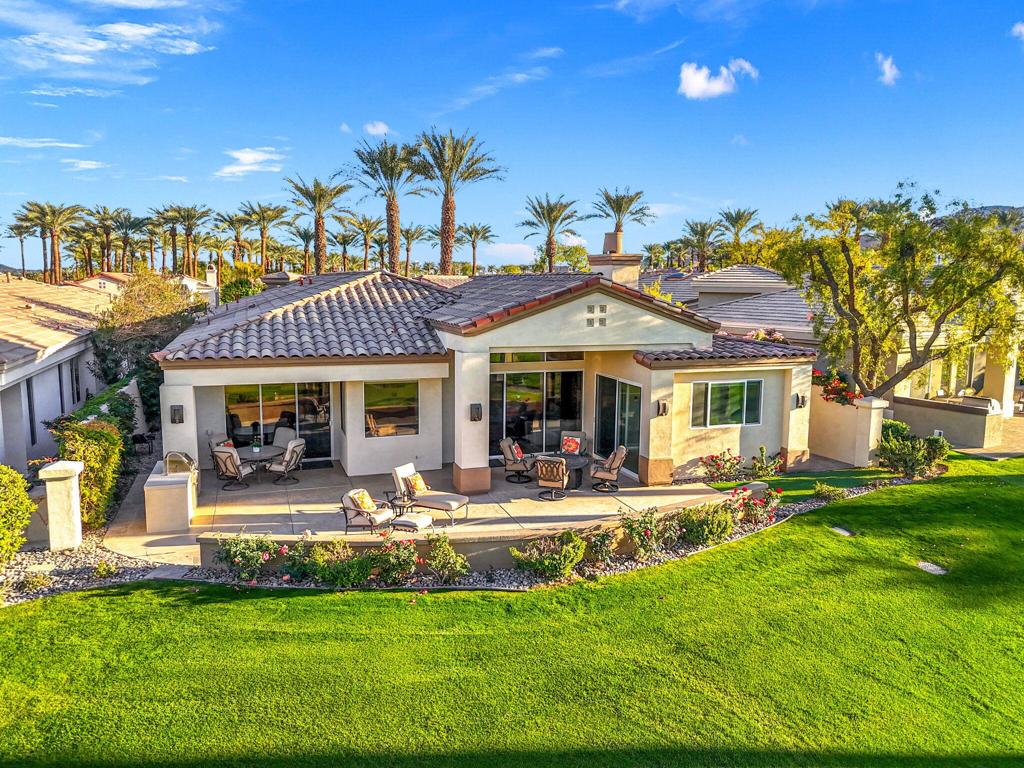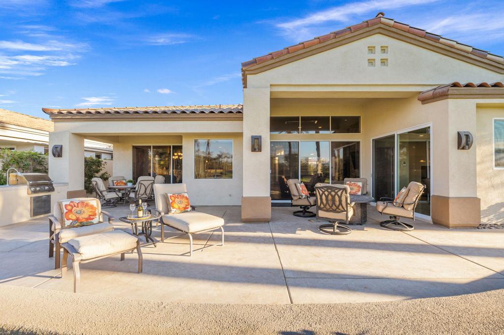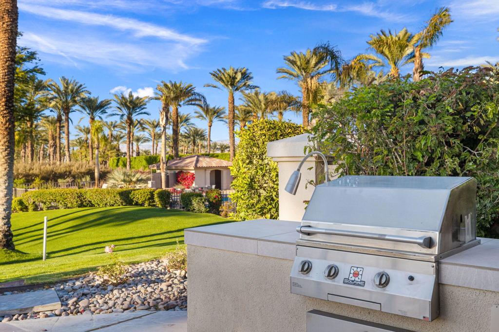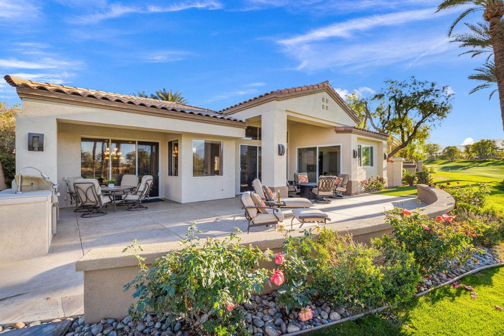 No wait for a Golf Membership!! Welcome to 181 Eagle Dance Circle, a beautifully reimagined Palo Verde 3 home in Indian Ridge Country Club Palm Desert. Set in a premier location within the community, this luxurious 4-bedroom, 4.5-bath residence spans 2,959 sq. ft. and offers a seamless blend of elegance and modern design. The remodeled kitchen features quartz countertops, a spacious island with a prep sink, induction range, double-drawer dishwasher, and a unique walk-in pantry created by a clever reconfiguration. The fourth bedroom, added in 2020, boasts beautiful tile flooring, a kitchenette, Murphy bed, and sliding glass doors to the patio. The primary bath is a spa-like retreat with a soaking tub, large-format tiles, quartz countertops, and stylish lighting. Updates include LED lighting, a stacked-stone linear fireplace, leased solar panels, and new mechanical systems. Outdoors, enjoy the built-in BBQ, heaters, and breathtaking Mount San Jacinto views from the expanded patio. The HOA handles your exterior maintenance, giving you a stress-free, resort-style life. Move-in ready and impeccably designed, this is the desert retreat you've been waiting for. Schedule your private showing today!