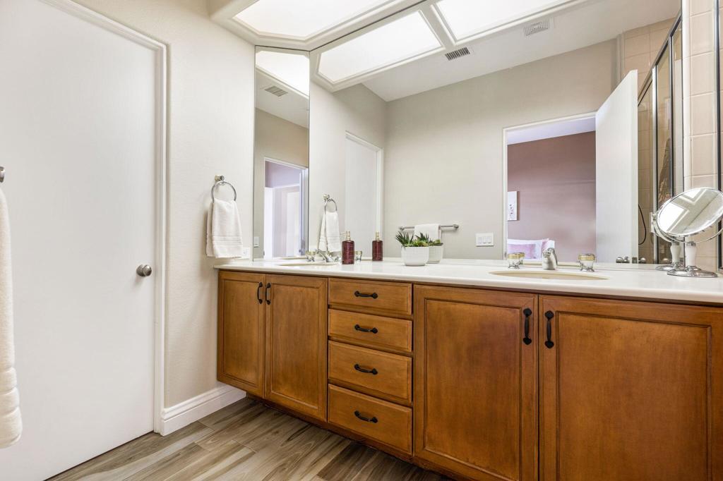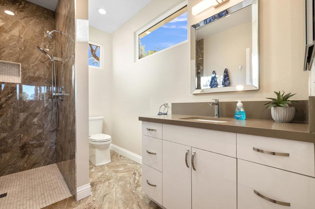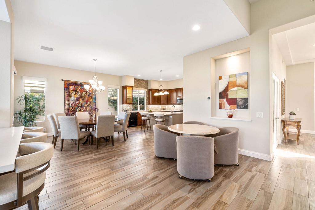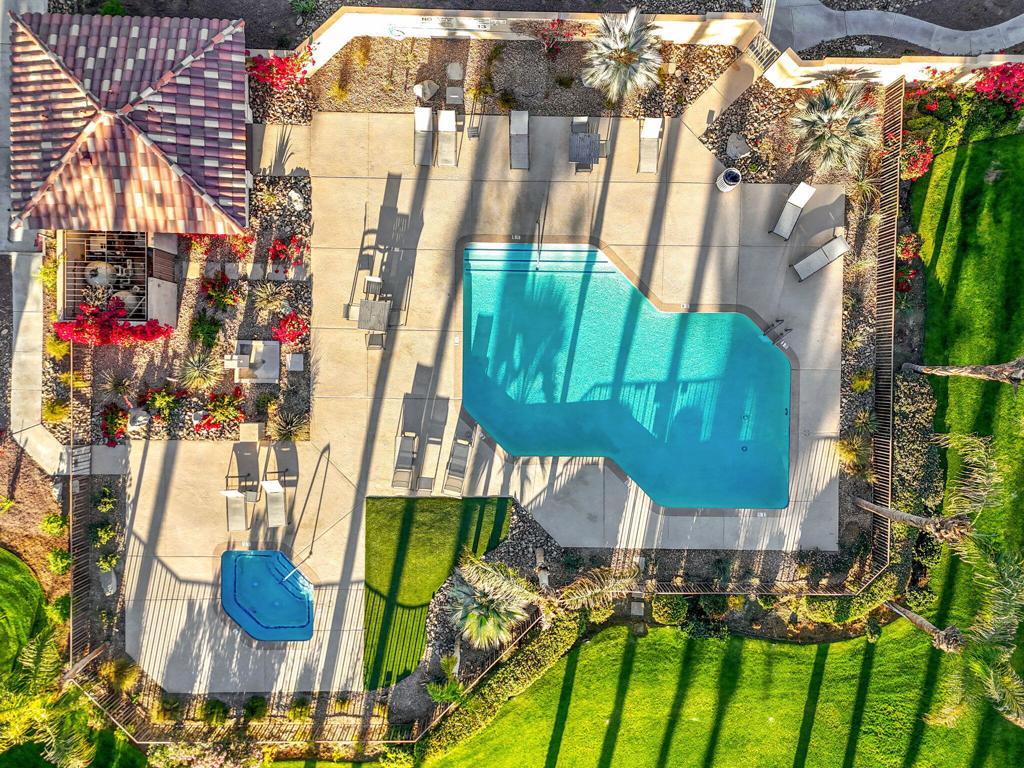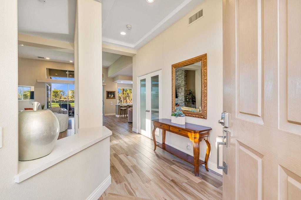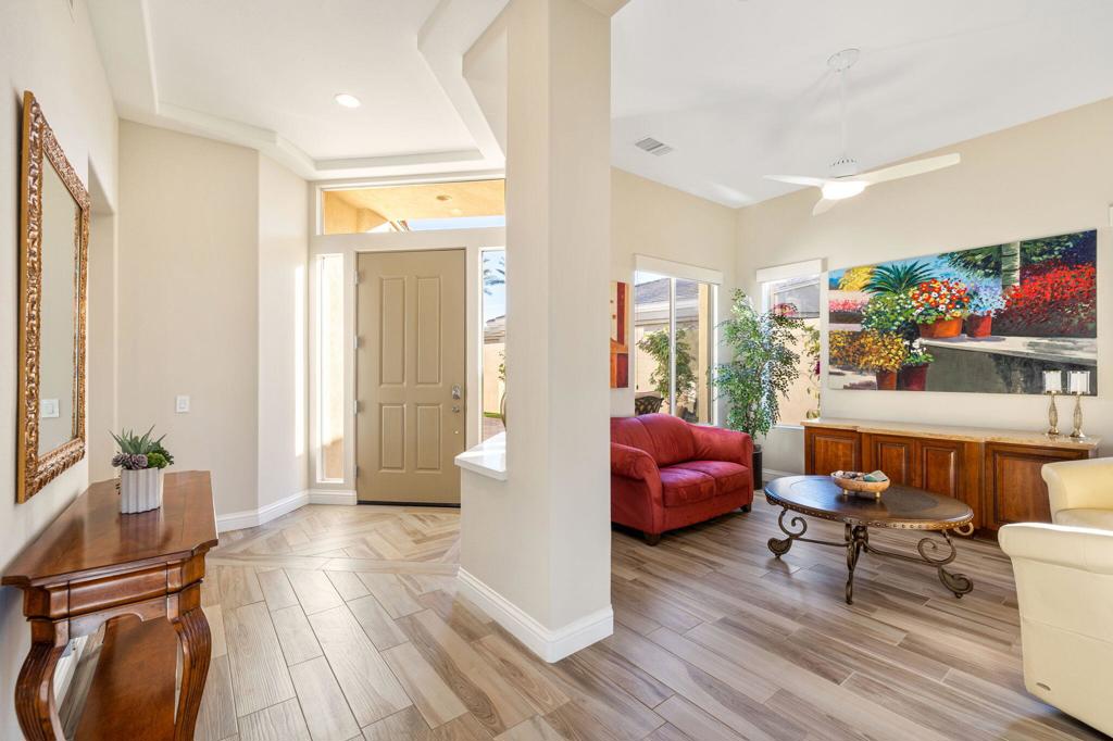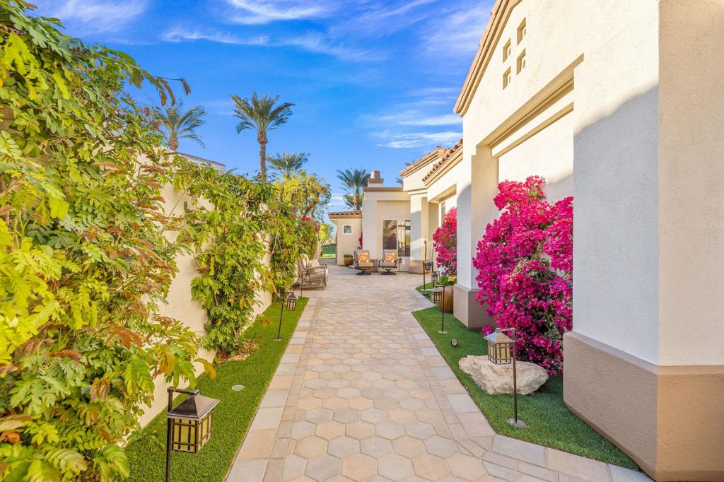No wait for a Golf Membership!! Welcome to 181 Eagle Dance Circle, a beautifully reimagined Palo Verde 3 home in Indian Ridge Country Club Palm Desert. Set in a premier location within the community, this luxurious 4-bedroom, 4.5-bath residence spans 2,959 sq. ft. and offers a seamless blend of elegance and modern design. The remodeled kitchen features quartz countertops, a spacious island with a prep sink, induction range, double-drawer dishwasher, and a unique walk-in pantry created by a clever reconfiguration. The fourth bedroom, added in 2020, boasts beautiful tile flooring, a kitchenette, Murphy bed, and sliding glass doors to the patio. The primary bath is a spa-like retreat with a soaking tub, large-format tiles, quartz countertops, and stylish lighting. Updates include LED lighting, a stacked-stone linear fireplace, leased solar panels, and new mechanical systems. Outdoors, enjoy the built-in BBQ, heaters, and breathtaking Mount San Jacinto views from the expanded patio. The HOA handles your exterior maintenance, giving you a stress-free, resort-style life. Move-in ready and impeccably designed, this is the desert retreat you've been waiting for. Schedule your private showing today!