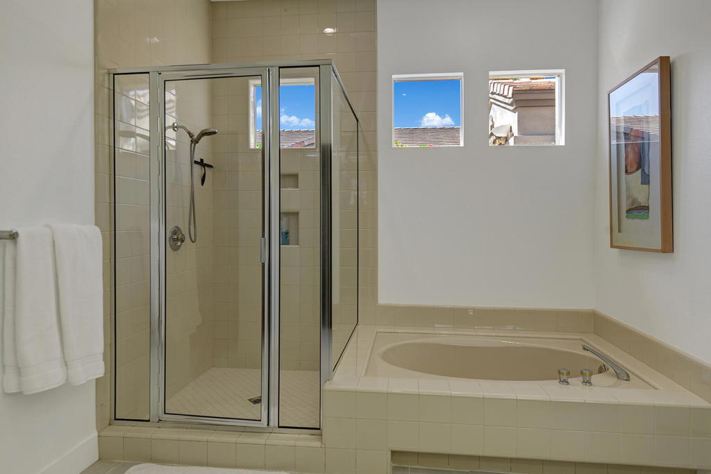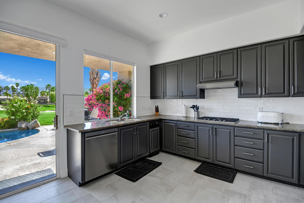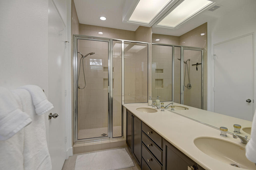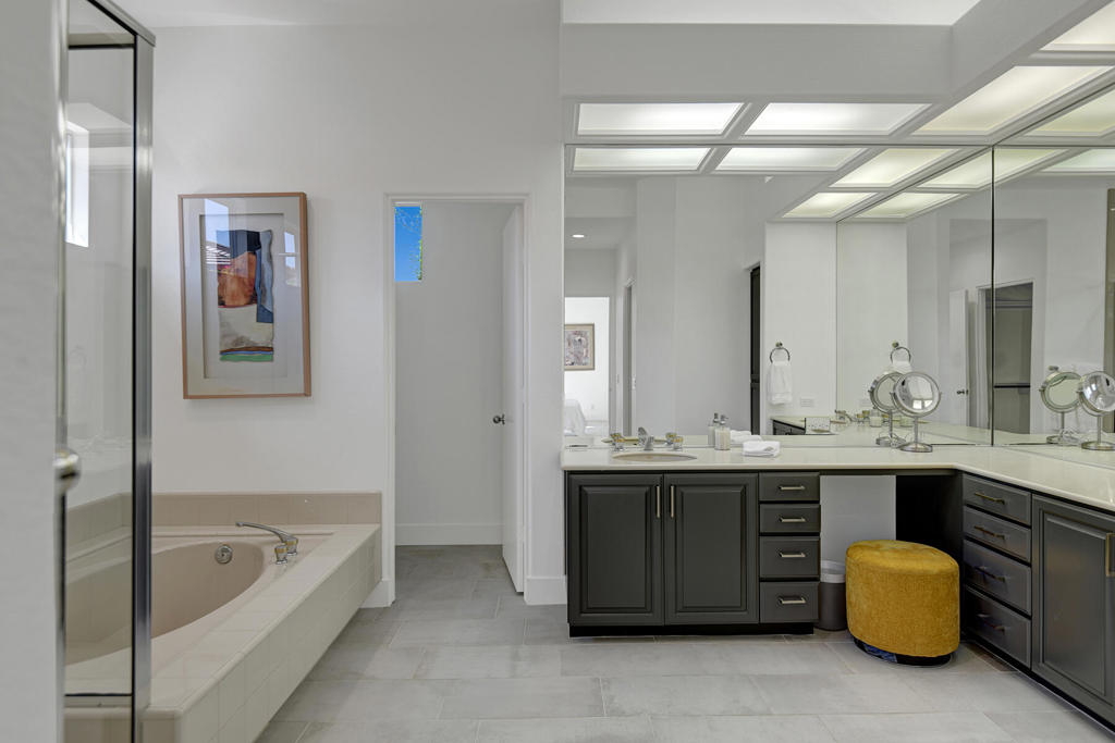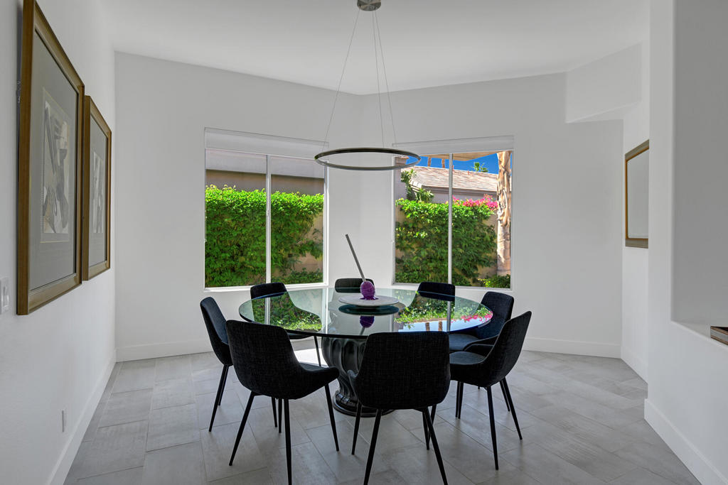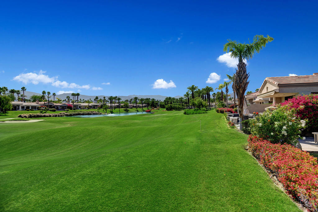 Available for off-season summer living - May 2026 through October 2026. Also available for November 2026 at $7,500. Welcome to effortless desert living in this south-facing 3 bedroom, 3.5 bath retreat designed for sunshine, space, and serious relaxation. The open floor plan flows seamlessly to a sparkling pool and spa, making it the perfect escape from reality. Thoughtful upgrades elevate every corner: Hunter Douglas blinds with custom valances, sleek tile flooring throughout, granite countertops, driveway and walkways with pavers, and a wet bar with wine cooler - because hydration matters in the desert, in all forms. Skylights and transom windows flood the home with natural light, while the dining room comfortably seats eight for sunset dinners. A cozy breakfast nook is ideal for early-morning coffee with sweeping mountain views overlooking the 13th hole of the Grove Arnold Palmer Golf Course - a view that never gets old. Located in guard-gated Indian Ridge Country Club, Palm Desert living at its finest, the community offers 24/7 roving security and is just a short stroll to the main clubhouse, a newly remodeled health and fitness center, and 13 tennis courts. This is summer in the desert done right: bright days, warm nights, and zero compromises. Indian Ridge Country Club is one of the desert's premier private country club communities with a great central location in the Palm Springs area, close to Interstate 10, El Paseo and the airport. Landlord's club membership available for Tenant use with membership approval a three month rental minimum, plus use of owner's golf cart is available.