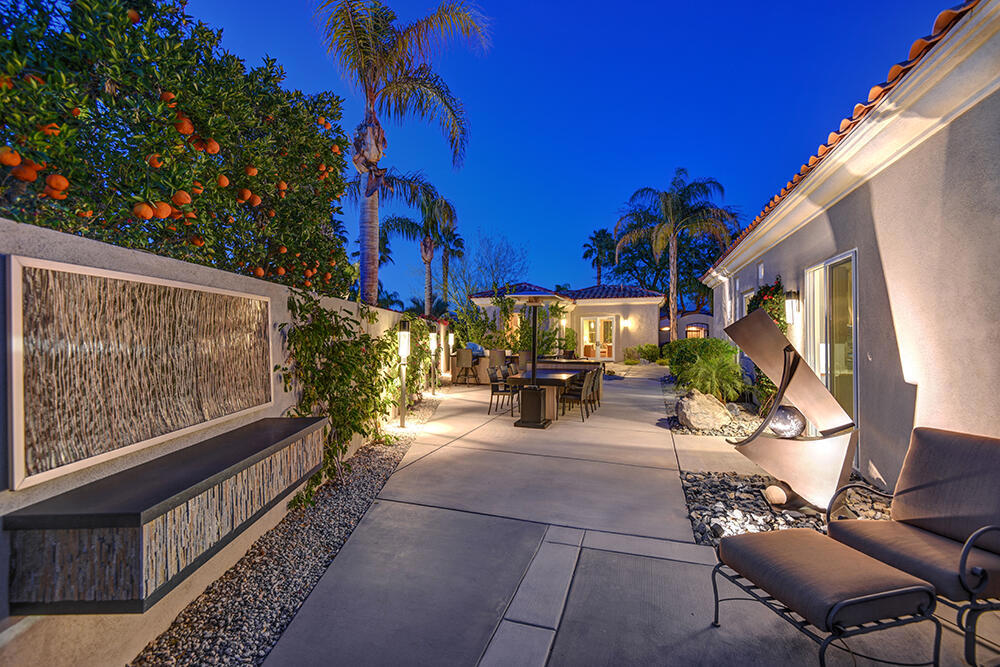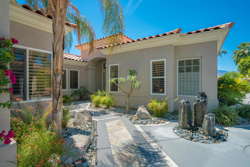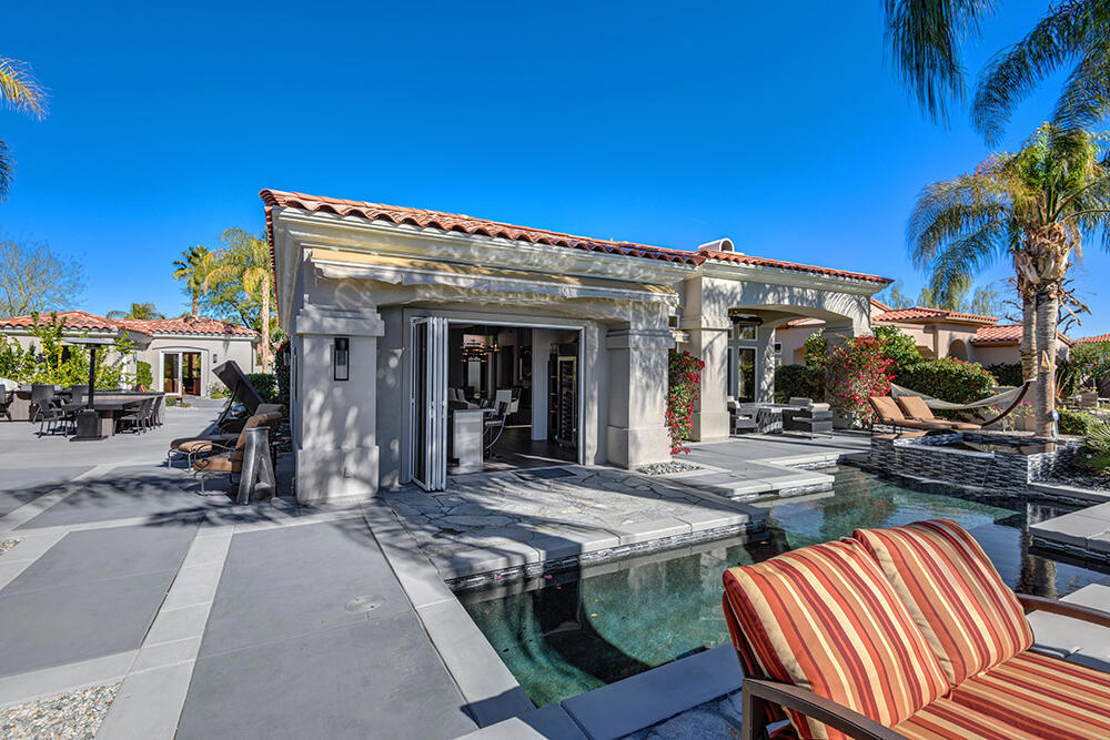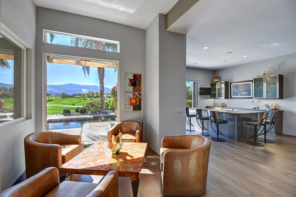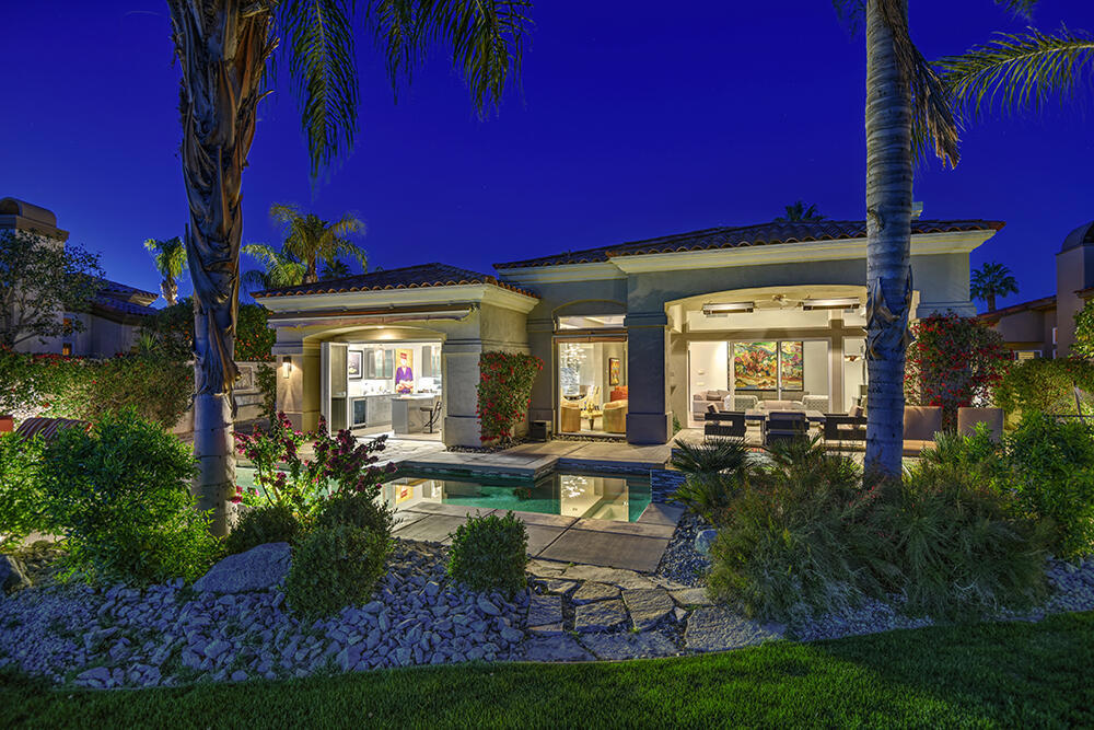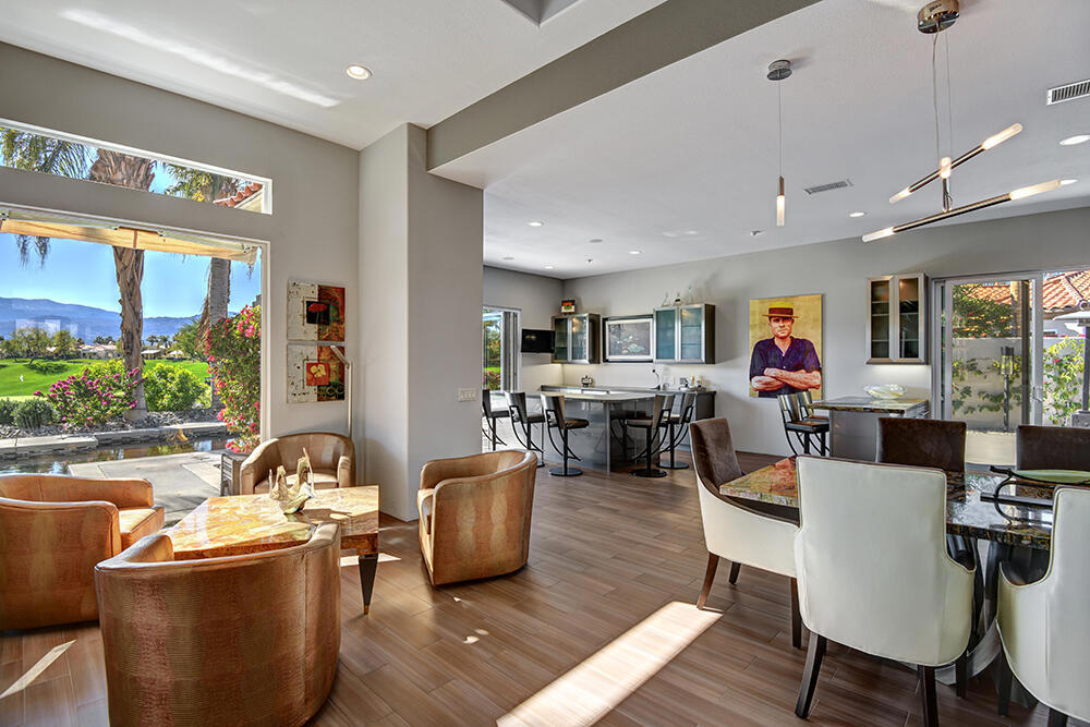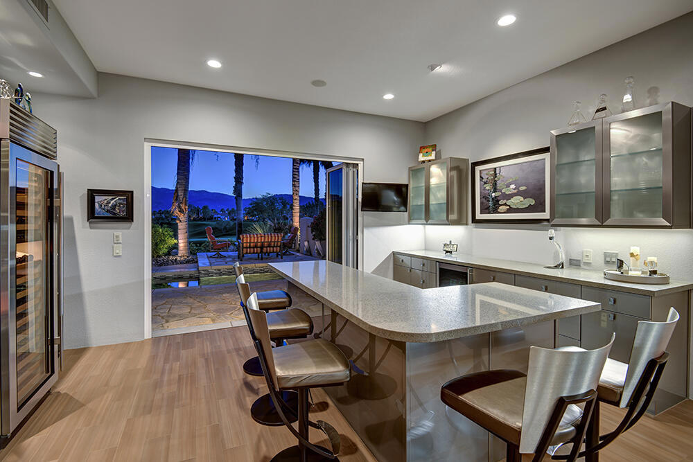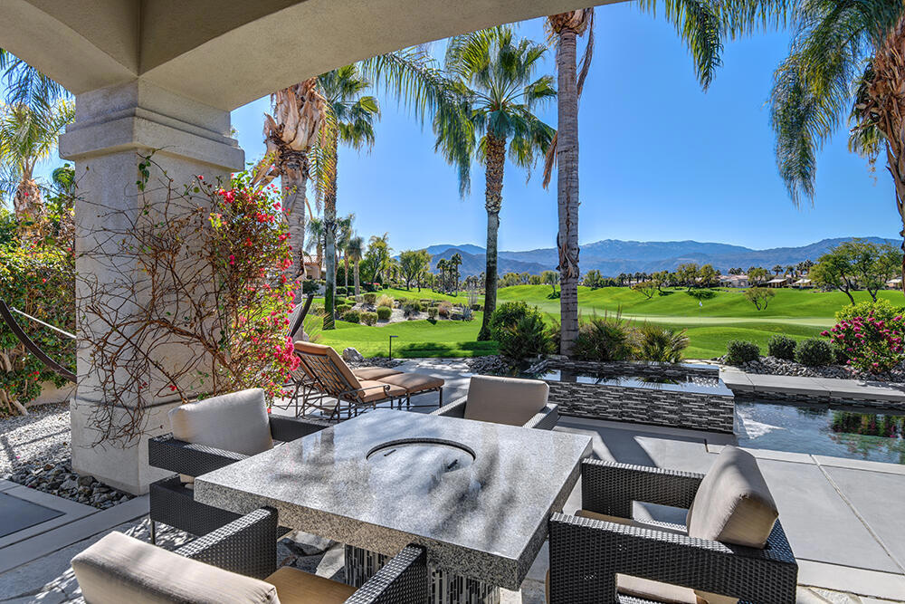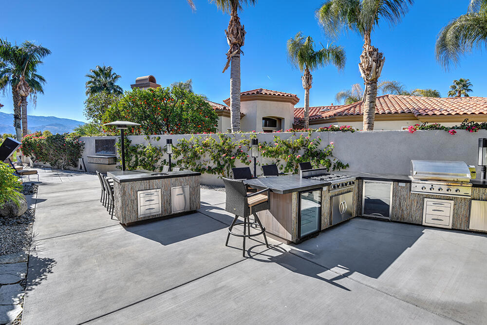Experience the pinnacle of desert living with this truly one-of-a-kind property in Palm Desert's exclusive Indian Ridge Country Club! This custom remodeled Ocotillo 3 with large casita has been thoughtfully and completely remodeled to create a stunning contemporary oasis. Walls have been removed to unveil an expansive, open floor plan that's as stylish as it is inviting. Prepare to be captivated by the breathtaking, south-facing unobstructed views that serve as the perfect backdrop to your daily life. The heart of the home--a spacious kitchen, dining area, and fully equipped bar--flows seamlessly into a cozy sitting area and a light-filled great room, all designed to maximize the spectacular scenery. The luxurious master suite is your private retreat, boasting a generous sitting area, spa-like ensuite bathroom, and dual walk-in closets. The outdoor spaces are equally impressive, starting with a resort-style back patio featuring an accented tiled pool and spa, ideal for relaxation or entertaining under the desert sky. The spacious side courtyard is a true entertainer's dream, complete with a custom BBQ cook station, fire pit, and ample seating. Guests will adore the two-room guest casita, which includes a separate sitting area and its own attached office--perfect for work or play. With stunning views, impeccable design, and a host of luxurious amenities, this move-in-ready masterpiece is a rare gem. Offered furnished per inventory list. Inquire about membership.