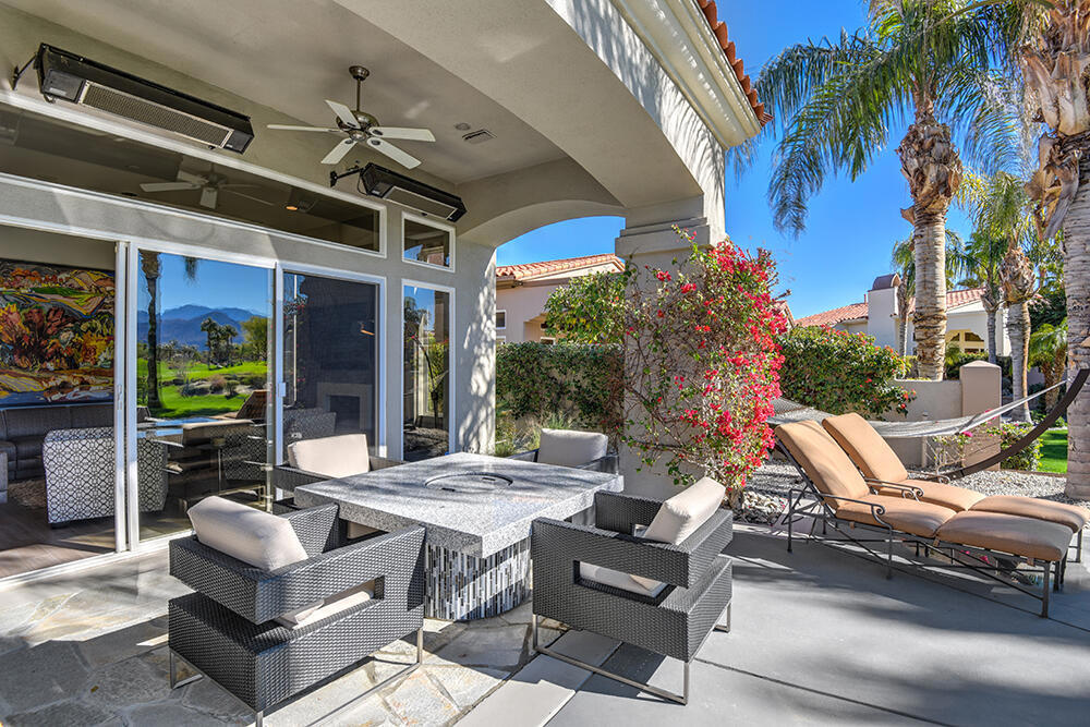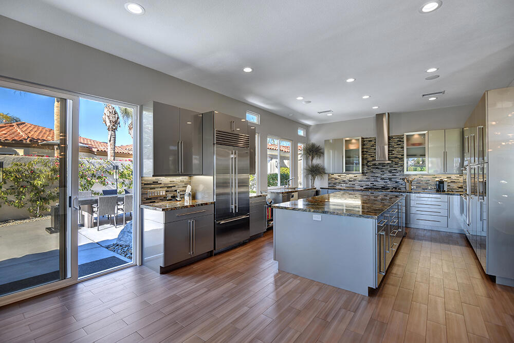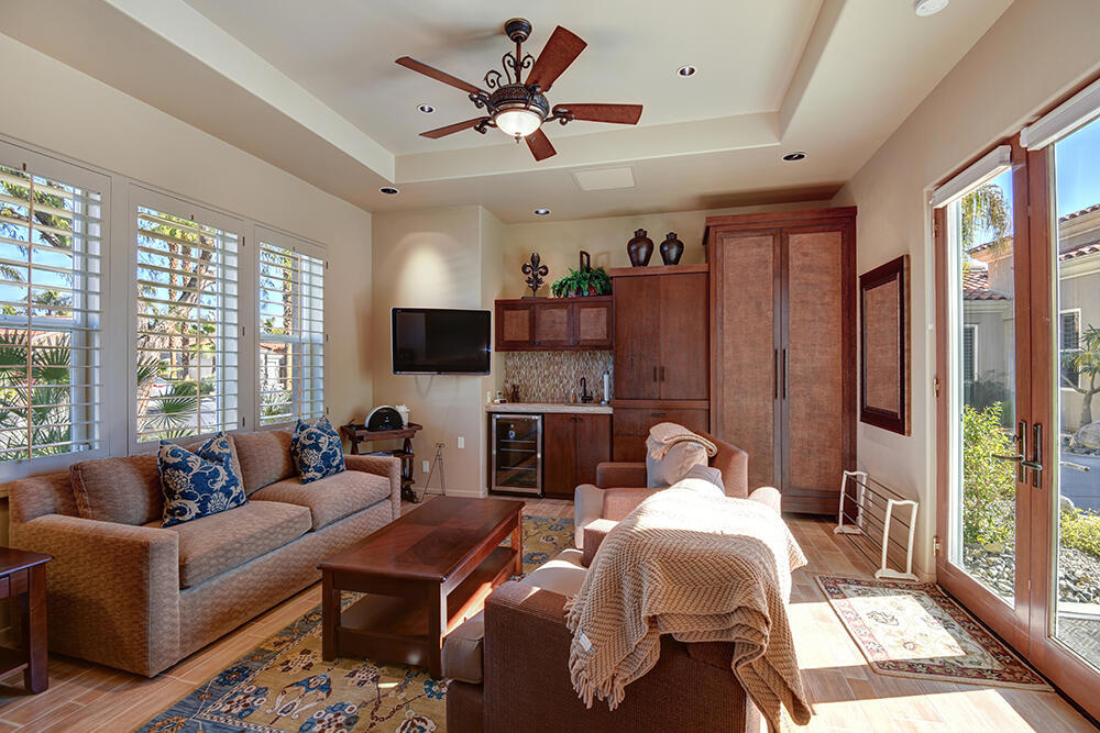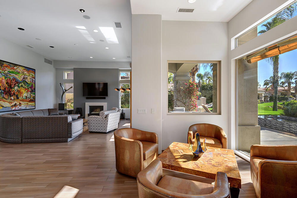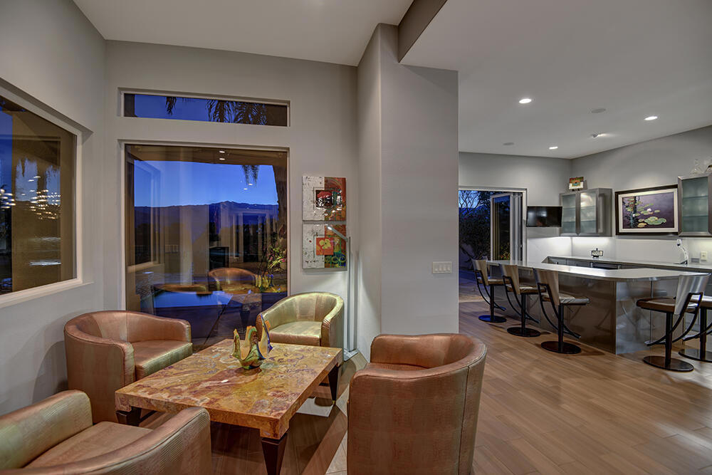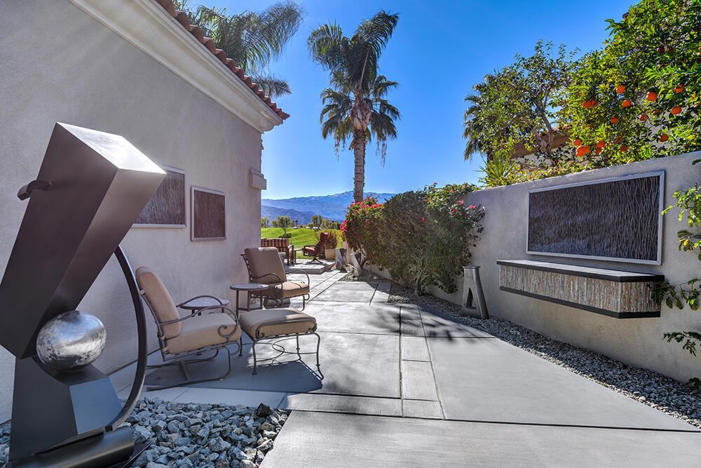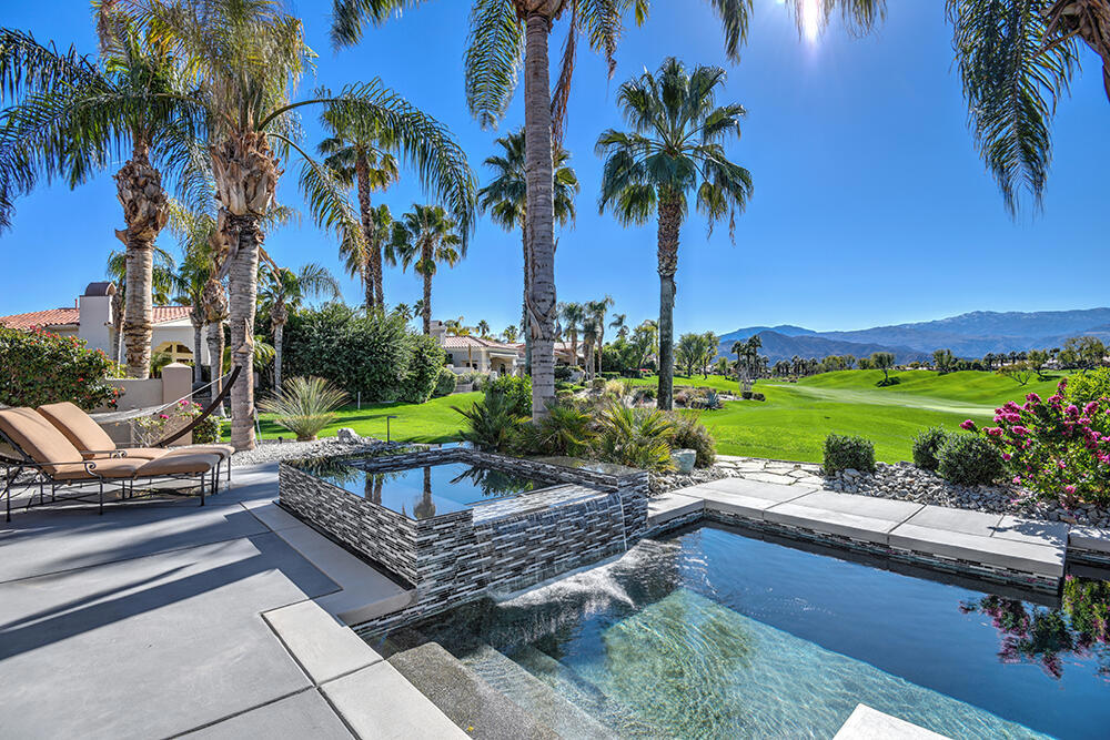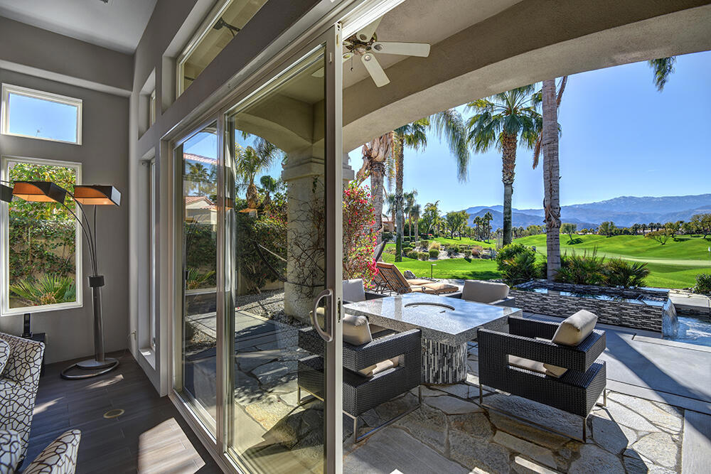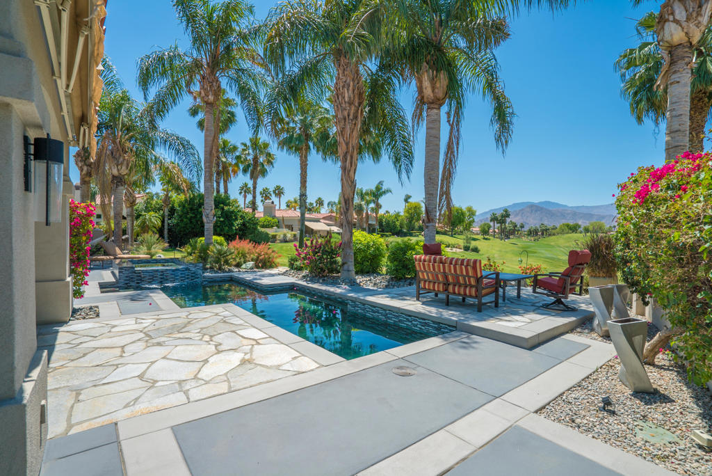 Experience the pinnacle of desert living with this truly one-of-a-kind property in Palm Desert's exclusive Indian Ridge Country Club! This custom remodeled Ocotillo 3 with large casita has been thoughtfully and completely remodeled to create a stunning contemporary oasis. Walls have been removed to unveil an expansive, open floor plan that's as stylish as it is inviting. Prepare to be captivated by the breathtaking, south-facing unobstructed views that serve as the perfect backdrop to your daily life. The heart of the home--a spacious kitchen, dining area, and fully equipped bar--flows seamlessly into a cozy sitting area and a light-filled great room, all designed to maximize the spectacular scenery. The luxurious master suite is your private retreat, boasting a generous sitting area, spa-like ensuite bathroom, and dual walk-in closets. The outdoor spaces are equally impressive, starting with a resort-style back patio featuring an accented tiled pool and spa, ideal for relaxation or entertaining under the desert sky. The spacious side courtyard is a true entertainer's dream, complete with a custom BBQ cook station, fire pit, and ample seating. Guests will adore the two-room guest casita, which includes a separate sitting area and its own attached office--perfect for work or play. With stunning views, impeccable design, and a host of luxurious amenities, this move-in-ready masterpiece is a rare gem. Offered furnished per inventory list. Inquire about membership.