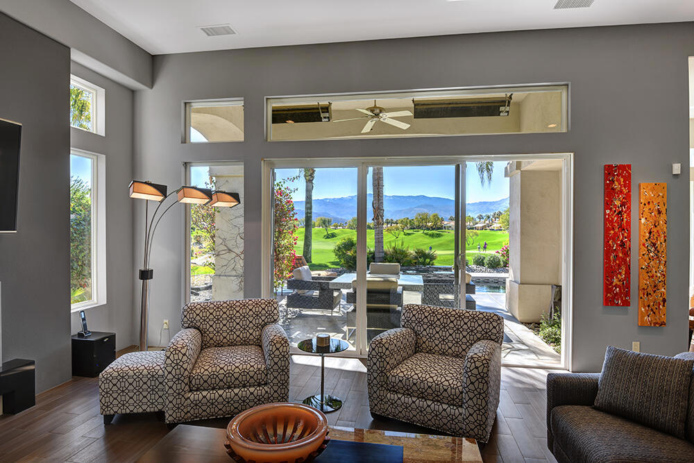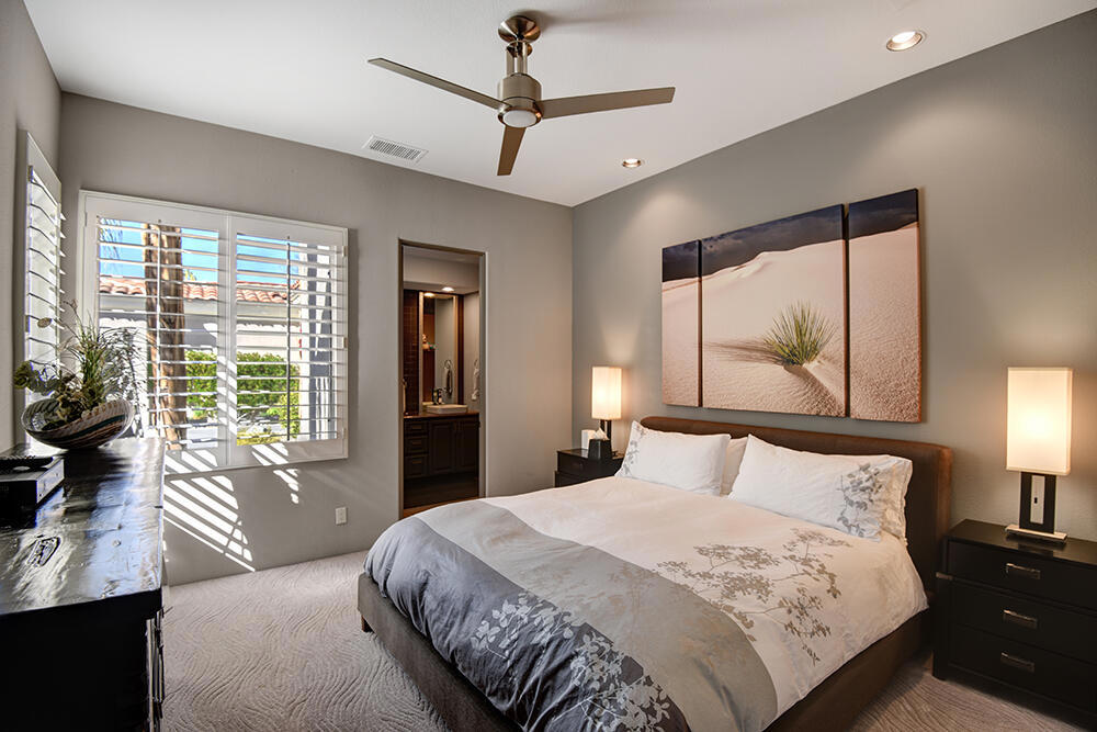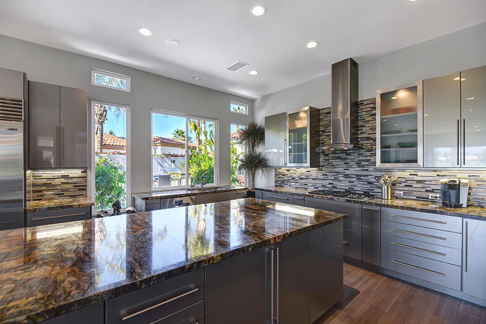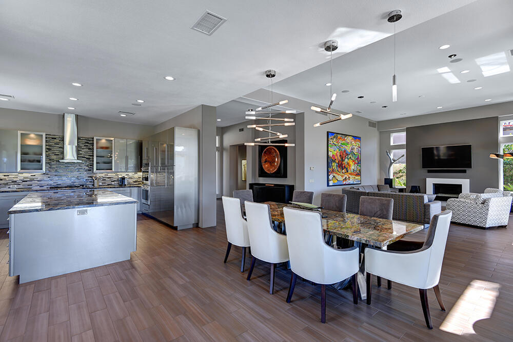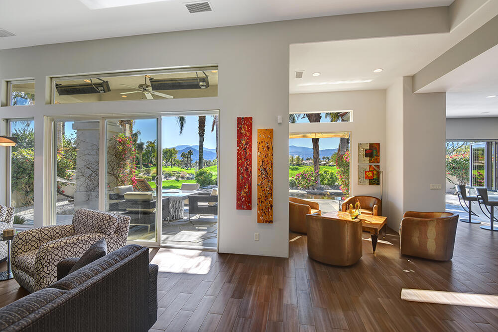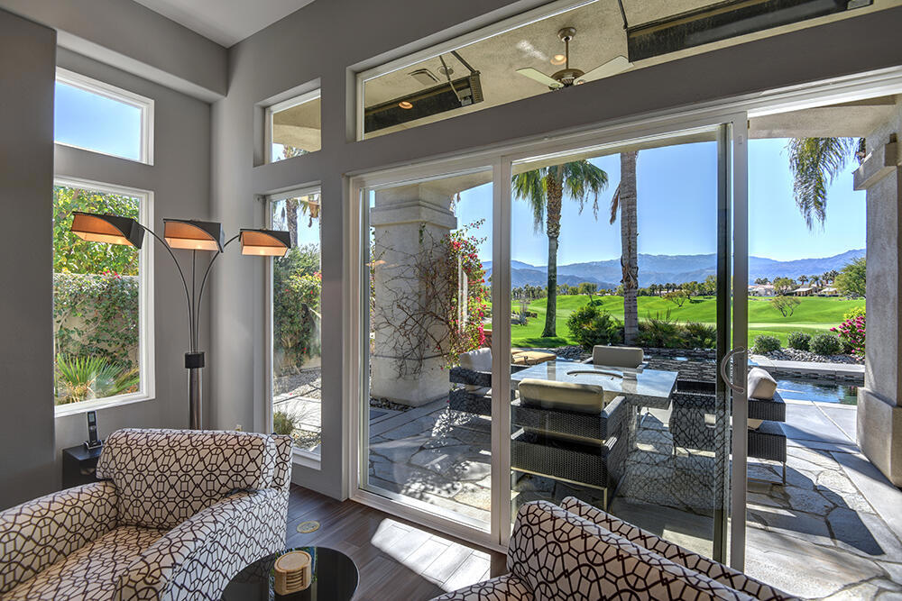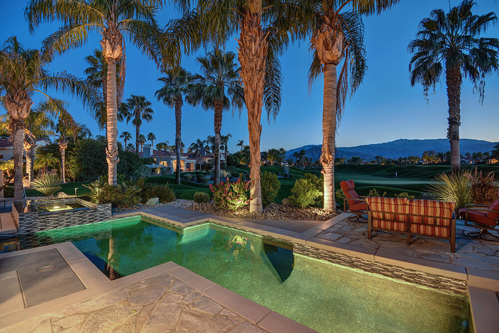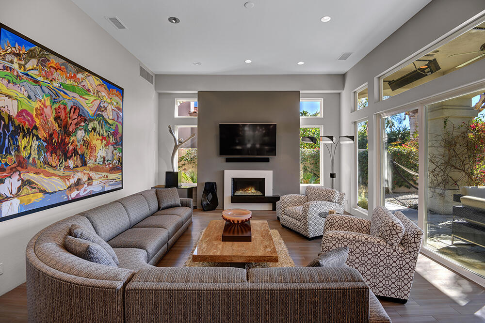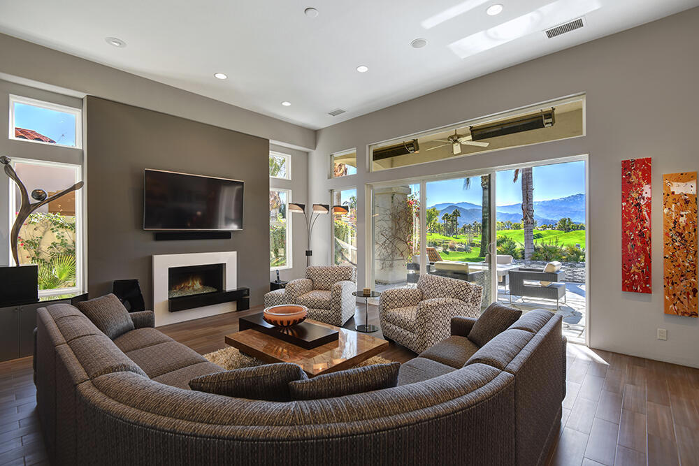 Experience the pinnacle of desert living with this truly one-of-a-kind property in Palm Desert's exclusive Indian Ridge Country Club! This custom remodeled Ocotillo 3 with large casita has been thoughtfully and completely remodeled to create a stunning contemporary oasis. Walls have been removed to unveil an expansive, open floor plan that's as stylish as it is inviting. Prepare to be captivated by the breathtaking, south-facing unobstructed views that serve as the perfect backdrop to your daily life. The heart of the home--a spacious kitchen, dining area, and fully equipped bar--flows seamlessly into a cozy sitting area and a light-filled great room, all designed to maximize the spectacular scenery. The luxurious master suite is your private retreat, boasting a generous sitting area, spa-like ensuite bathroom, and dual walk-in closets. The outdoor spaces are equally impressive, starting with a resort-style back patio featuring an accented tiled pool and spa, ideal for relaxation or entertaining under the desert sky. The spacious side courtyard is a true entertainer's dream, complete with a custom BBQ cook station, fire pit, and ample seating. Guests will adore the two-room guest casita, which includes a separate sitting area and its own attached office--perfect for work or play. With stunning views, impeccable design, and a host of luxurious amenities, this move-in-ready masterpiece is a rare gem. Offered furnished per inventory list. Inquire about membership.
