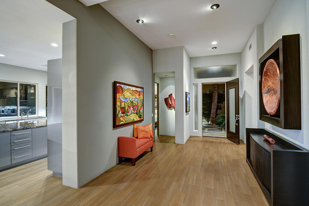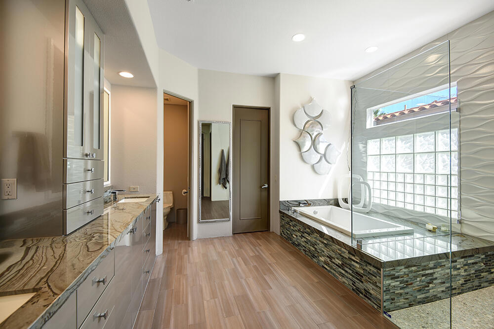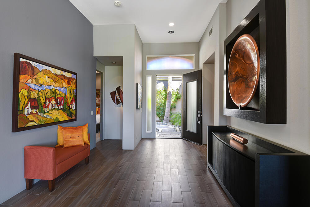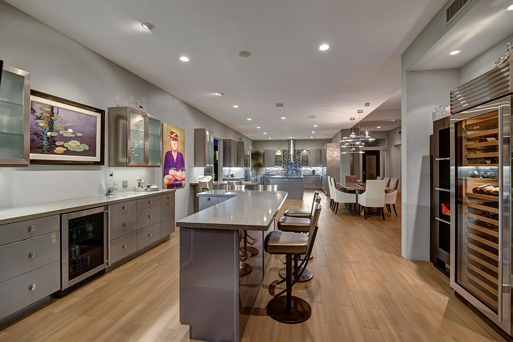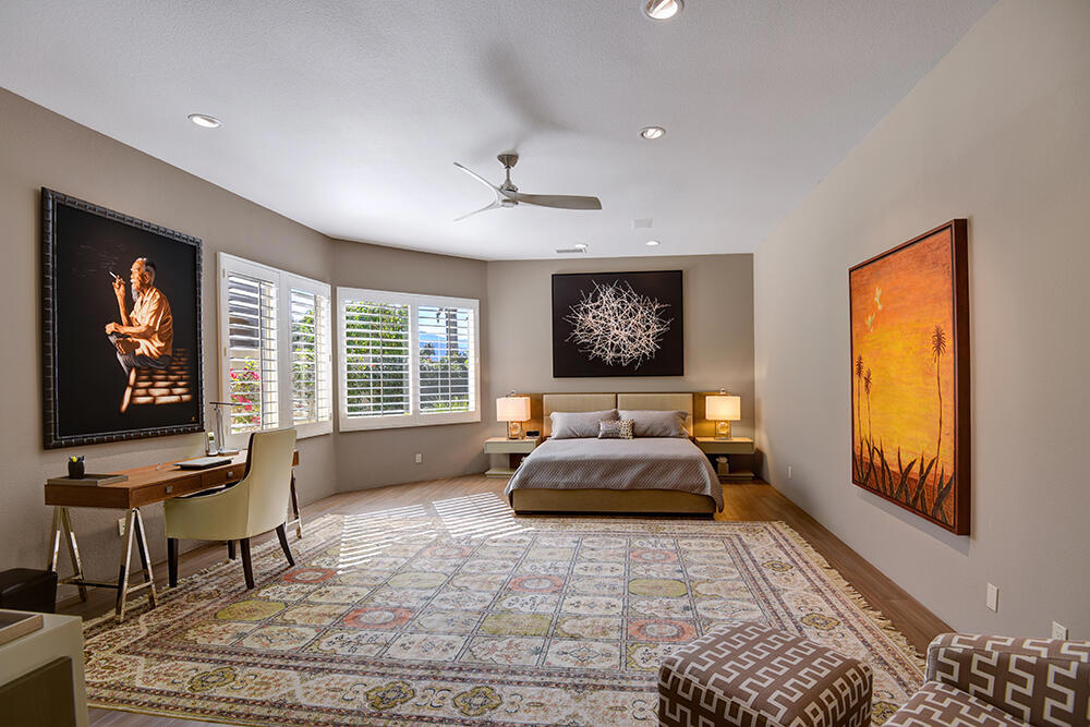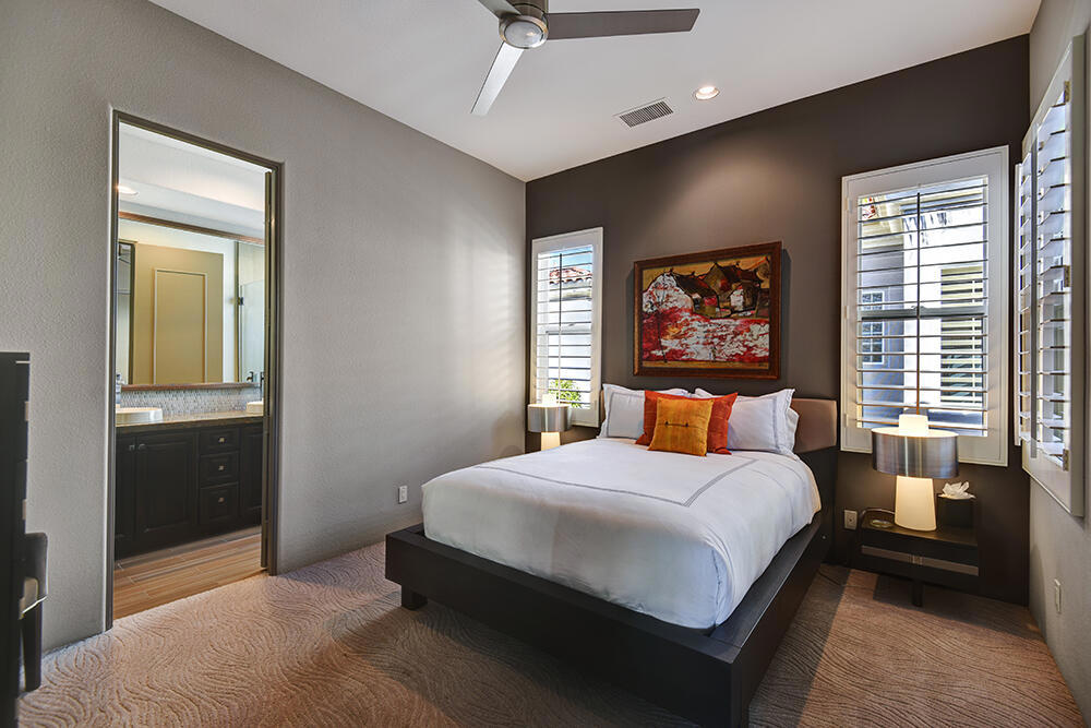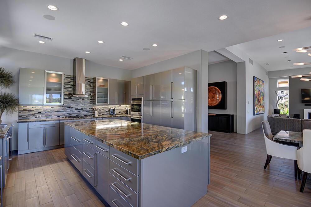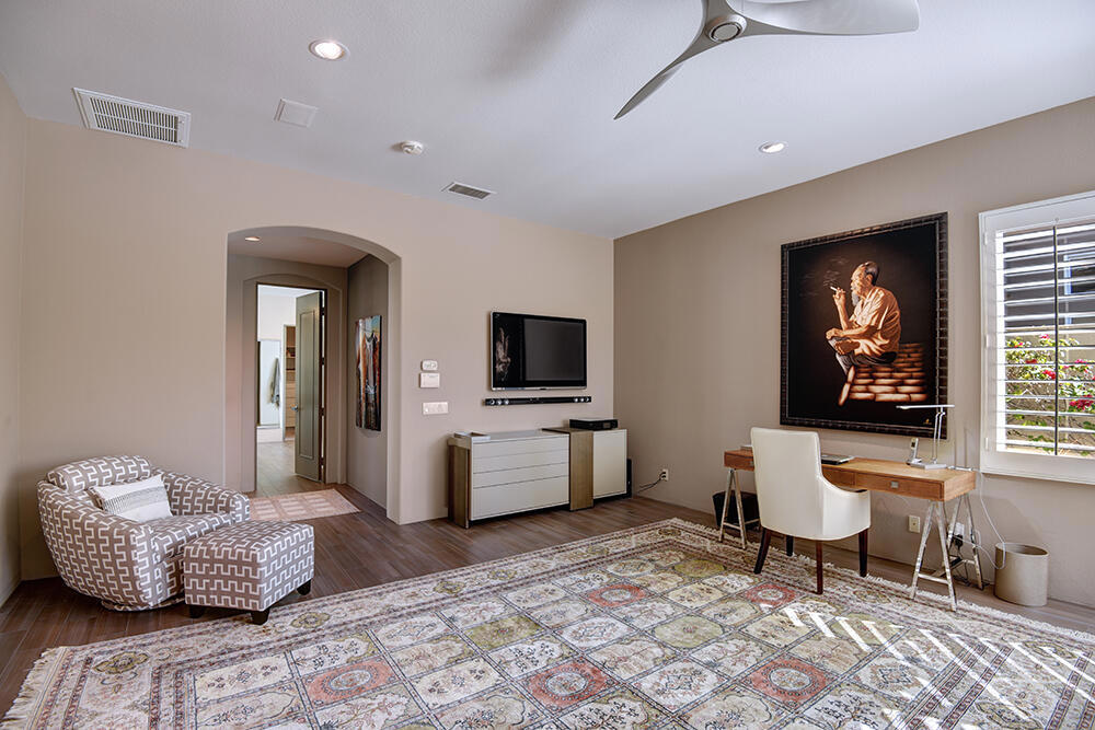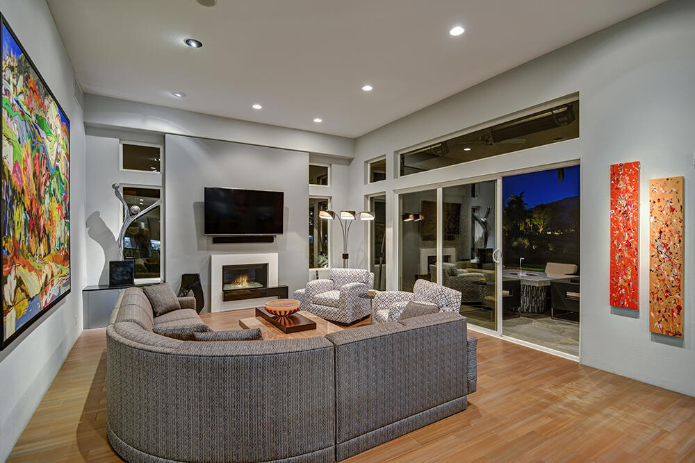 Experience the pinnacle of desert living with this truly one-of-a-kind property in Palm Desert's exclusive Indian Ridge Country Club! This custom remodeled Ocotillo 3 with large casita has been thoughtfully and completely remodeled to create a stunning contemporary oasis. Walls have been removed to unveil an expansive, open floor plan that's as stylish as it is inviting. Prepare to be captivated by the breathtaking, south-facing unobstructed views that serve as the perfect backdrop to your daily life. The heart of the home--a spacious kitchen, dining area, and fully equipped bar--flows seamlessly into a cozy sitting area and a light-filled great room, all designed to maximize the spectacular scenery. The luxurious master suite is your private retreat, boasting a generous sitting area, spa-like ensuite bathroom, and dual walk-in closets. The outdoor spaces are equally impressive, starting with a resort-style back patio featuring an accented tiled pool and spa, ideal for relaxation or entertaining under the desert sky. The spacious side courtyard is a true entertainer's dream, complete with a custom BBQ cook station, fire pit, and ample seating. Guests will adore the two-room guest casita, which includes a separate sitting area and its own attached office--perfect for work or play. With stunning views, impeccable design, and a host of luxurious amenities, this move-in-ready masterpiece is a rare gem. Offered furnished per inventory list. Inquire about membership.