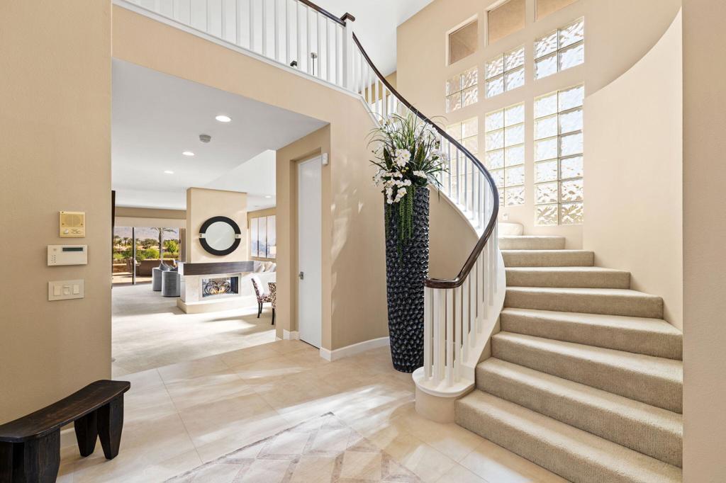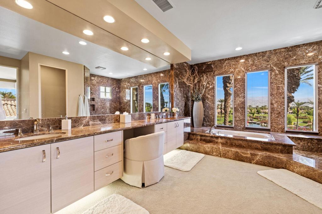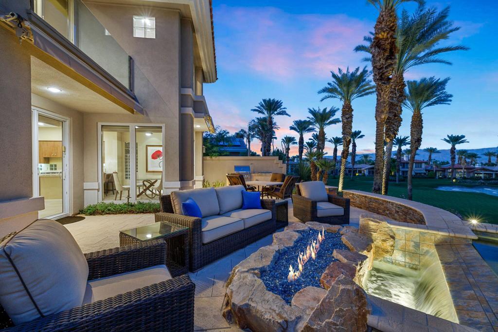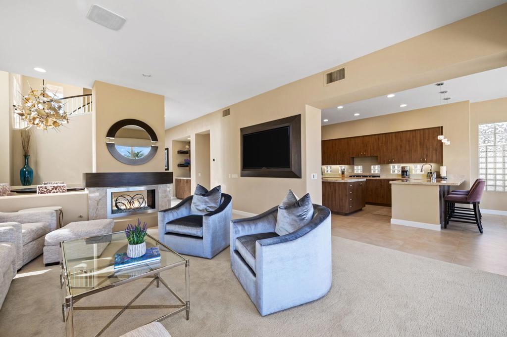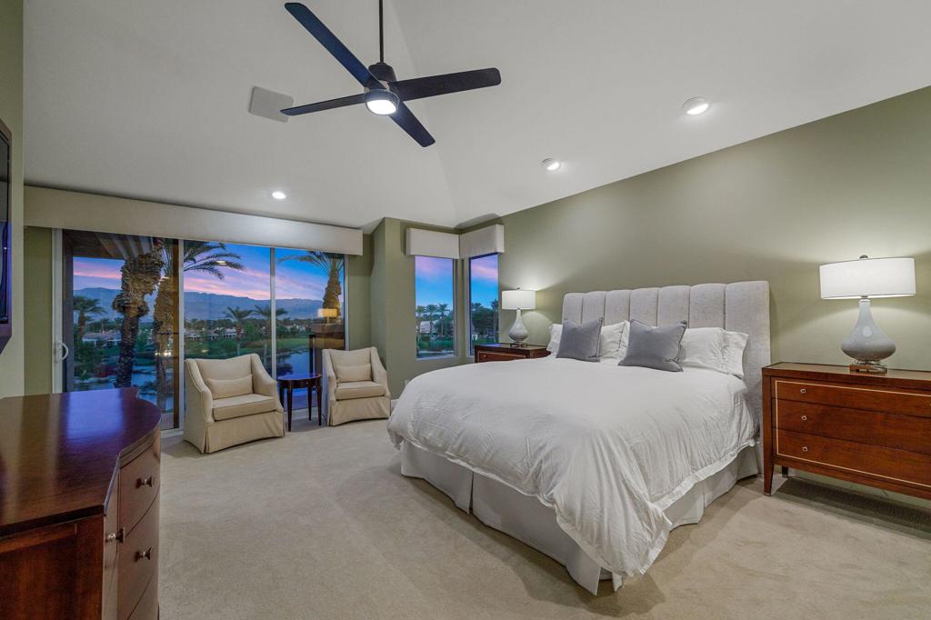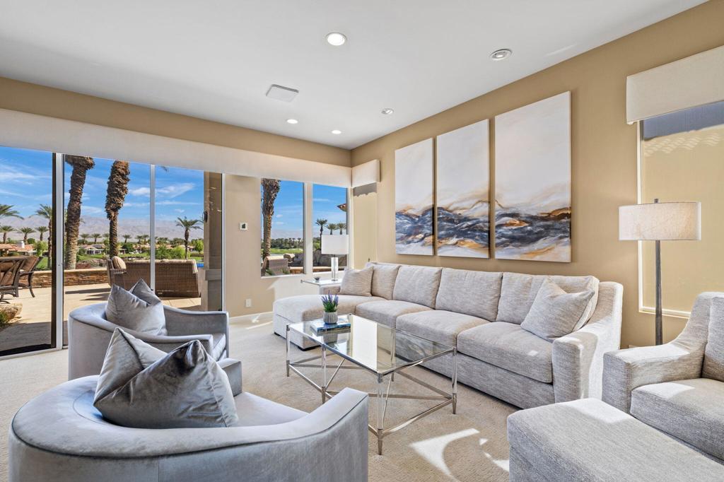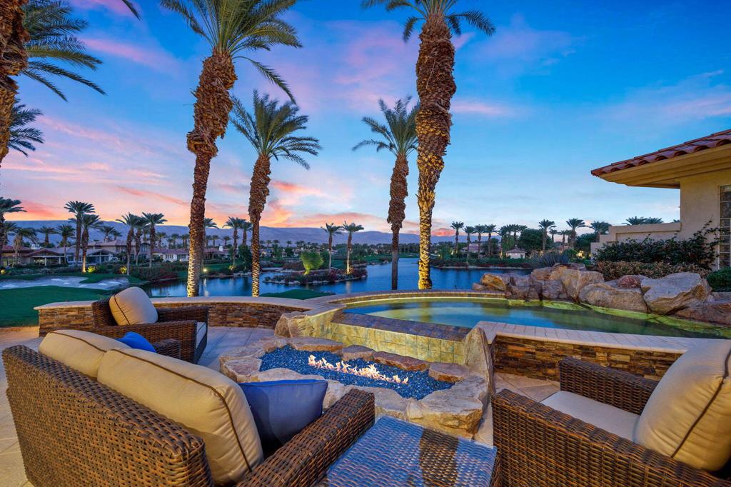 Indian Ridge on-site sales office is open daily! This Exquisite Smoke Tree 4 will knock your socks off. In Palm Desert's Indian Ridge Country Club, this home has 3,402 square feet, 3 bedrooms plus an office and 3.5 bathrooms. It has been meticulously updated from the re-landscaped courtyard to the east-facing patio with the most incredible water and mountain views in Indian Ridge. Upgrades include but aren't limited to new flooring throughout, baseboards, Quartzite counters with refaced cabinets and hardware in kitchen, retractable solar blinds, LED lighting, interior paint, redesigned fireplace, solar panels, and a full powder room remodel to name a few. In addition to the upgrades and special features of this home, there is a GOLF MEMBERSHIP available to the buyer with no wait. Home is being sold furnished per inventory including a Mercedes Benz and golf cart. Call for your private showing of this Beauty today!