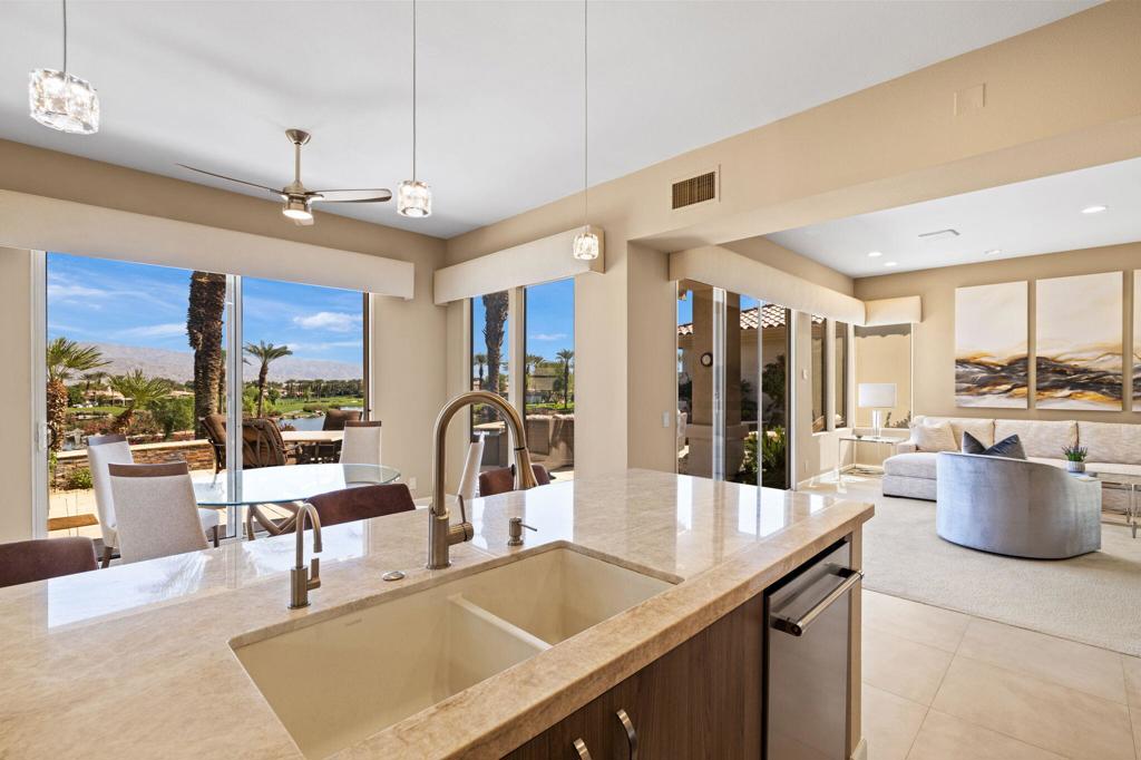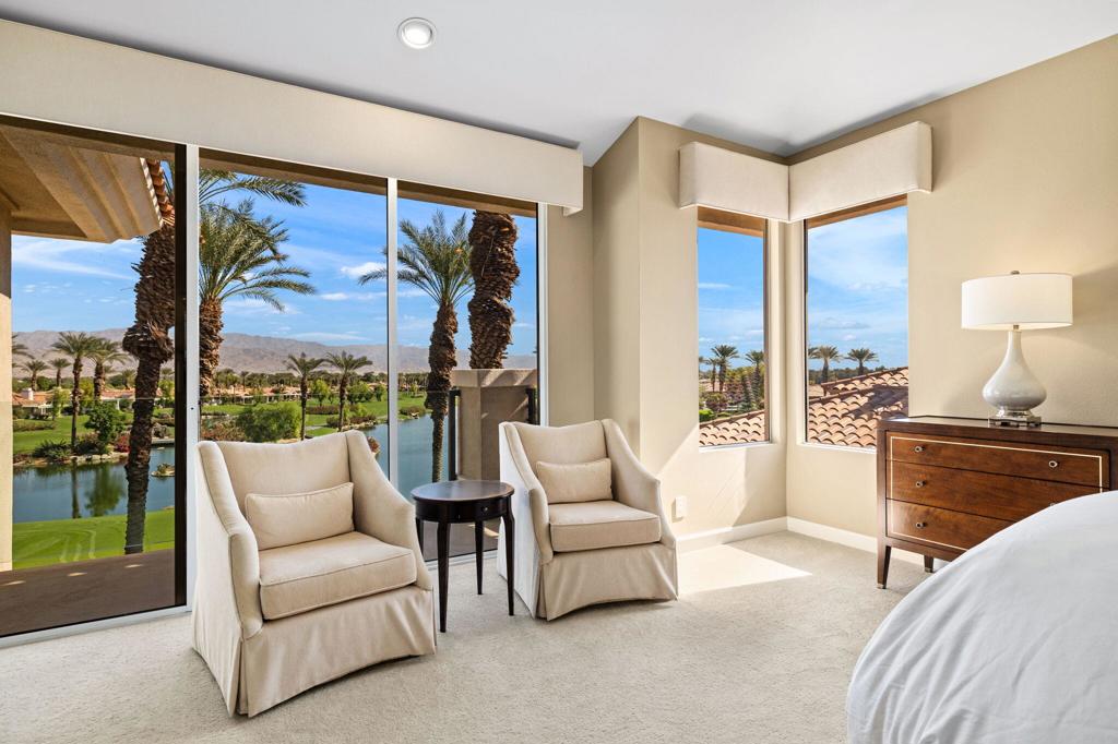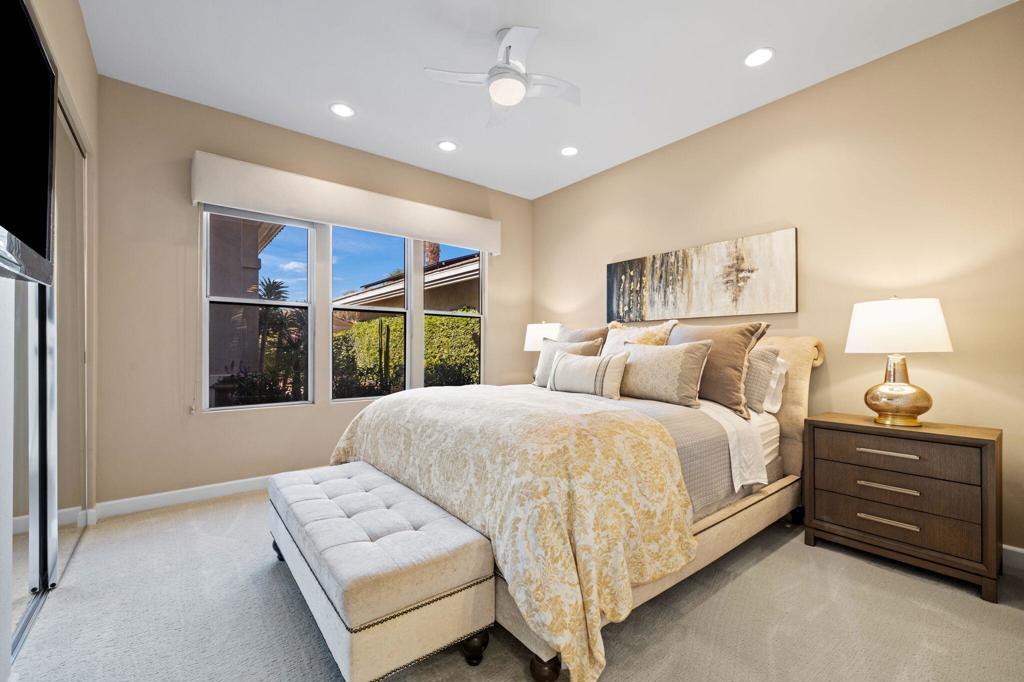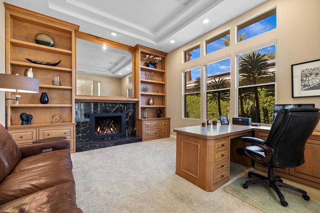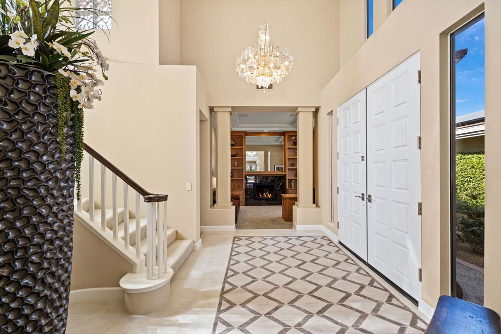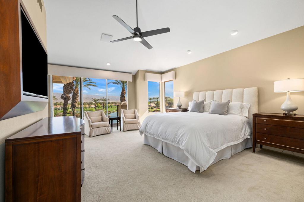 Indian Ridge on-site sales office is open daily! This Exquisite Smoke Tree 4 will knock your socks off. In Palm Desert's Indian Ridge Country Club, this home has 3,402 square feet, 3 bedrooms plus an office and 3.5 bathrooms. It has been meticulously updated from the re-landscaped courtyard to the east-facing patio with the most incredible water and mountain views in Indian Ridge. Upgrades include but aren't limited to new flooring throughout, baseboards, Quartzite counters with refaced cabinets and hardware in kitchen, retractable solar blinds, LED lighting, interior paint, redesigned fireplace, solar panels, and a full powder room remodel to name a few. In addition to the upgrades and special features of this home, there is a GOLF MEMBERSHIP available to the buyer with no wait. Home is being sold furnished per inventory including a Mercedes Benz and golf cart. Call for your private showing of this Beauty today!