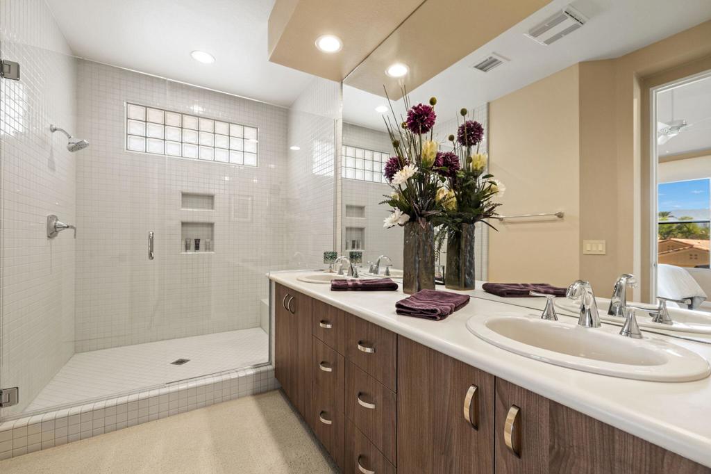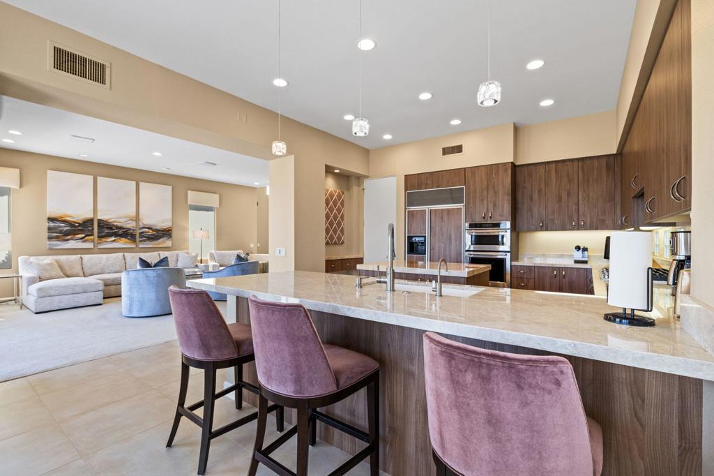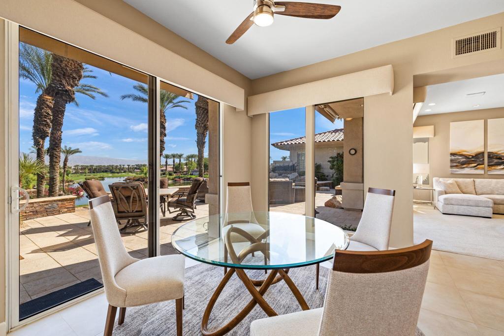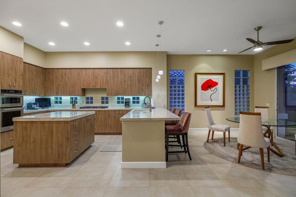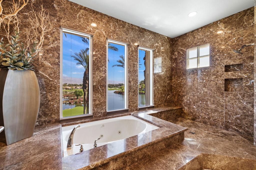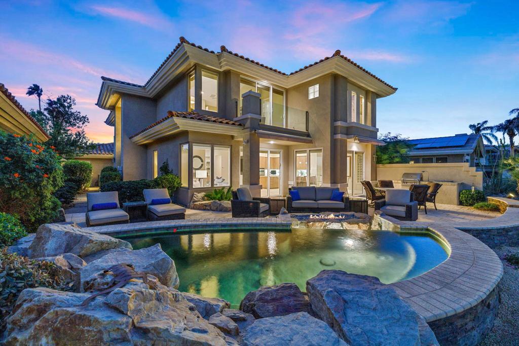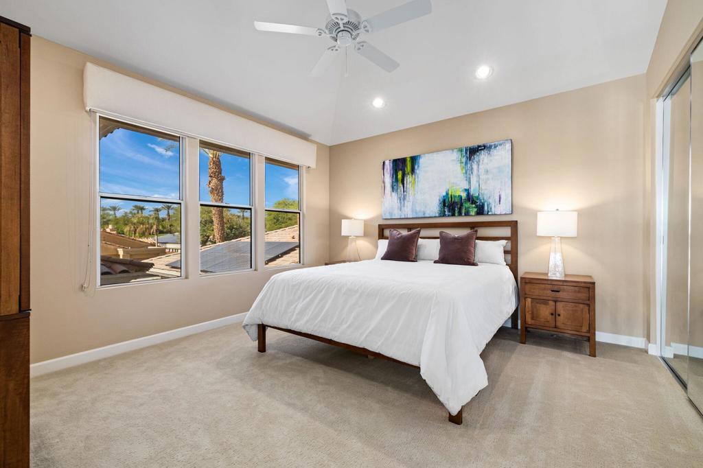 Indian Ridge on-site sales office is open daily! This Exquisite Smoke Tree 4 will knock your socks off. In Palm Desert's Indian Ridge Country Club, this home has 3,402 square feet, 3 bedrooms plus an office and 3.5 bathrooms. It has been meticulously updated from the re-landscaped courtyard to the east-facing patio with the most incredible water and mountain views in Indian Ridge. Upgrades include but aren't limited to new flooring throughout, baseboards, Quartzite counters with refaced cabinets and hardware in kitchen, retractable solar blinds, LED lighting, interior paint, redesigned fireplace, solar panels, and a full powder room remodel to name a few. In addition to the upgrades and special features of this home, there is a GOLF MEMBERSHIP available to the buyer with no wait. Home is being sold furnished per inventory including a Mercedes Benz and golf cart. Call for your private showing of this Beauty today!