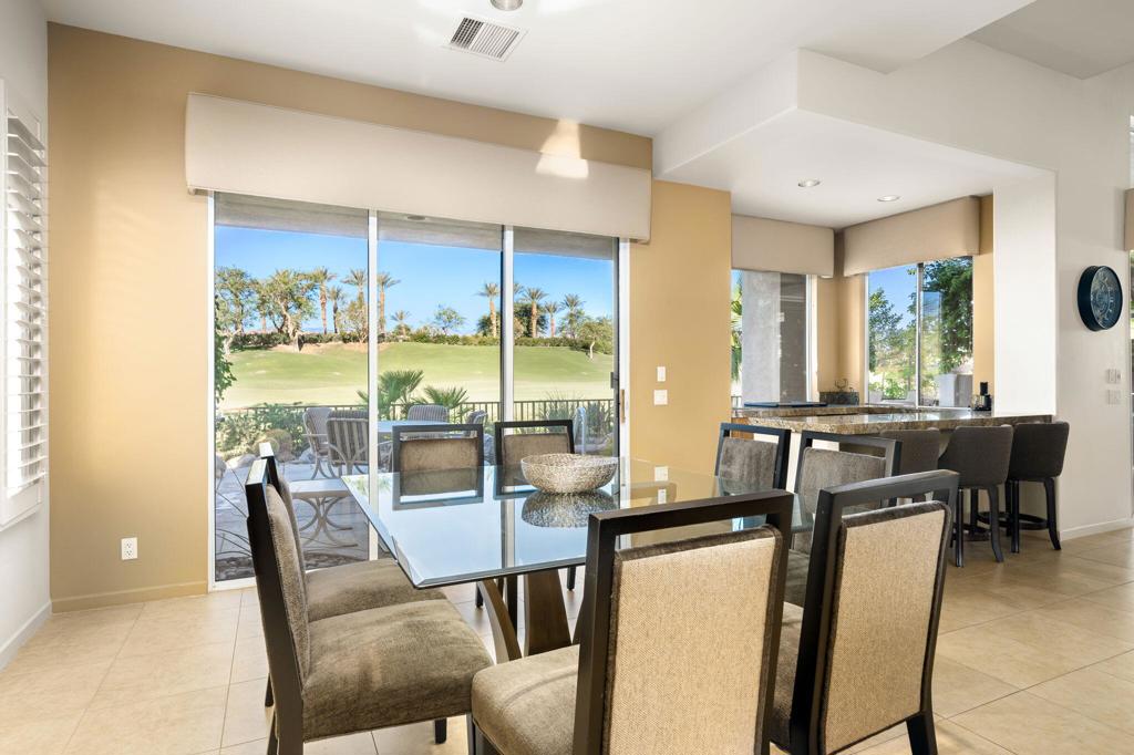 Rental Available May 15 - October 15, 2026 at $3,200 /month + utilities. Welcome to your desert oasis at Indian Ridge Country Club in Palm Desert. This stunning 3-bedroom, 3.5-bathroom home offers luxury living with custom solar shades, soaring 9ft+ ceilings, and breathtaking panoramic views of the Arnold Palmer Grove-3 Golf Course and surrounding mountains. The west-facing patio is perfect for entertaining, featuring a pebble-tech heated spool, fire pit, and BBQ area. Inside, the gourmet kitchen shines with stainless steel appliances and a spacious island, ideal for preparing and enjoying meals. The master suite is a true retreat with dual walk-in closets, a soaking tub, and a separate shower. Two ensuite guest bedrooms provide privacy and comfort for family or friends. A landlord's club membership is available with approval to enjoy exclusive community amenities, including a fitness center, pools, tennis courts, pickleball courts, and exceptional dining. Located in the heart of the Palm Springs area, you're just minutes from El Paseo shopping and dining and a short drive to the airport. Don't miss this exceptional opportunity to experience luxury desert living!
