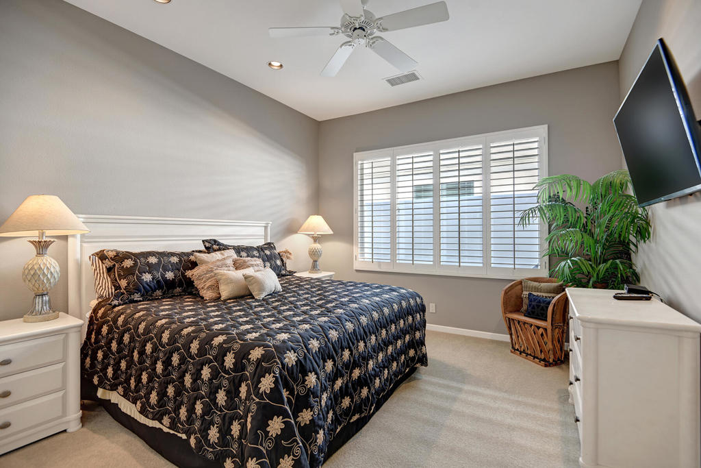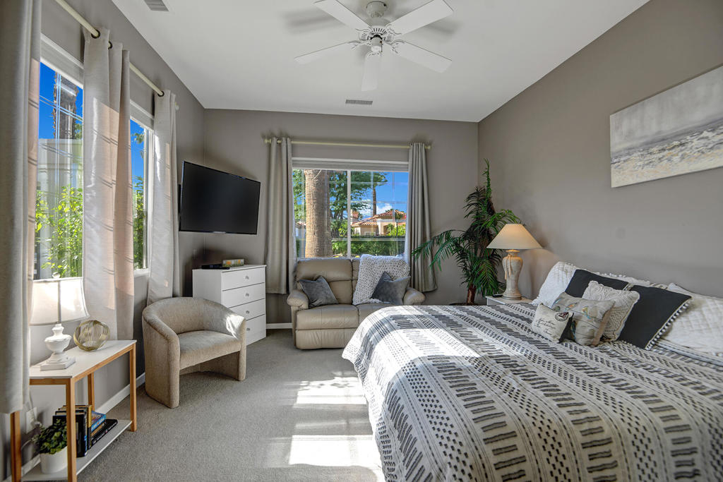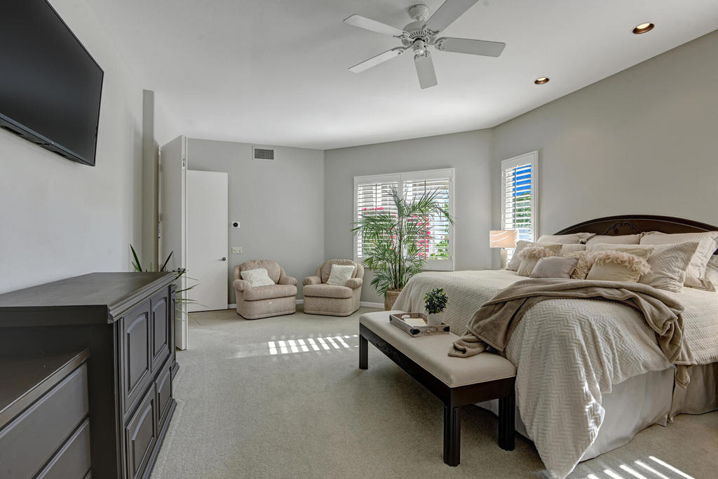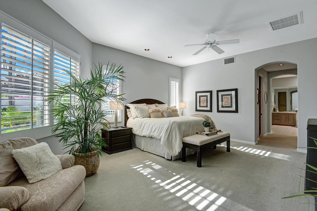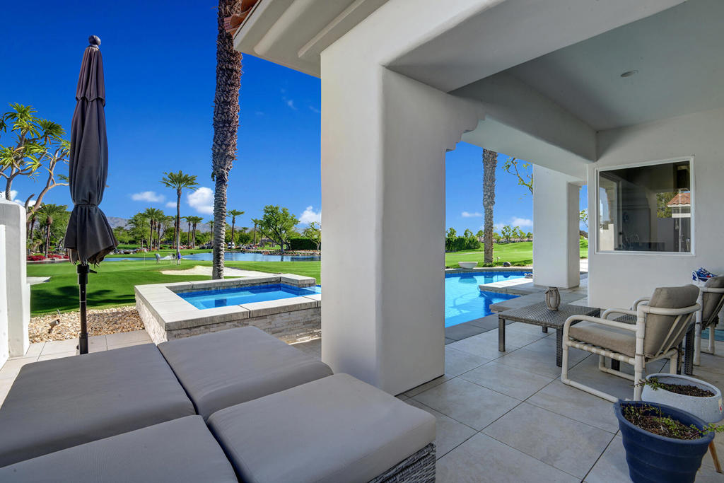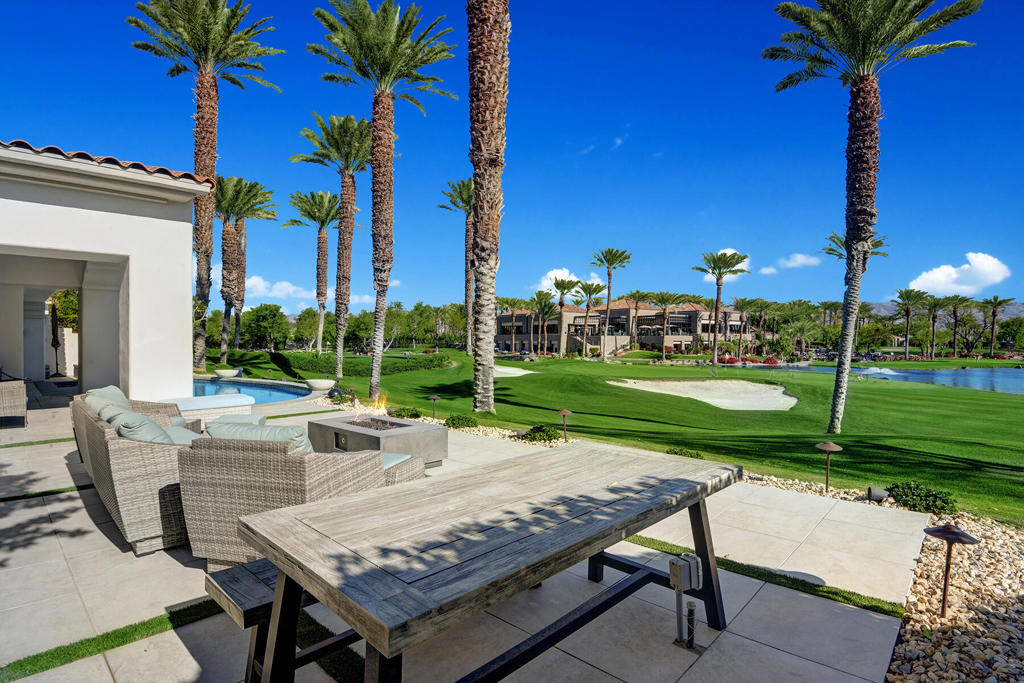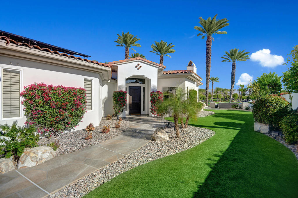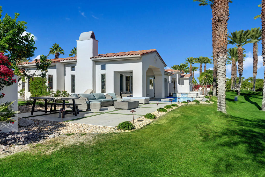 Available for 2026 seasonal lease. This stunningly renovated home offers the perfect blend of modern luxury and relaxed desert living. The main house features 3 spacious bedrooms and 3.5 beautifully appointed bathrooms, each designed with comfort and style in mind. Plus a detached 1-bedroom, 1-bathroom guest house provides an ideal private space for guests or extended family. From the moment you enter the expansive front courtyard, you'll feel the warmth and elegance this home exudes. The courtyard wraps seamlessly around to the backyard, creating a harmonious indoor-outdoor flow ideal for entertaining or peaceful relaxation. Enjoy your morning coffee or evening cocktails on the east-facing back patio, which overlooks the picturesque 15th and 18th holes of the Grove Course. A sparkling pool and serene golf course views complete this one-of-a-kind retreat. Whether you're hosting friends, enjoying quiet evenings at home, or soaking in the desert sun--this property delivers an unparalleled lifestyle. Landlord pays monthly HOA dues, cable/internet, electric (solar), and landscape. Tenant cover gas monthly costs. Golf enthusiasts can opt for additional privileges with membership approval and three month minimum lease. The golf cart will remain at the property and Tenant is allowed use of the golf cart.