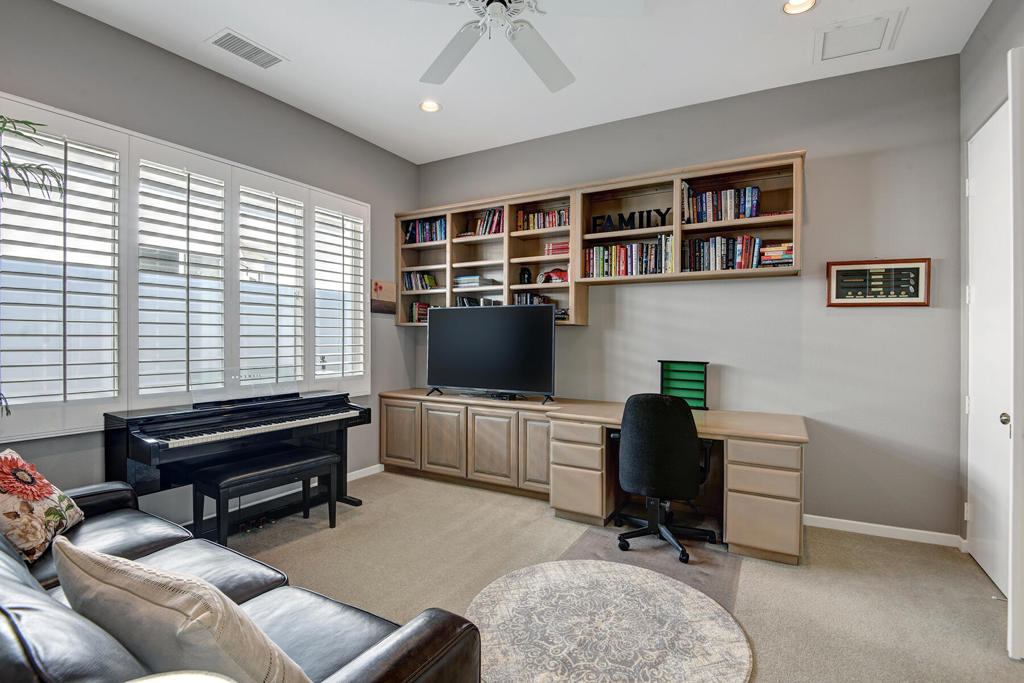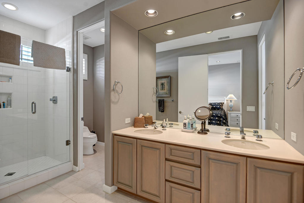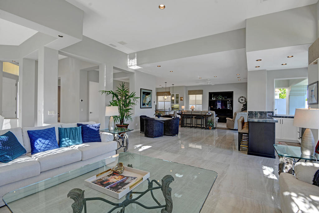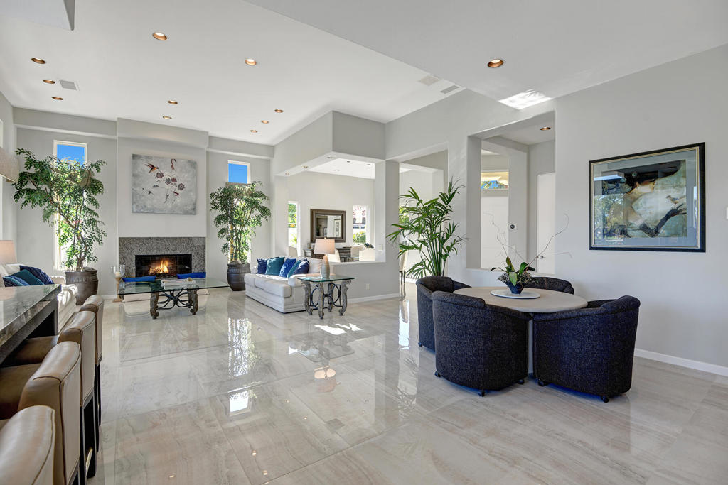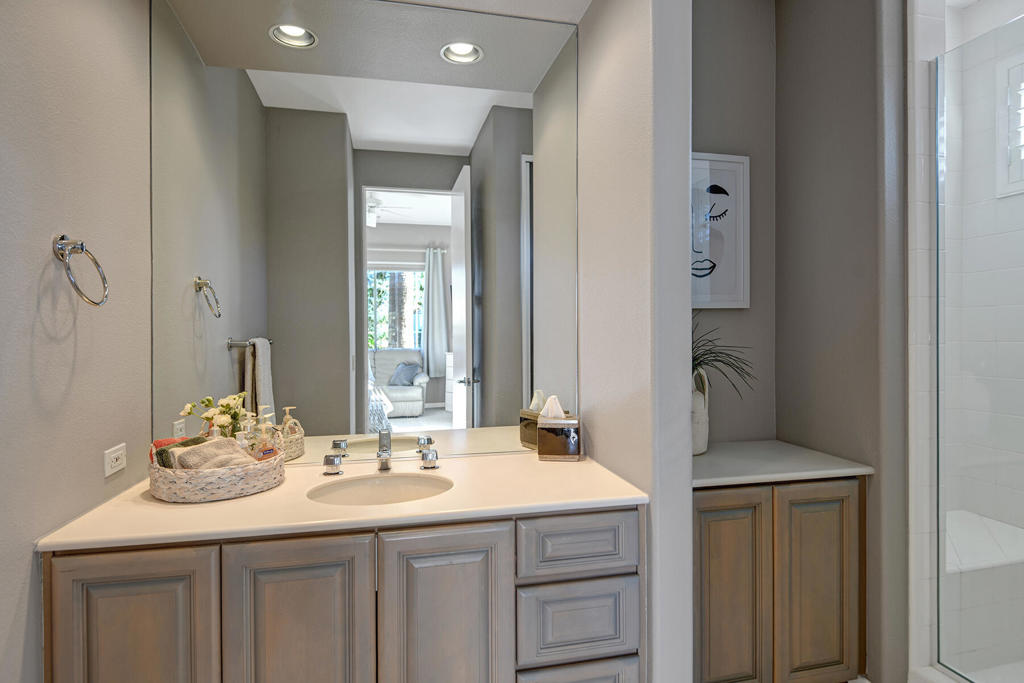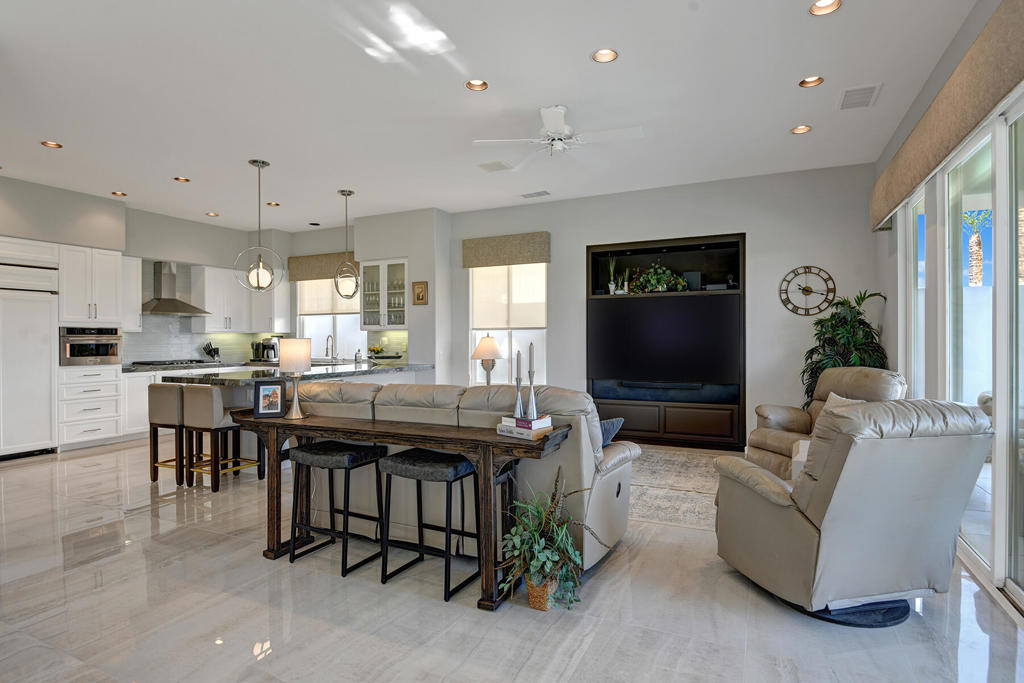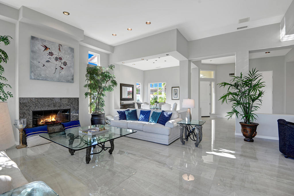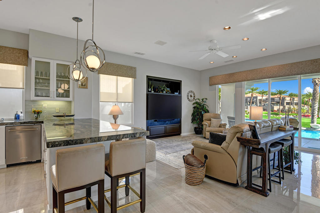 Available for 2026 seasonal lease. This stunningly renovated home offers the perfect blend of modern luxury and relaxed desert living. The main house features 3 spacious bedrooms and 3.5 beautifully appointed bathrooms, each designed with comfort and style in mind. Plus a detached 1-bedroom, 1-bathroom guest house provides an ideal private space for guests or extended family. From the moment you enter the expansive front courtyard, you'll feel the warmth and elegance this home exudes. The courtyard wraps seamlessly around to the backyard, creating a harmonious indoor-outdoor flow ideal for entertaining or peaceful relaxation. Enjoy your morning coffee or evening cocktails on the east-facing back patio, which overlooks the picturesque 15th and 18th holes of the Grove Course. A sparkling pool and serene golf course views complete this one-of-a-kind retreat. Whether you're hosting friends, enjoying quiet evenings at home, or soaking in the desert sun--this property delivers an unparalleled lifestyle. Landlord pays monthly HOA dues, cable/internet, electric (solar), and landscape. Tenant cover gas monthly costs. Golf enthusiasts can opt for additional privileges with membership approval and three month minimum lease. The golf cart will remain at the property and Tenant is allowed use of the golf cart.