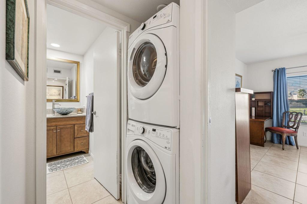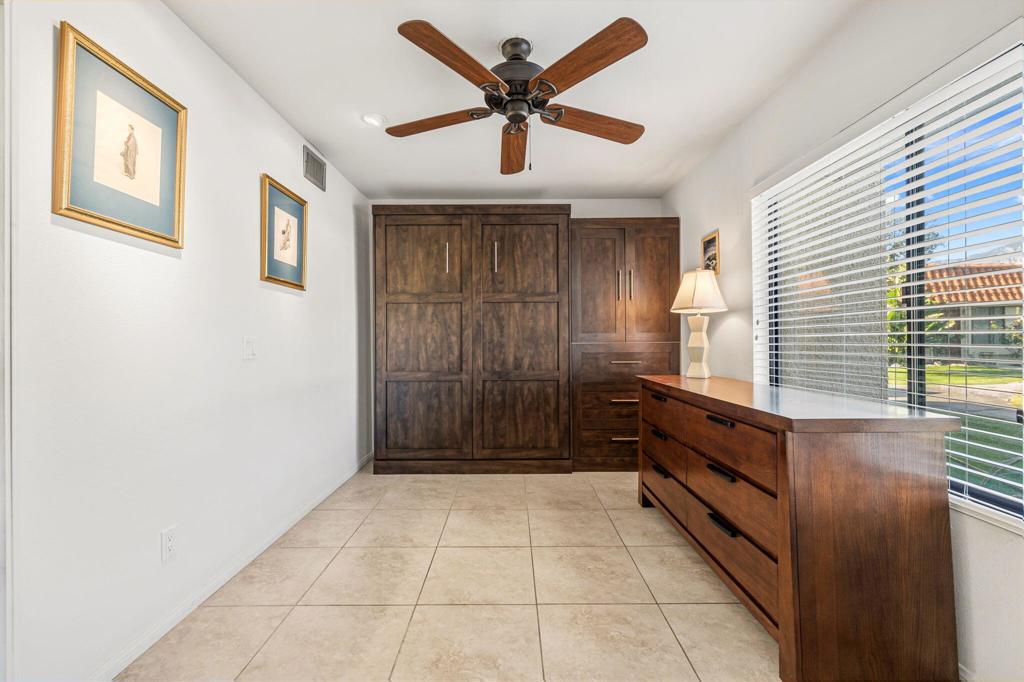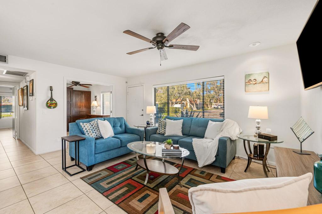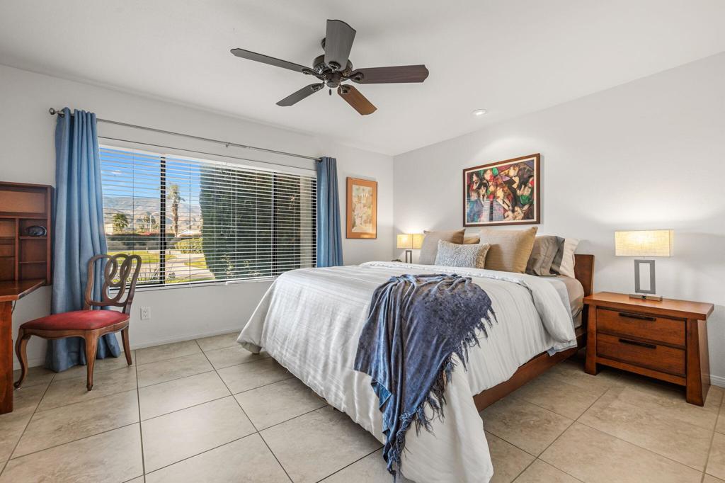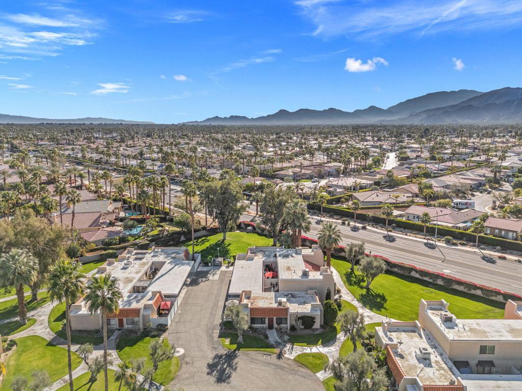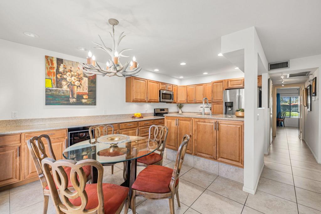 Welcome to your ideal desert retreat in the gated community of Mountain View Villas in Rancho Mirage. This beautifully updated, turnkey furnished 2-bedroom, 2-bath condo offers 1,008 sq ft of thoughtfully redesigned living space. A coveted end unit with three sides of natural light, the home features an open-concept layout created by removing part of the wall between the kitchen and living room. The fully renovated kitchen includes granite countertops, updated appliances, a redesigned center island for ease of use, and custom cabinetry extending through the dining area to create a built-in buffet with pull-out drawers and generous storage. Tile flooring runs throughout, and all windows were replaced with double paned glass, including French doors opening to a private patio. Both bathrooms have been tastefully updated. A newer HVAC system and relocated tankless water heater maximize efficiency and interior storage. HOA dues of $605/month include the security gate, Spectrum cable and high-speed internet, landscaping, roof and exterior paint maintenance, fire insurance on the structure, trash service, pest control, street maintenance, community pools, tennis, and pickle ball courts.