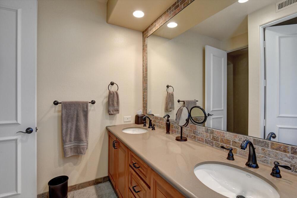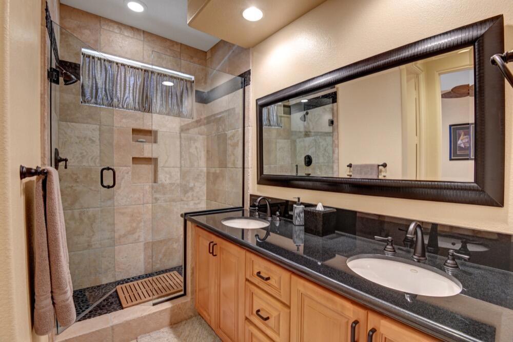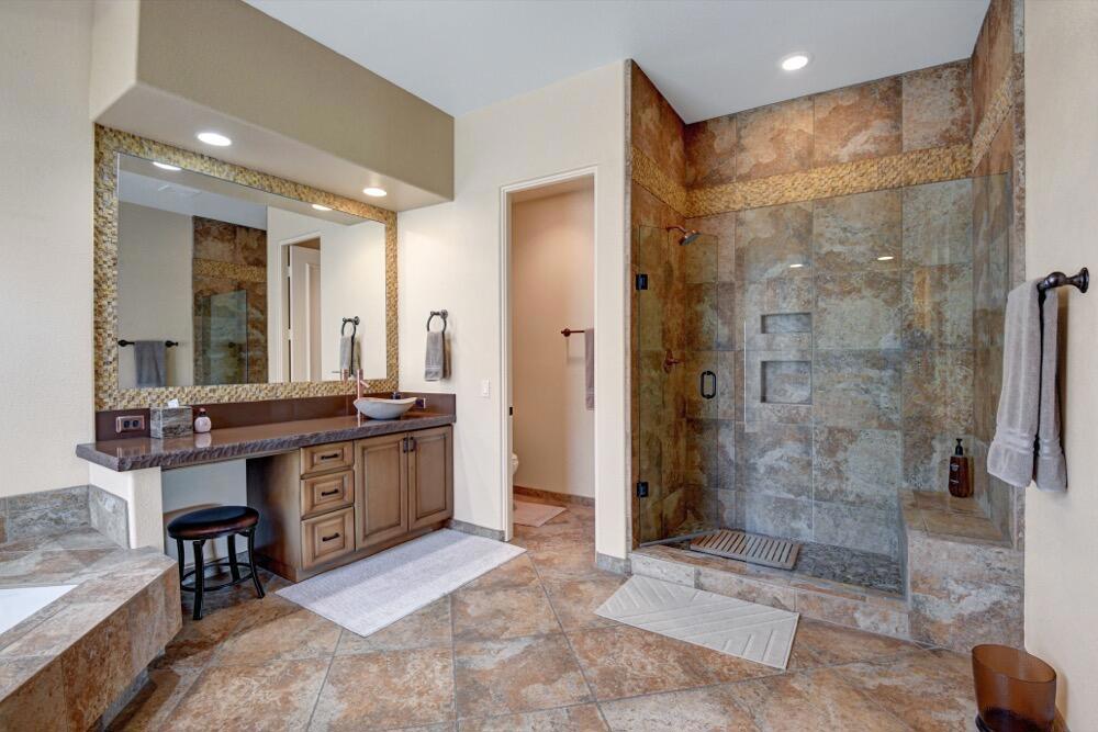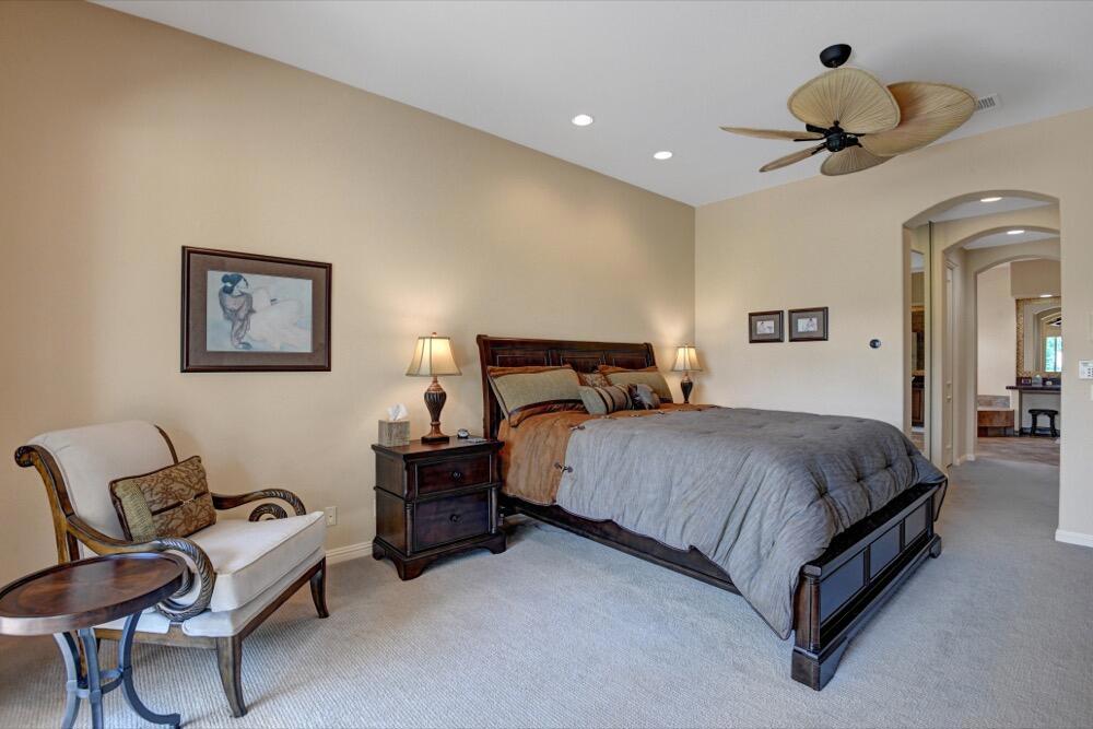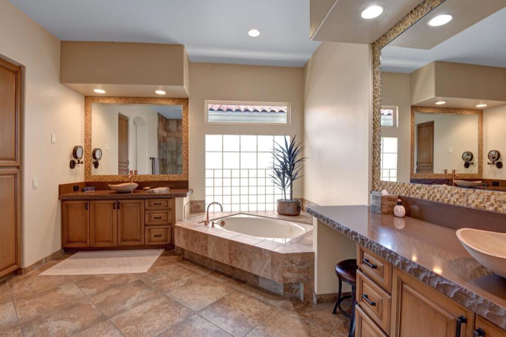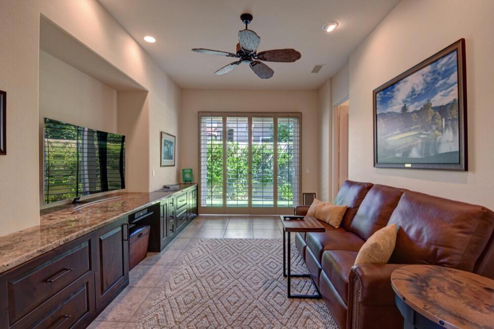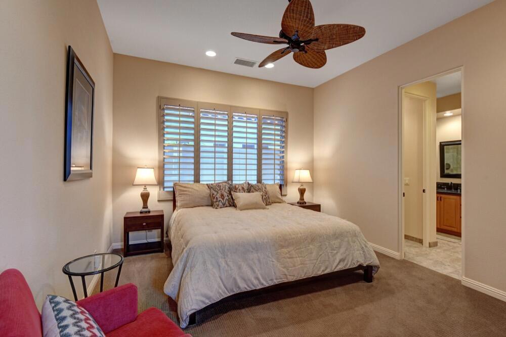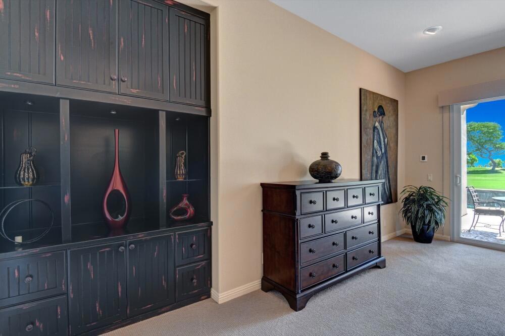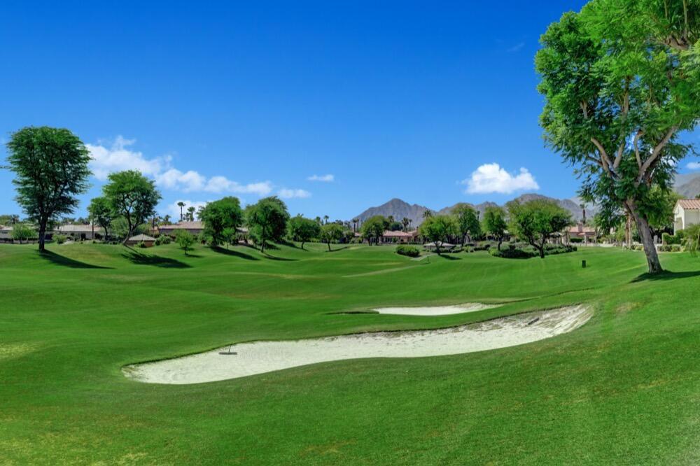 Experience the extraordinary upgrades and breathtaking vistas of one of the most popular floor plans in Indian Ridge Country Club in Palm Desert. This Ocotillo 1, 3082sf, 3 bedroom, 3.5 bathrooms has been meticulously perfected where every detail was attended to. As you step into the nicely landscaped courtyard, you'll be greeted by inviting paved walkways leading you through the large double wrought-iron and glass arched doorway. A unique highlight of this property is the transformation of the bar area into a stylish dining space, enhancing the overall ambiance for hosting guests. The former dining room has been reimagined into a versatile office/den or 4th sleeping area, complete with pocket sliding doors. There are three guest bedrooms, each with their own private baths, and an additional powder bath. Granite countertops and elegant tile embellish the entirety of this home, beautifully complementing the stack stone fireplace and the popular great room floor plan. The house has newer windows and doors in almost every area of the home. And, did we mention ''owned'' solar - sure to keep your summer air conditioning bills in check. The captivating back patio has been thoughtfully designed for entertaining featuring a built-in barbecue and pristine Pebble Tec saltwater pool. This home exudes enchantment and comes Furnished per Inventory List. Some furnishings have been removed and substituted from those shown in the MLS photos. Home registered with Golf membership.