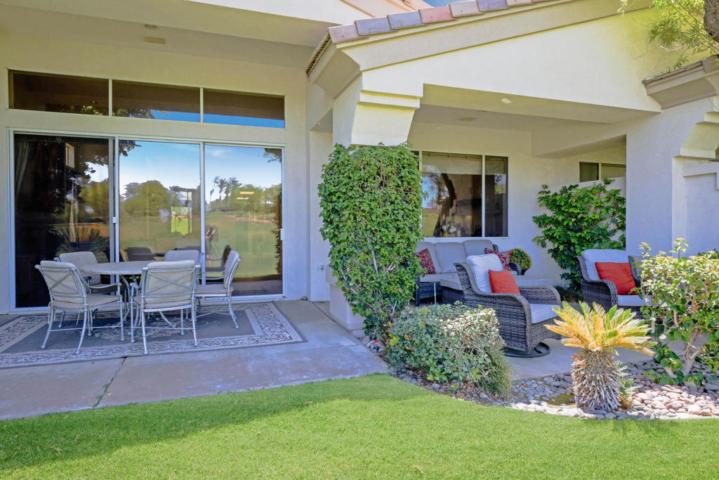 Available seasonal January 2026 - April 2026 at $9,500/month. Contact agent for off season and/or long term rental rates. This popular Acacia 3 open floor plan in Palm Desert's Indian Ridge Country Club offers a cozy fireplace, media center, and breakfast bar in the gourmet kitchen, along with an adjacent dining area. It includes three bedrooms and a dual bathroom, while the large Primary Suite has two vanities, a spacious walk-in closet, and a luxurious bath. Positioned near a community pool/spa on the first hole of the Grove Course, the west-facing outdoor patio provides a BBQ area with scenic fairway and mountain views, plus breathtaking desert sunsets. Located within Indian Ridge Country Club, a premier private community, it's conveniently central in the Palm Springs area, close to I-10, the airport, and El Paseo's shopping, dining, and entertainment. Indian Ridge is surrounded by lush palm trees and manicured grounds. A landlord's membership is available for tenant use (pending membership approval) with a minimum three-month rental. Landlord pays HOA dues includes cable/internet and landscaping. Tenant pays utilities for annual lease, or Landlord pays monthly caps for seasonal leases.
