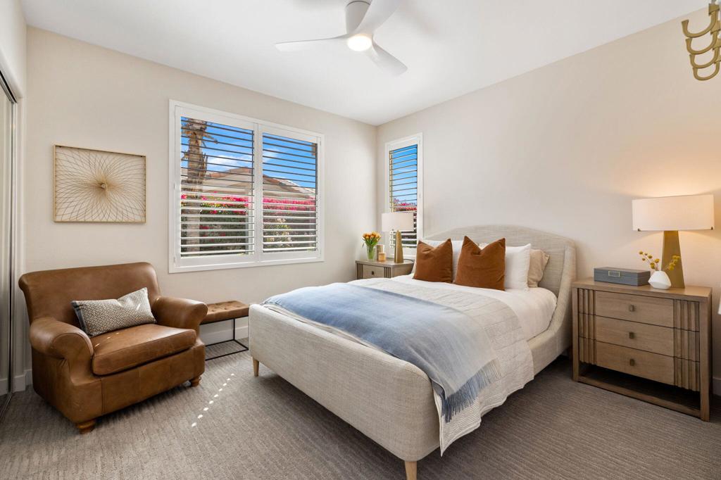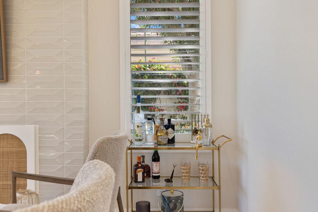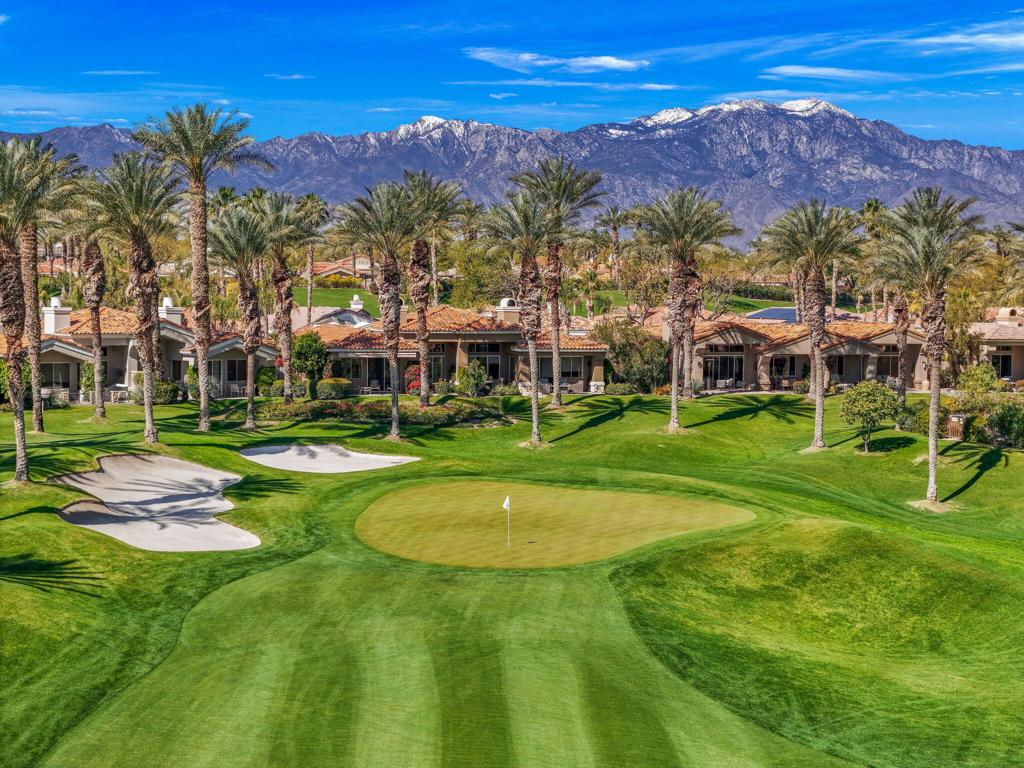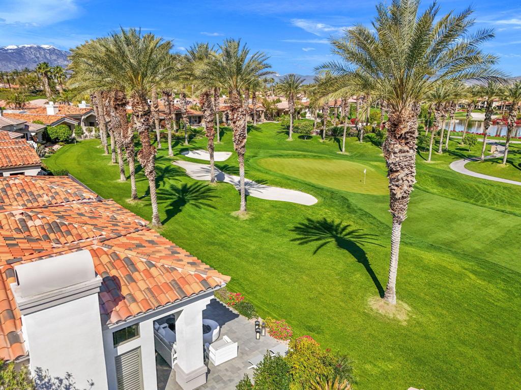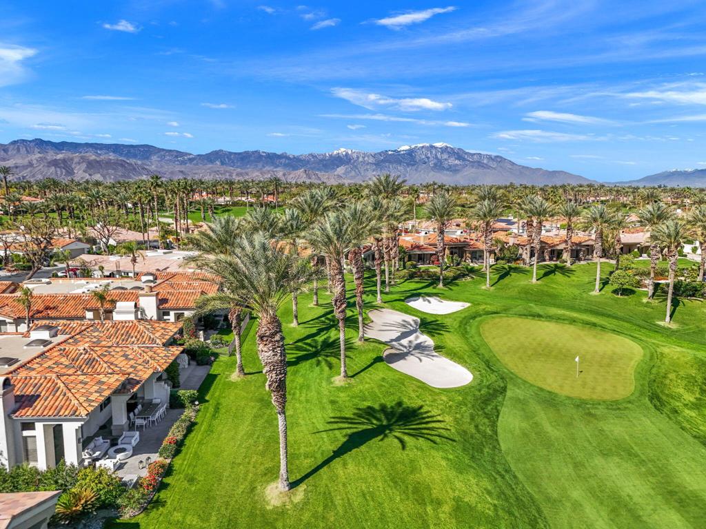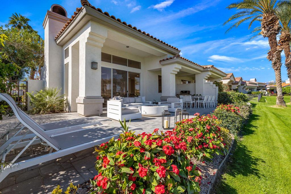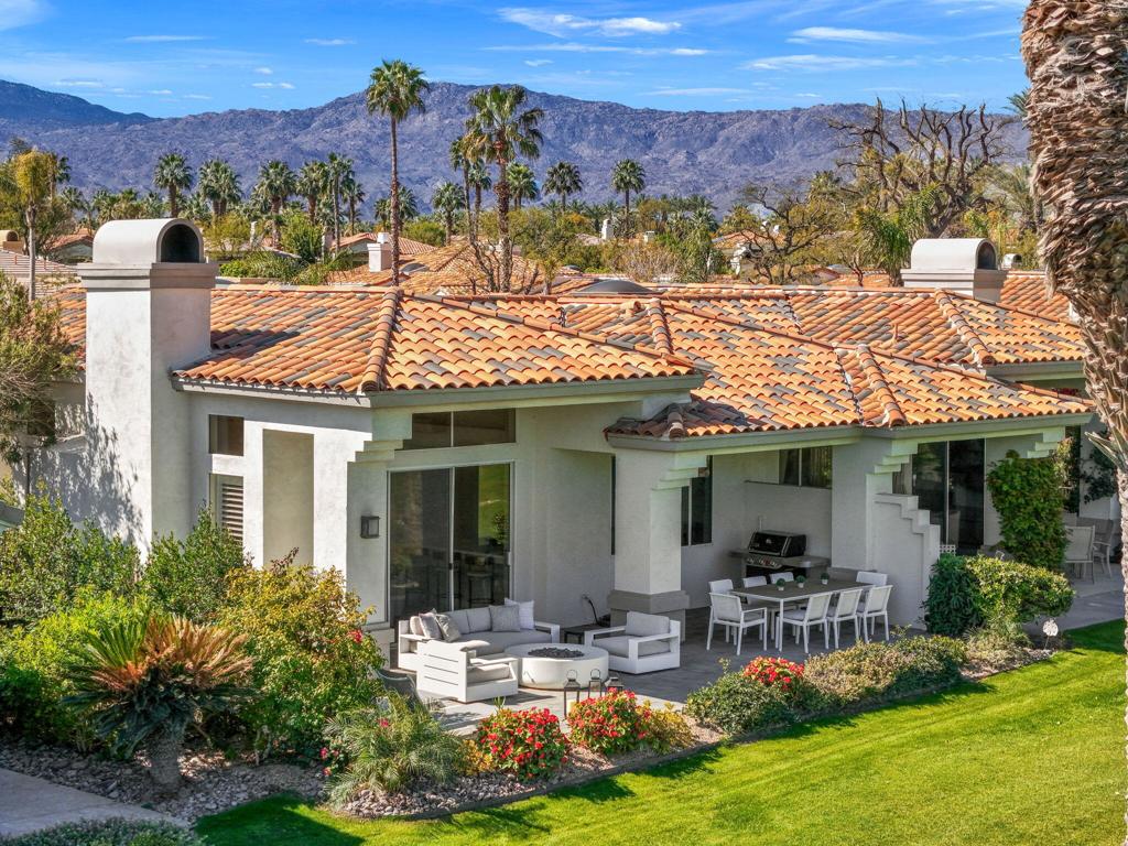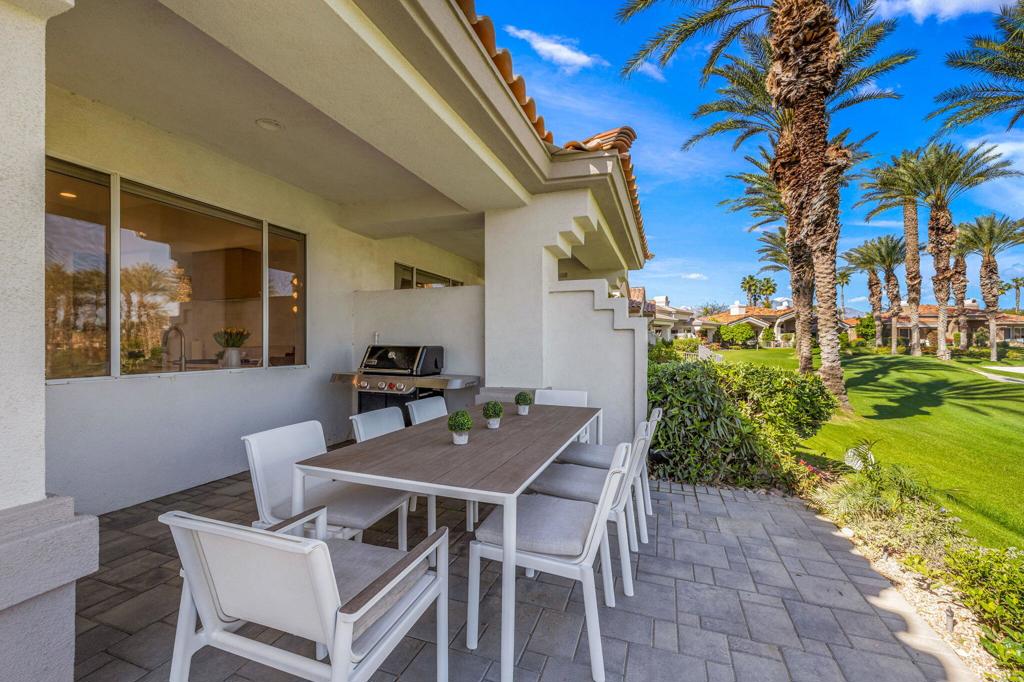 Prepare to be captivated by this stunningly updated Acacia 3 floor plan at Indian Ridge. The entire living area boasts exquisite porcelain flooring, complemented by a beautifully tiled fireplace and designer furnishings that grace every room. The gourmet kitchen is a Chef's dream, featuring all-new cabinets, quartz countertops, wine refrigerator and top-of-the-line appliances including a paneled Jennair refrigerator and Miele dishwasher, offering both style and functionality. Step outside to the outdoor living space, perfect for relaxation or entertaining, featuring an extended patio with pavers, a BBQ area, and breathtaking views of the 4th hole of The Grove course. The home's bedrooms feature new carpeting, while the bathrooms boast new cabinets, quartz countertops, new lighting and new toilets. A new HVAC system is a huge feature as well as A/C for the garage and shutters and remote blinds throughout the home. Being offered furnished per the inventory list. Ask us about different Membership options available for this home.