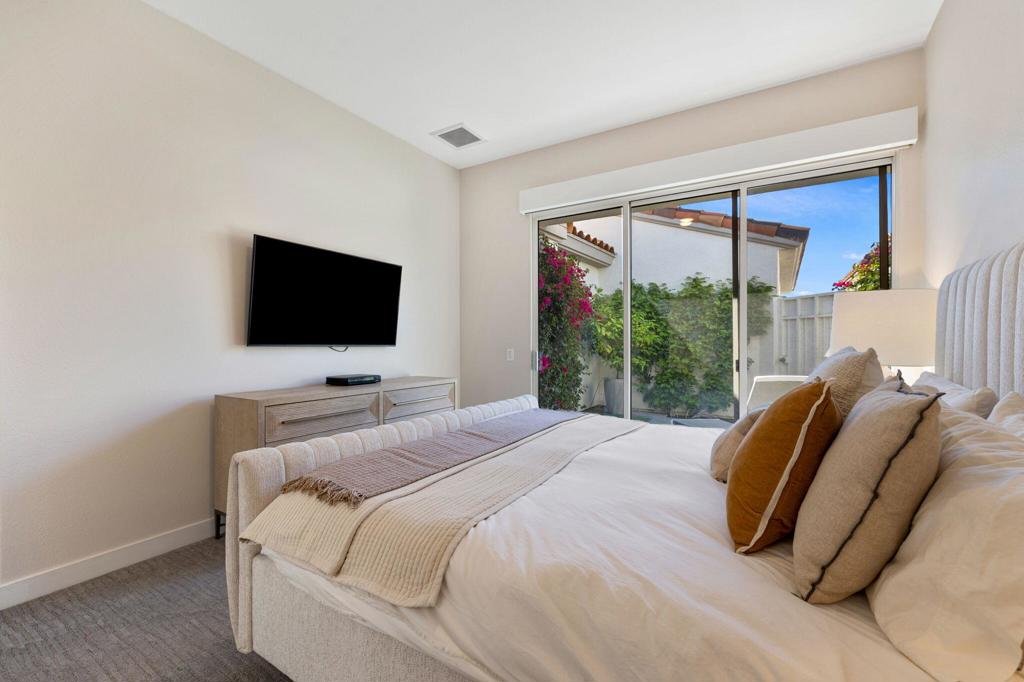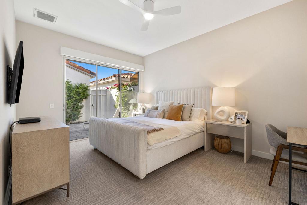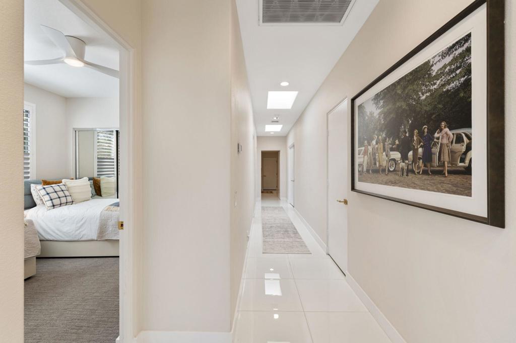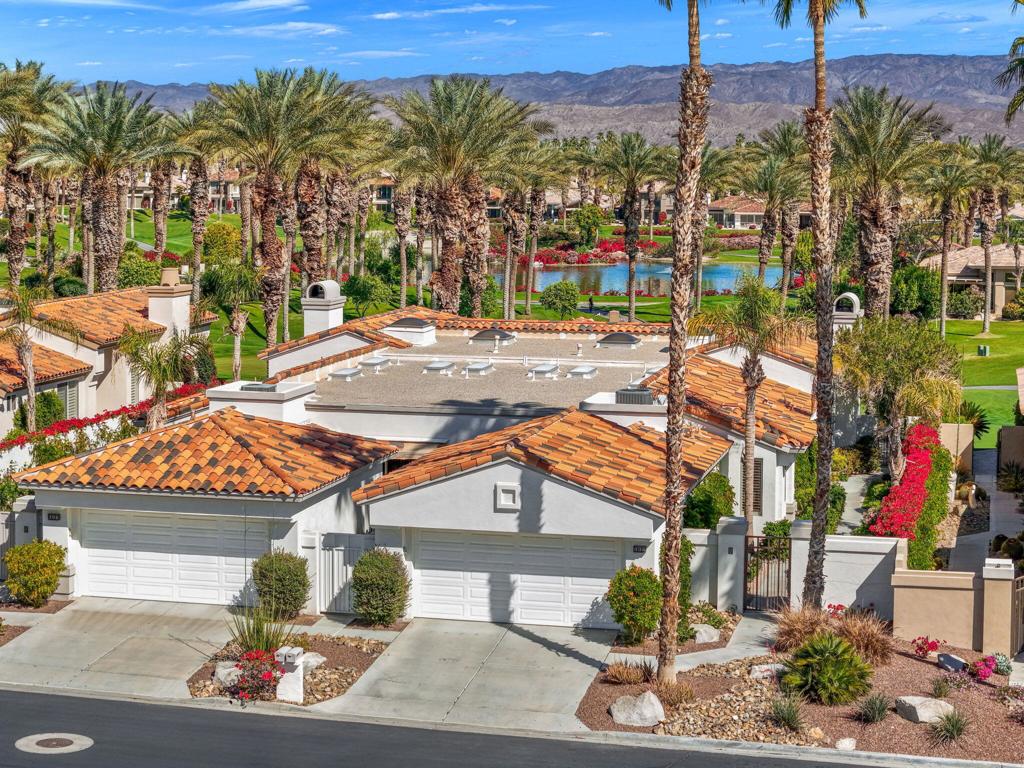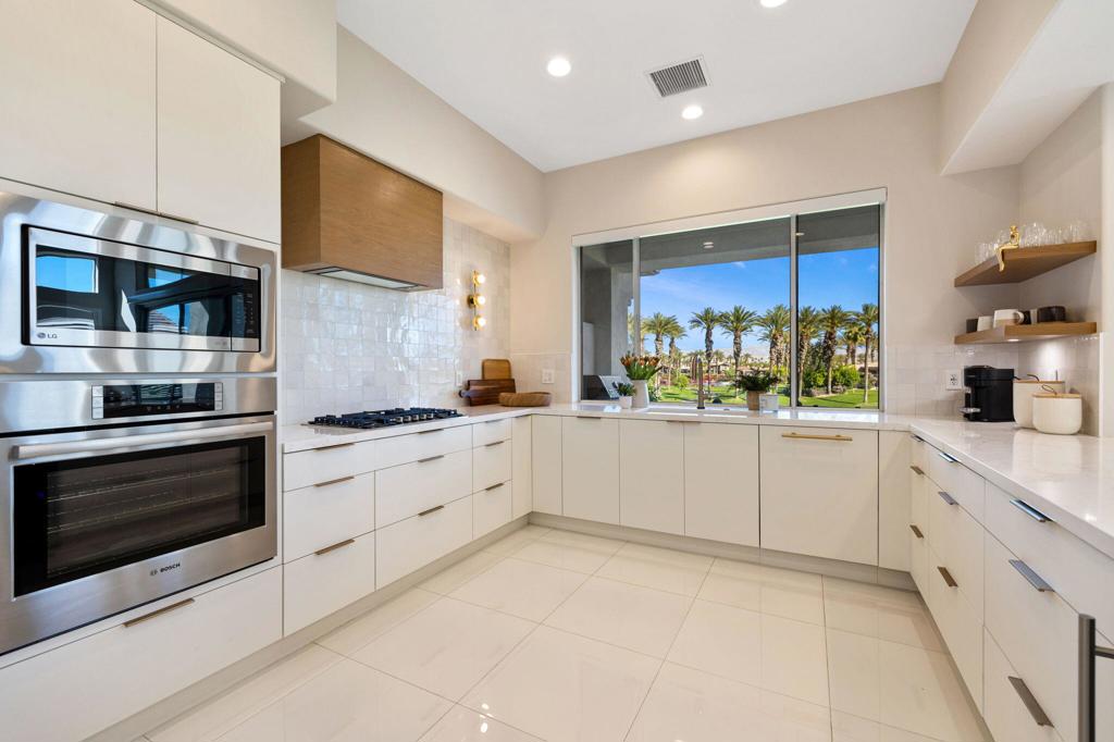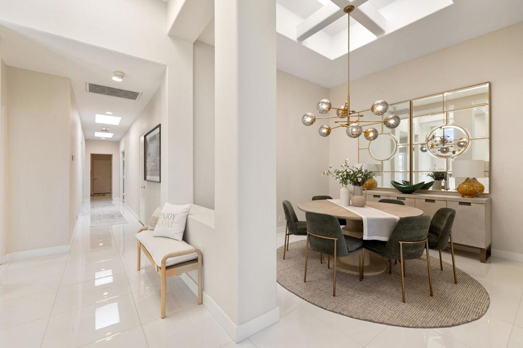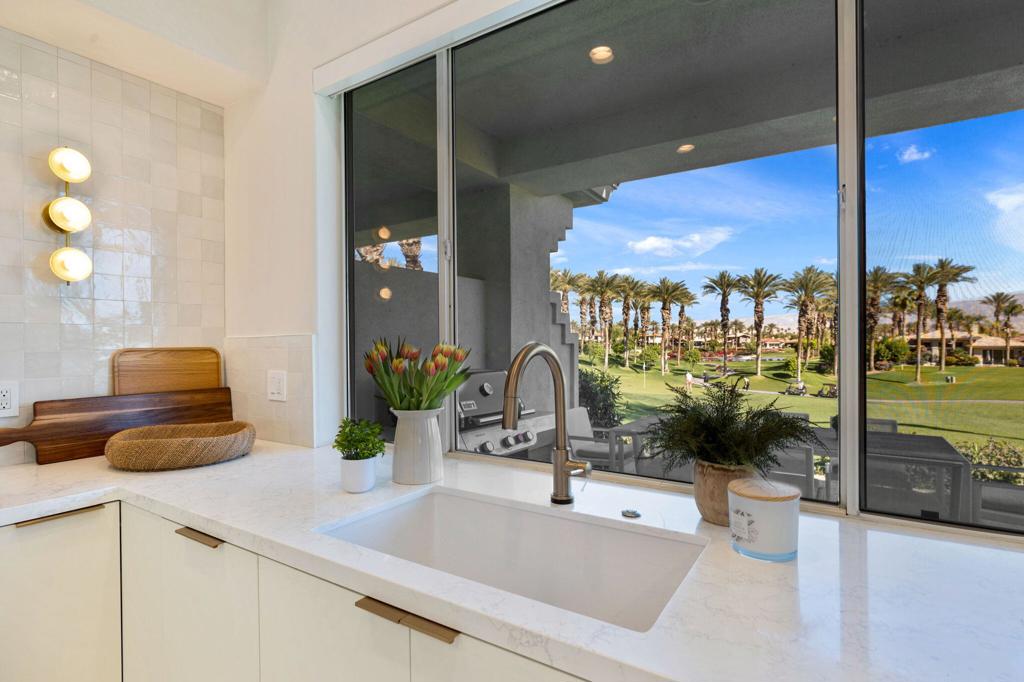 Prepare to be captivated by this stunningly updated Acacia 3 floor plan at Indian Ridge. The entire living area boasts exquisite porcelain flooring, complemented by a beautifully tiled fireplace and designer furnishings that grace every room. The gourmet kitchen is a Chef's dream, featuring all-new cabinets, quartz countertops, wine refrigerator and top-of-the-line appliances including a paneled Jennair refrigerator and Miele dishwasher, offering both style and functionality. Step outside to the outdoor living space, perfect for relaxation or entertaining, featuring an extended patio with pavers, a BBQ area, and breathtaking views of the 4th hole of The Grove course. The home's bedrooms feature new carpeting, while the bathrooms boast new cabinets, quartz countertops, new lighting and new toilets. A new HVAC system is a huge feature as well as A/C for the garage and shutters and remote blinds throughout the home. Being offered furnished per the inventory list. Ask us about different Membership options available for this home.