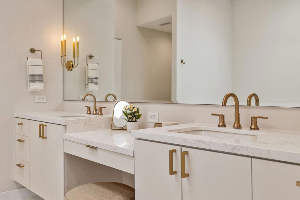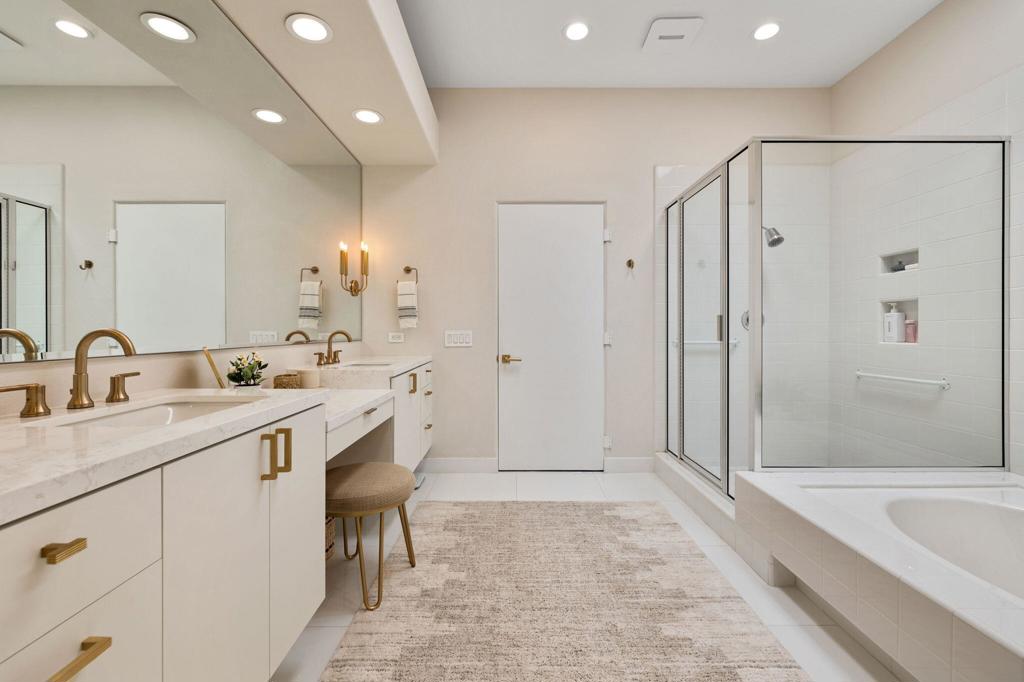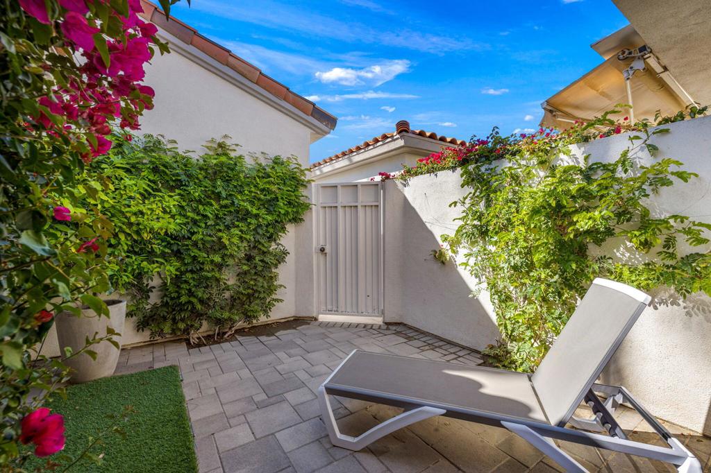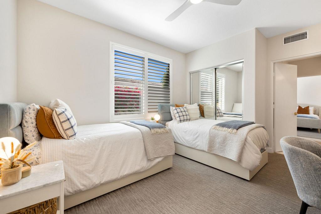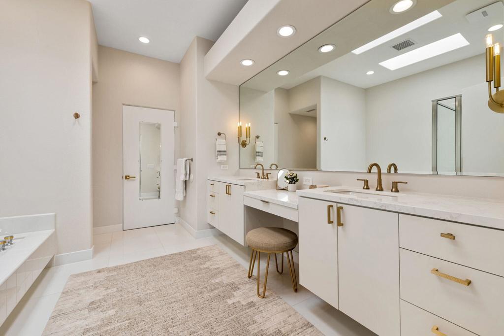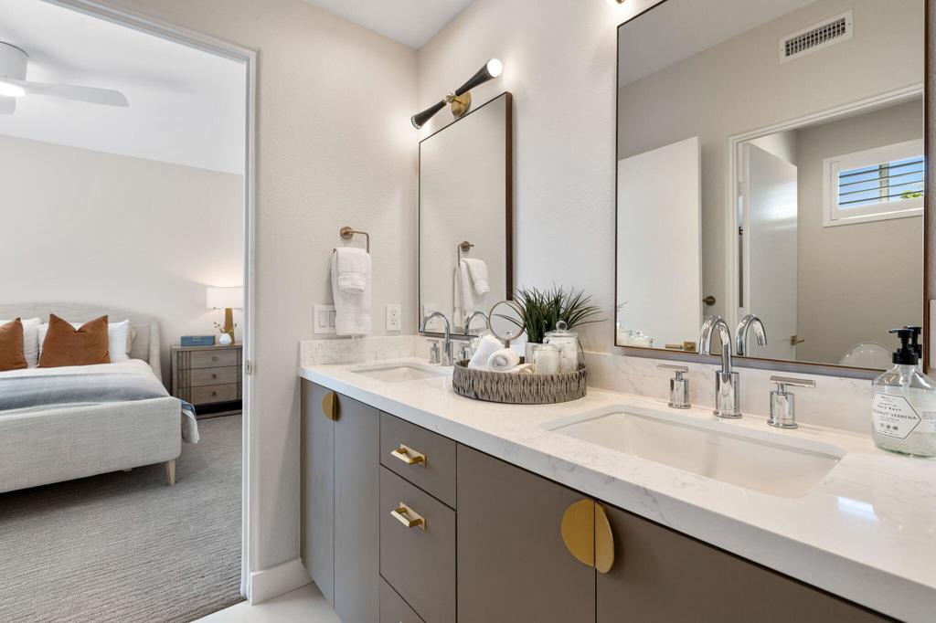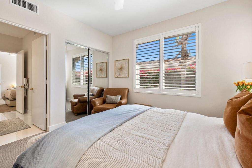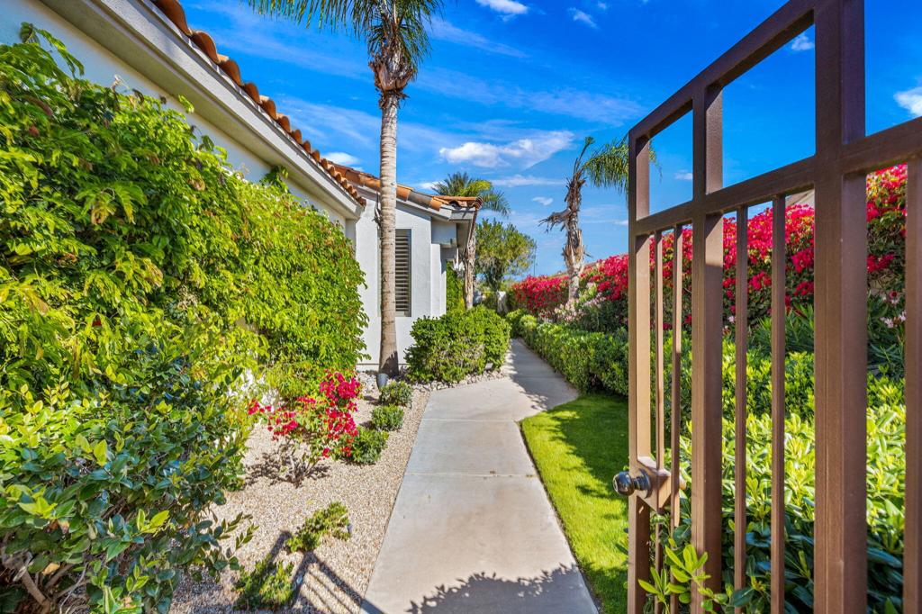 Prepare to be captivated by this stunningly updated Acacia 3 floor plan at Indian Ridge. The entire living area boasts exquisite porcelain flooring, complemented by a beautifully tiled fireplace and designer furnishings that grace every room. The gourmet kitchen is a Chef's dream, featuring all-new cabinets, quartz countertops, wine refrigerator and top-of-the-line appliances including a paneled Jennair refrigerator and Miele dishwasher, offering both style and functionality. Step outside to the outdoor living space, perfect for relaxation or entertaining, featuring an extended patio with pavers, a BBQ area, and breathtaking views of the 4th hole of The Grove course. The home's bedrooms feature new carpeting, while the bathrooms boast new cabinets, quartz countertops, new lighting and new toilets. A new HVAC system is a huge feature as well as A/C for the garage and shutters and remote blinds throughout the home. Being offered furnished per the inventory list. Ask us about different Membership options available for this home.