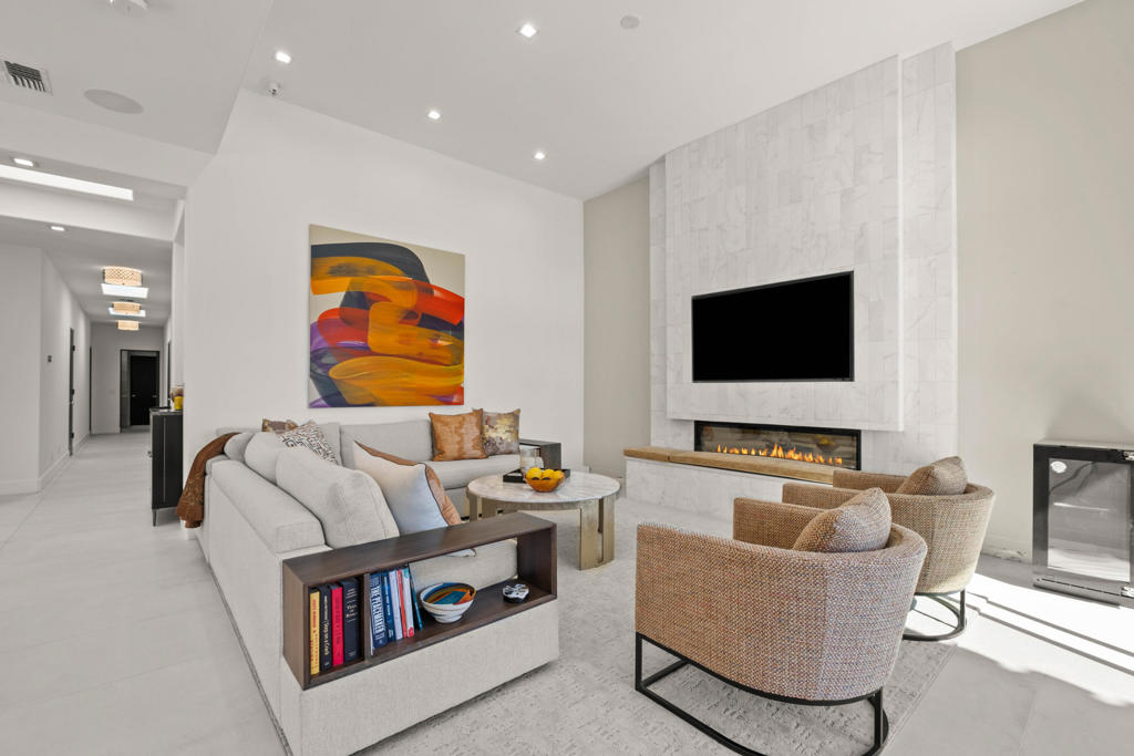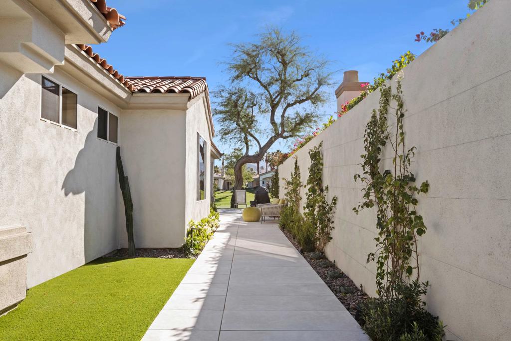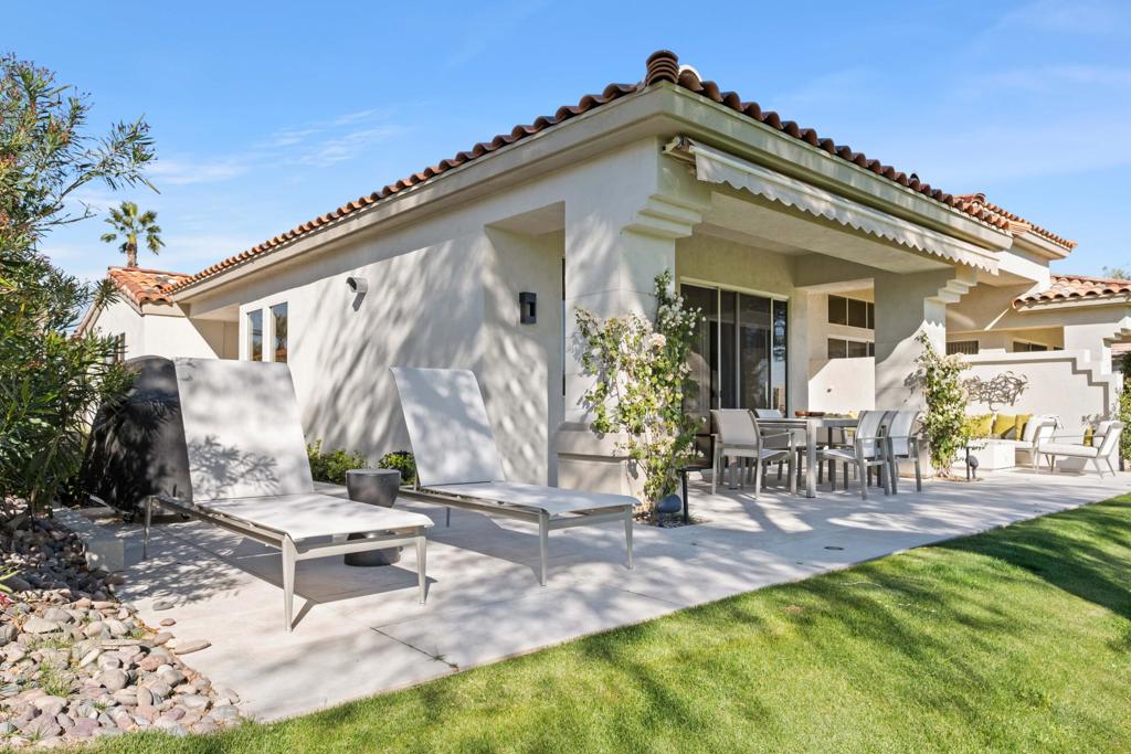 Available May 21, 2026 - December 15, 2026, dates flexible. Contact agent to inquire on 2026-2027 seasonal lease rates. Welcome to this beautifully remodeled and uniquely expanded Acacia 4, boasting over 2200sf with 3 bedrooms and 3.5 bathrooms. The home has been meticulously renovated with the highest quality products and furnishings for the finest in desert living. You will enjoy the fully tiled interior and exterior south facing patio with built-in gas firepit and beautiful outdoor landscape and lighting. One guest bedroom features double queen America leather system built in sleepers as well as a beautiful home-office/entertainment system. Both the master and 2nd guest bedroom enjoy king beds and all bedrooms enjoy ensuite remodeled baths. The home is equipped with new TVs, contemporary glass skylights, electric fireplace, HVAC systems are energy efficient heat pumps plus gas tankless water heater, and so much more. Located across the street from the neighborhood pool and hot tubs and walkable to fitness center, club house and tennis/ Pickleball courts with the option for tenant to pay for use of owner's membership with 3 month minimum rental and membership approval. Use of Owners golf cart is permitted with appropriate waiver and hold harmless.