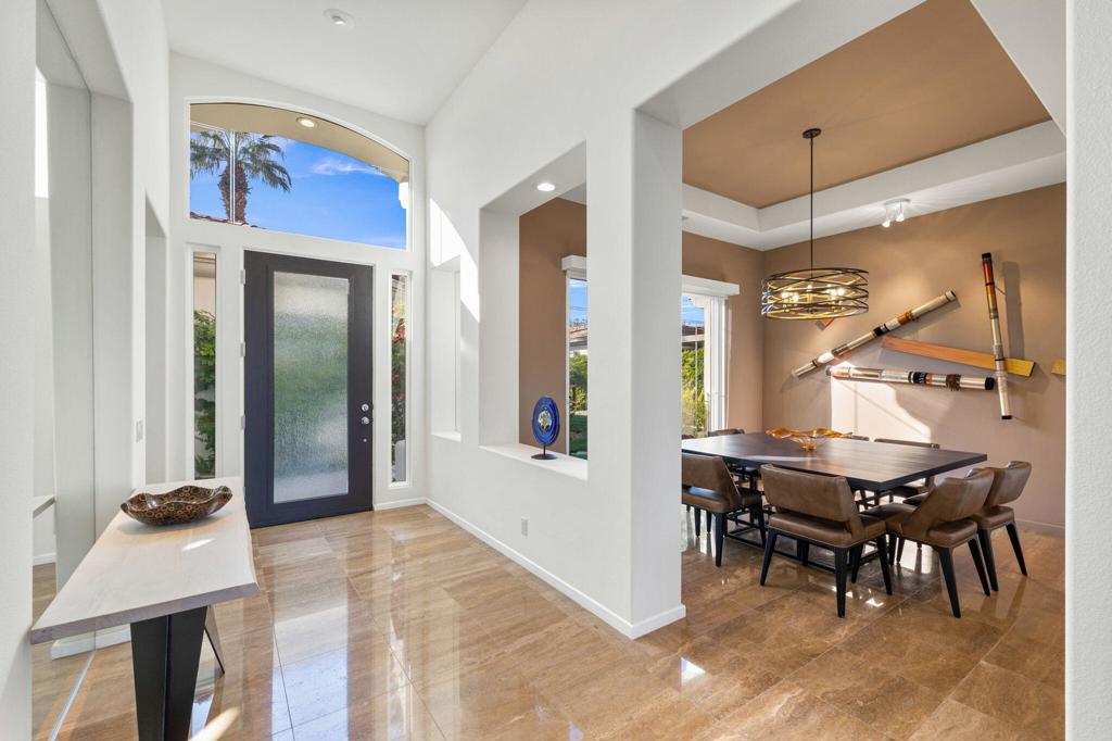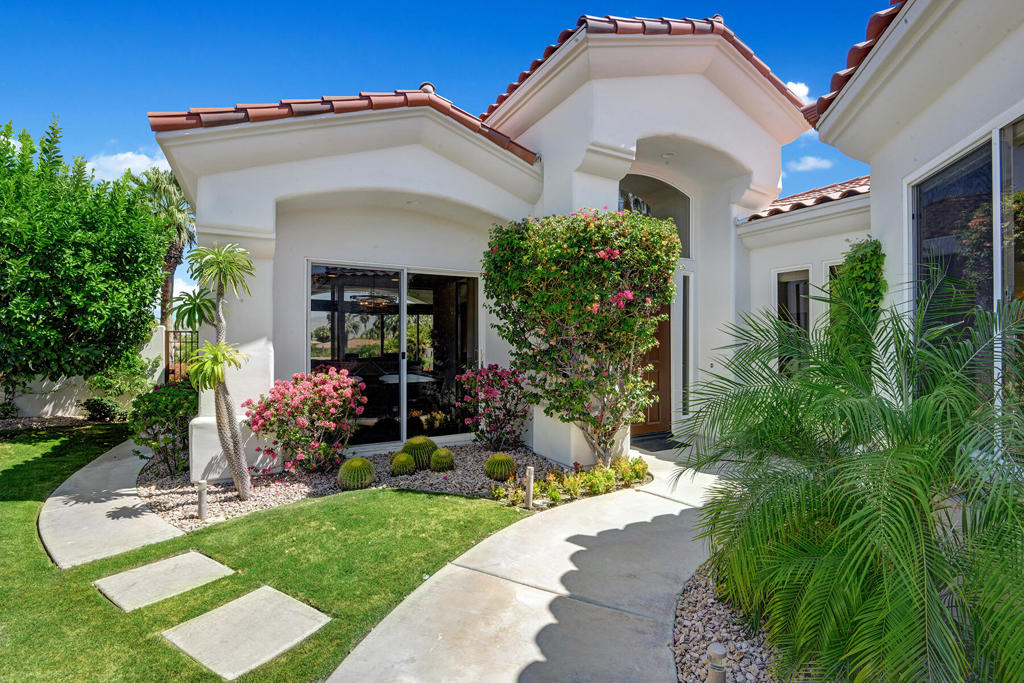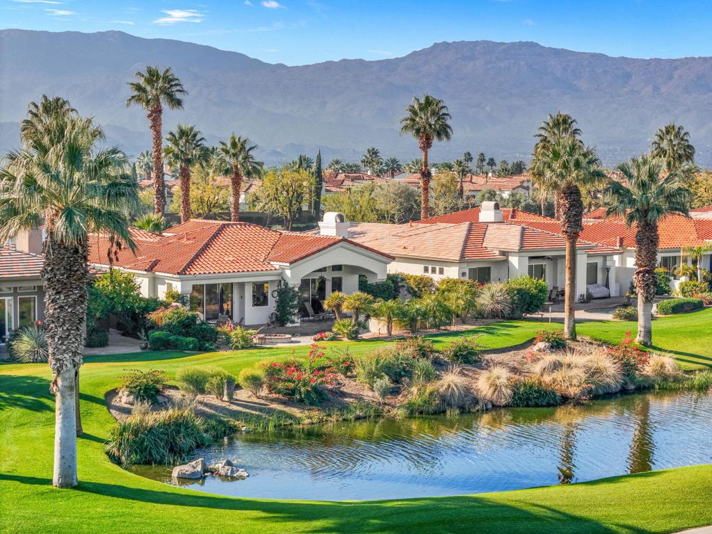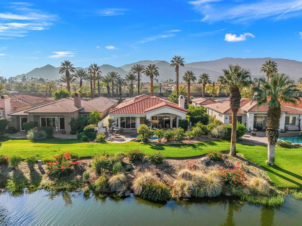 Don't miss your opportunity to own this meticulously maintained 2742sf home in Beautiful Indian Ridge Country Club. This home has an oversized courtyard, 33 owned solar panels, newer A/C units, mini-split in garage, remodeled powder room and primary bathroom with gorgeous walk-in shower and stand-alone soaking tub to relax in after a fun day of golf and/or pickle ball with friends. Step outside onto your back patio and take in the elevated views of the mountains, lake and golf course. Take a dip in your salt-water pool or sit around the fire pit with your favorite beverage to soak in the beautiful desert weather. This fantastic property is being sold furnished per inventory with a Club membership available with no wait. Make this dream home yours today!