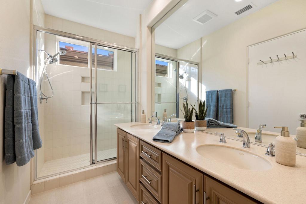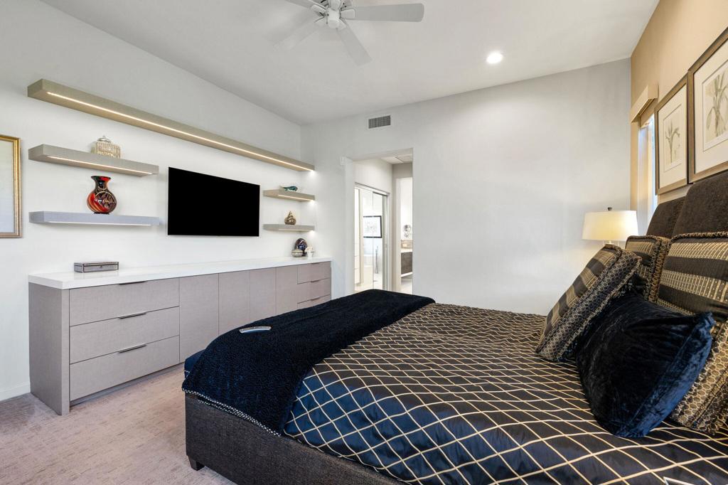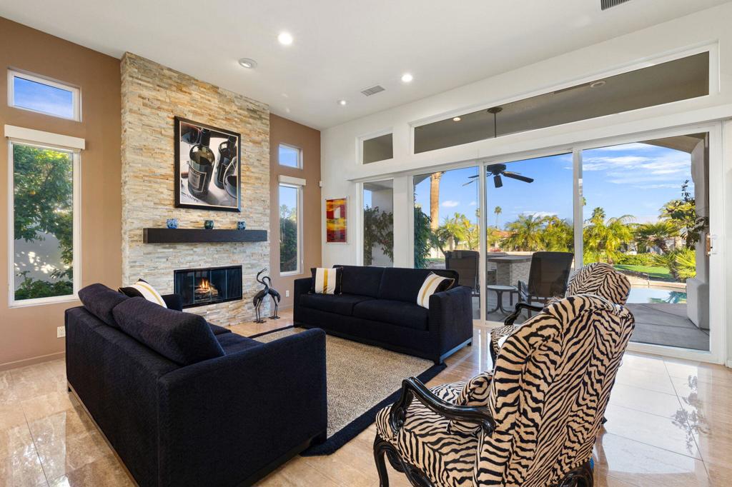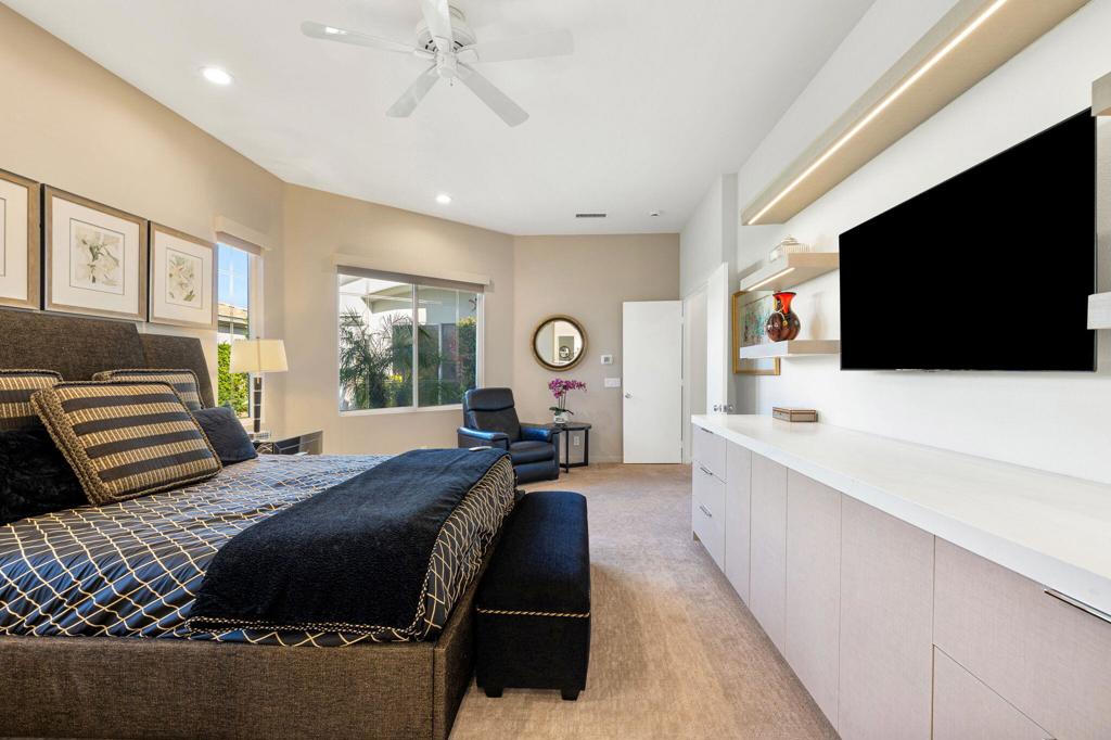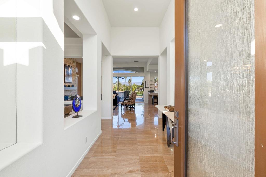 Don't miss your opportunity to own this meticulously maintained 2742sf home in Beautiful Indian Ridge Country Club. This home has an oversized courtyard, 33 owned solar panels, newer A/C units, mini-split in garage, remodeled powder room and primary bathroom with gorgeous walk-in shower and stand-alone soaking tub to relax in after a fun day of golf and/or pickle ball with friends. Step outside onto your back patio and take in the elevated views of the mountains, lake and golf course. Take a dip in your salt-water pool or sit around the fire pit with your favorite beverage to soak in the beautiful desert weather. This fantastic property is being sold furnished per inventory with a Club membership available with no wait. Make this dream home yours today!