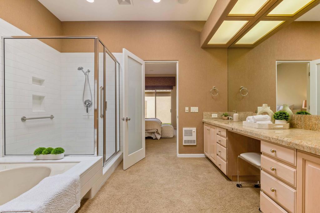 Unlock the door to resort-style living at Indian Ridge Country Club in Palm Desert, California! This spacious 3-bed, 2-bath, 1903 square foot condo offers the epitome of convenience. Recent renovations include fresh paint and brand-new appliances. Step outside onto your captivating south-facing back patio, perfect for soaking up the sun and enjoying majestic views. Nestled in the HOA section of Indian Ridge, indulge in a carefree lifestyle where all landscaping and exterior maintenance are expertly managed for you, allowing for a true 'lock and leave' experience. Don't miss out on this opportunity for unparalleled comfort and relaxation. Offered furnished per inventory list. Contact us today for your private showing and explore membership options to elevate your lifestyle even further!
