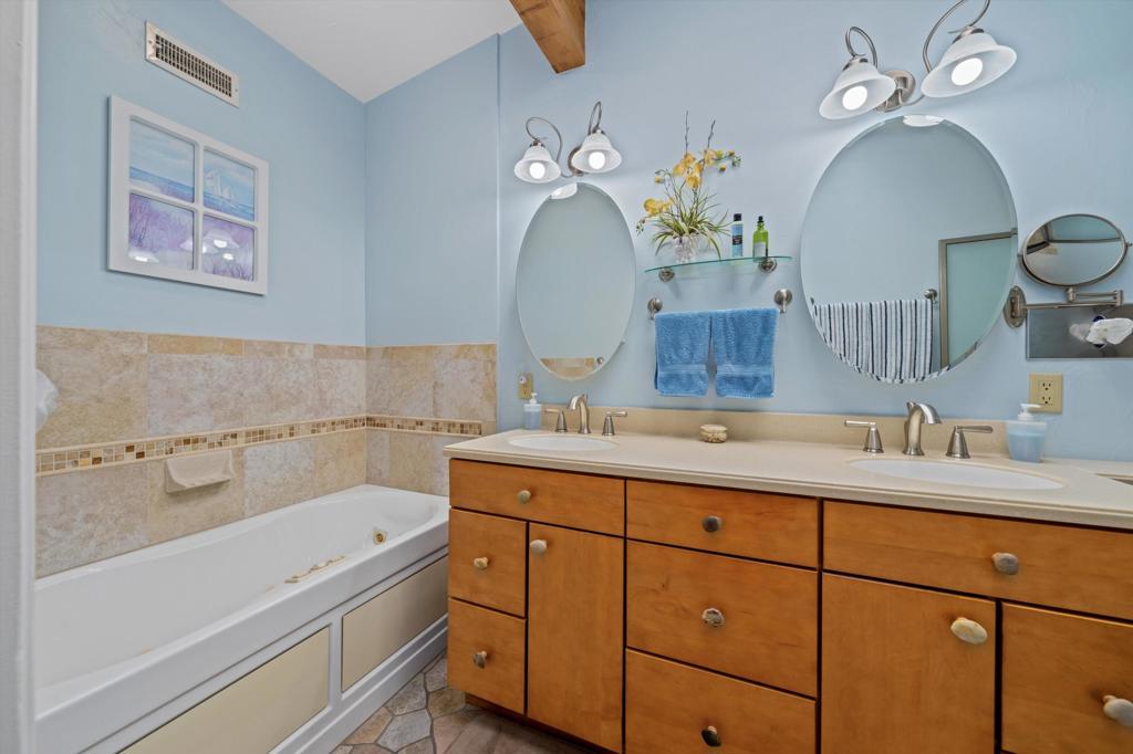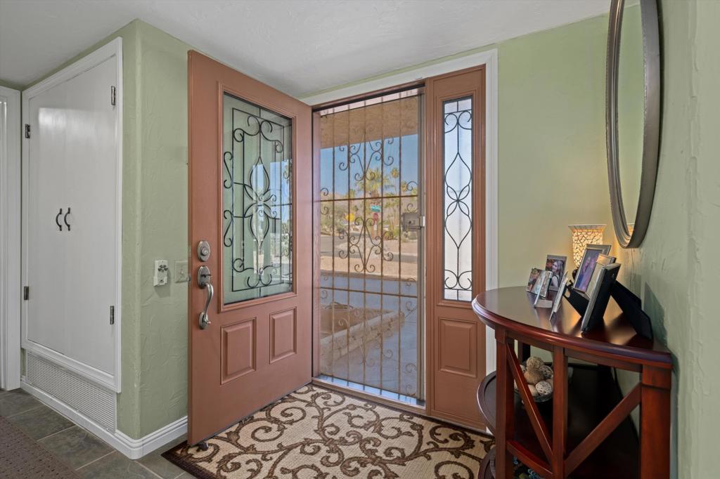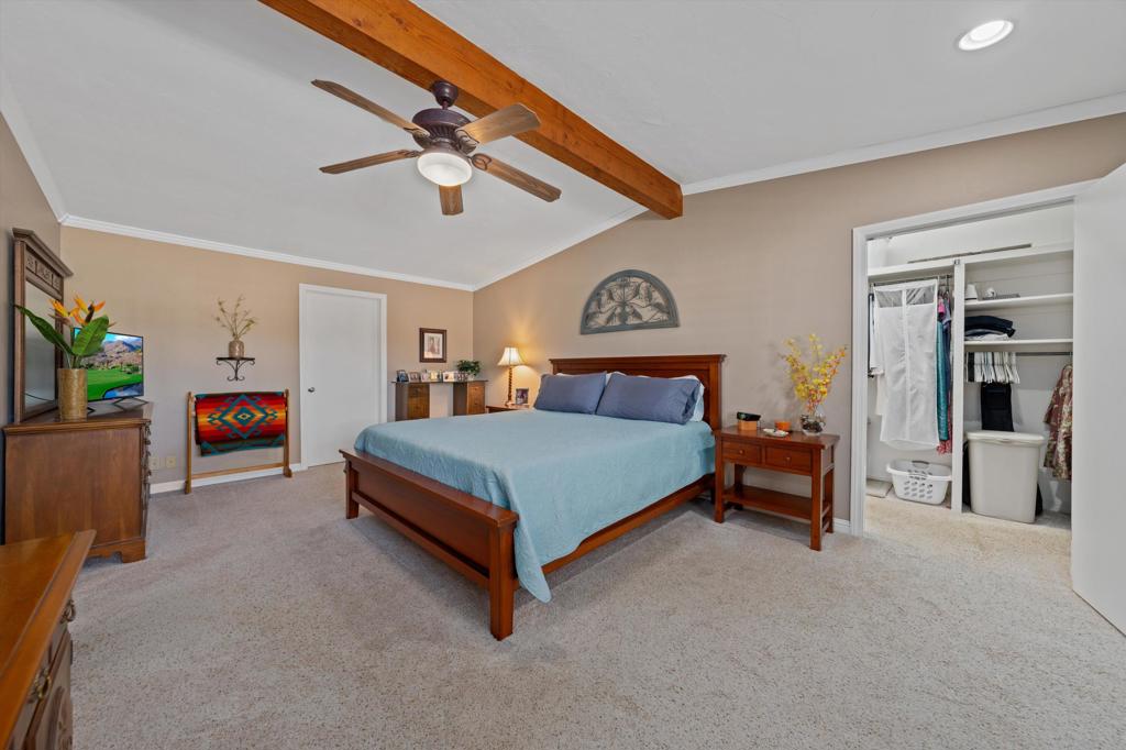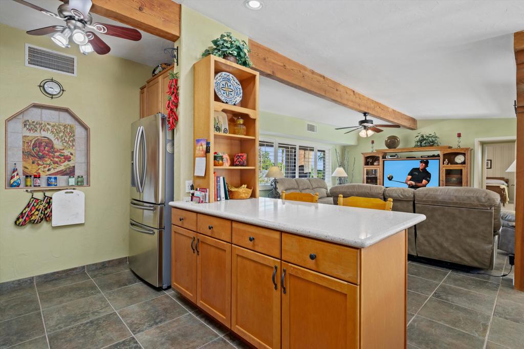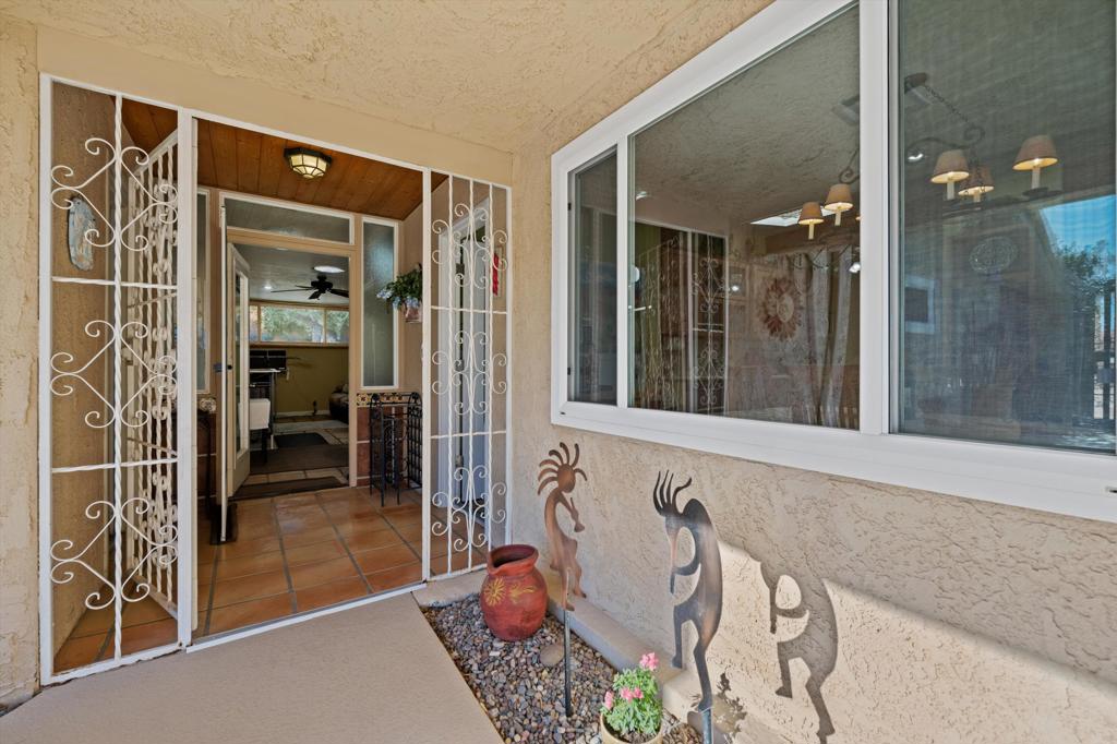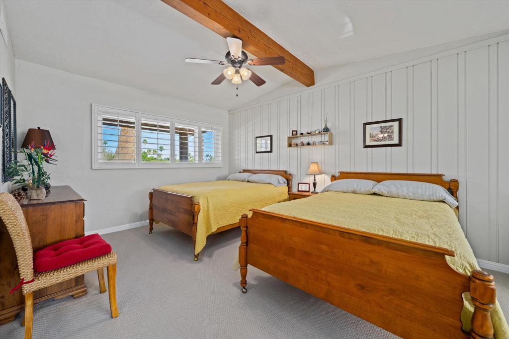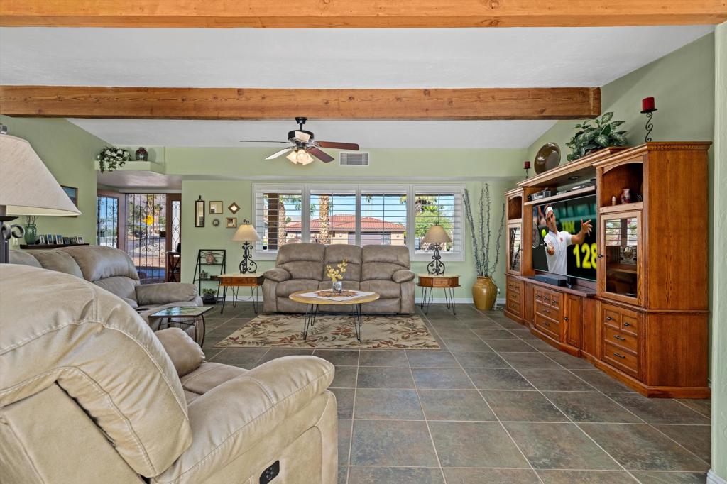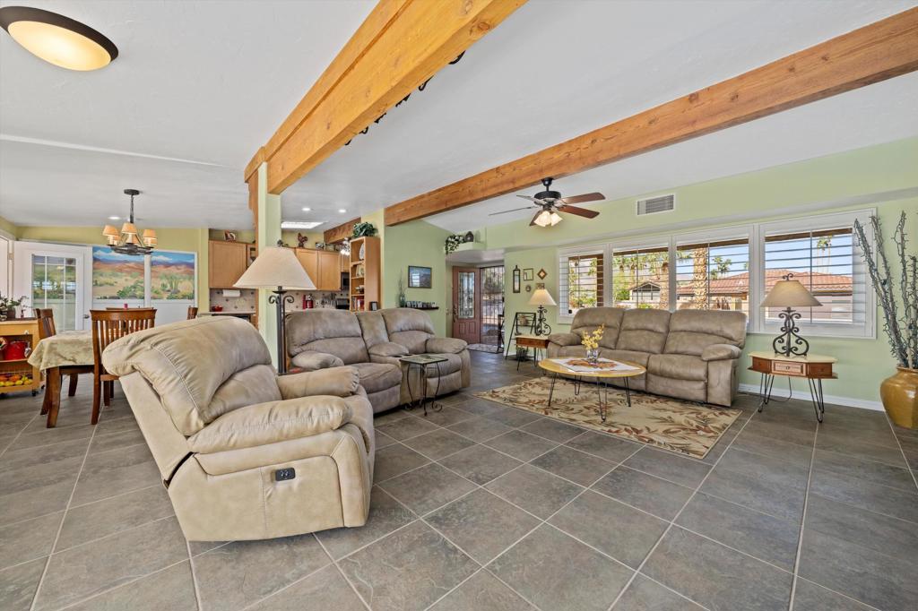 Presenting an exclusive opportunity in the highly coveted Silver Spur Ranch Community of South Palm Desert, renowned for its mid-century history. Situated on a generous corner lot, this property guarantees breathtaking 360-degree panoramic mountain views from the pinnacle of Sun Corral Trail. The outdoor haven features an expansive patio, solar heated saltwater pool, a putting green, and an outdoor shower. Ample space allows for basking in the desert sun or indulging in stargazing beneath the night sky by the gas-fired Chiminea. Indoors, you'll find two spacious bedrooms, two bathrooms, and a two-car garage with a separate workshop. An additional room currently exists as a craft/sewing room but can easily be converted to a large home office or a third bedroom. This home is beautiful as-is and has endless possibilities for additional indoor space. A short distance away lies El Paseo, Palm Desert's gem, offering exquisite shopping and dining experiences. The residence is also conveniently close to the popular Living Desert, Ironwood Park, and numerous hiking trails for exploration. Seller has partial ownership of a second alley easement/parcel and is currently exploring a Lot Line Adjustment. Unbelievably LOW HOA's make this the perfect desert retreat! The home will not last, so make an appointment to see it today - easy to show.