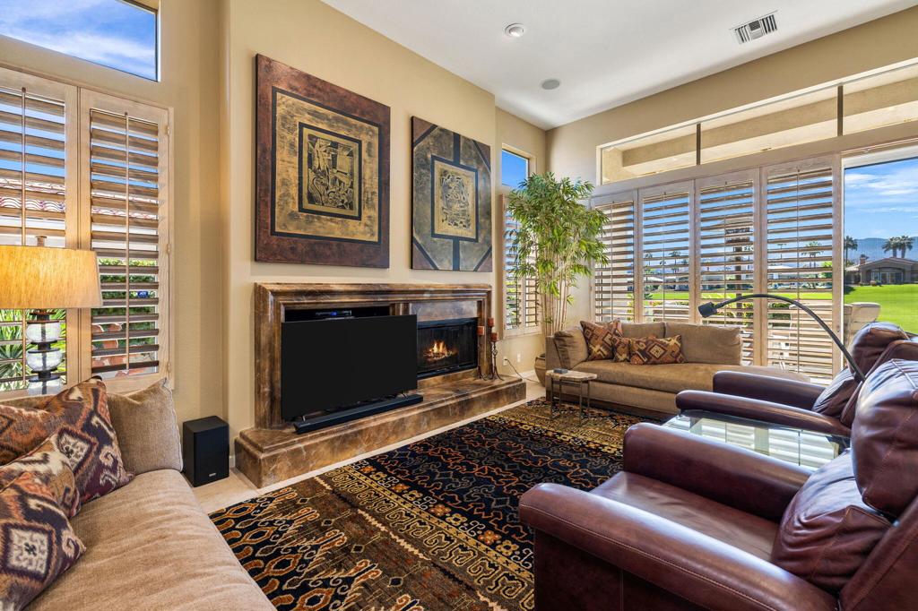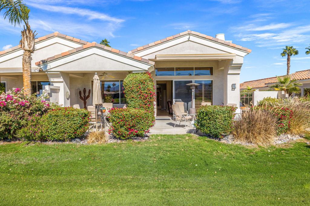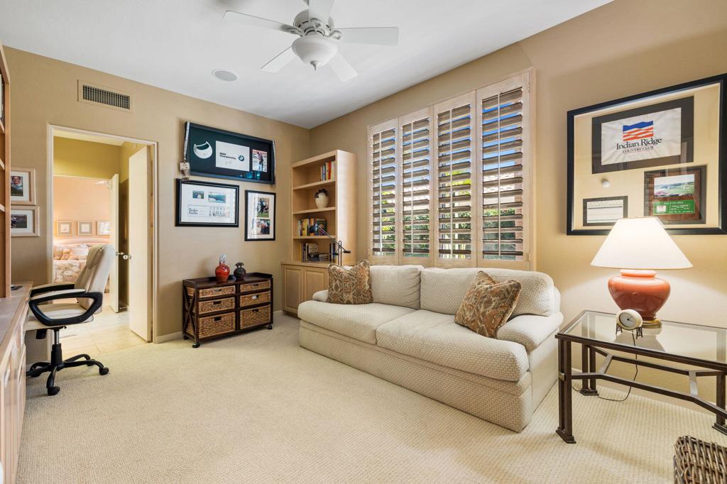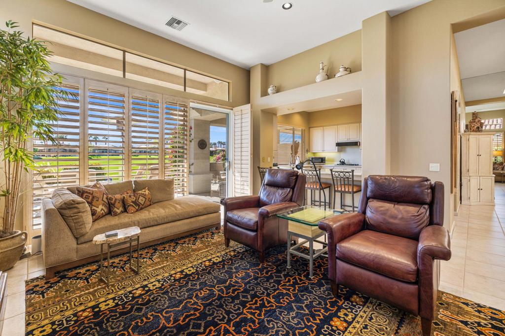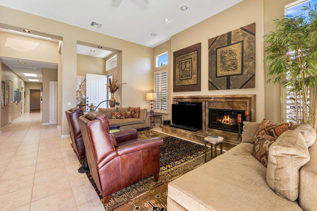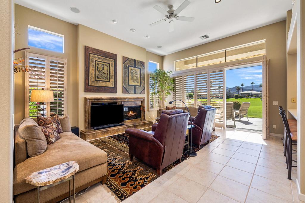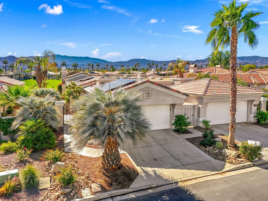 Enjoy immediate access to golf membership with this meticulously maintained Acacia 3 floor plan. This beautiful home welcomes you with a large, inviting courtyard and an expansive back patio offering sweeping southern views of the mountains and the 3rd hole of The Grove course. Step inside to find tile flooring throughout the main living areas, providing an elegant and low-maintenance foundation, while the bedrooms feature upgraded carpet for added comfort. The primary suite offers a private retreat with its own newly paved courtyard--a perfect spot to savor your morning coffee or unwind in the evening. Plus, the home is equipped with solar panels that will be fully paid off at closing, delivering energy efficiency without additional costs. Two additional guest bedrooms, one currently serving as a well-appointed office, provide flexible space for family, guests, or a personal workspace. The home also boasts a recently updated HVAC system, ensuring year-round comfort. With all these features and no wait for a golf membership, this property is a rare find. Come see why it won't stay on the market for long!