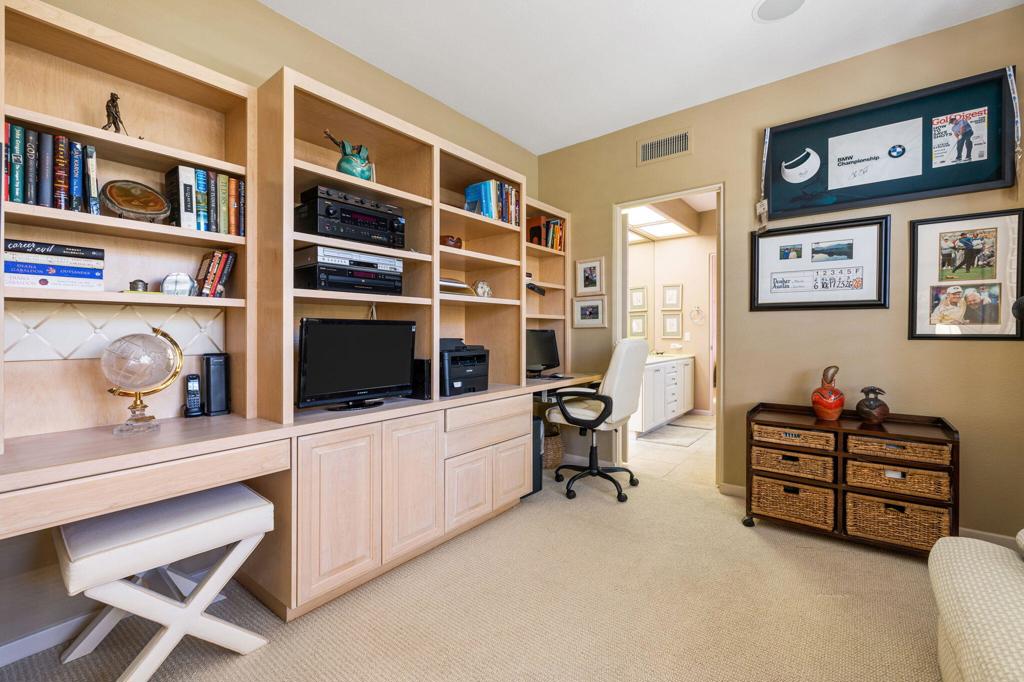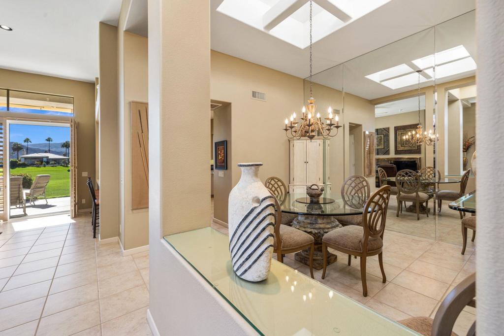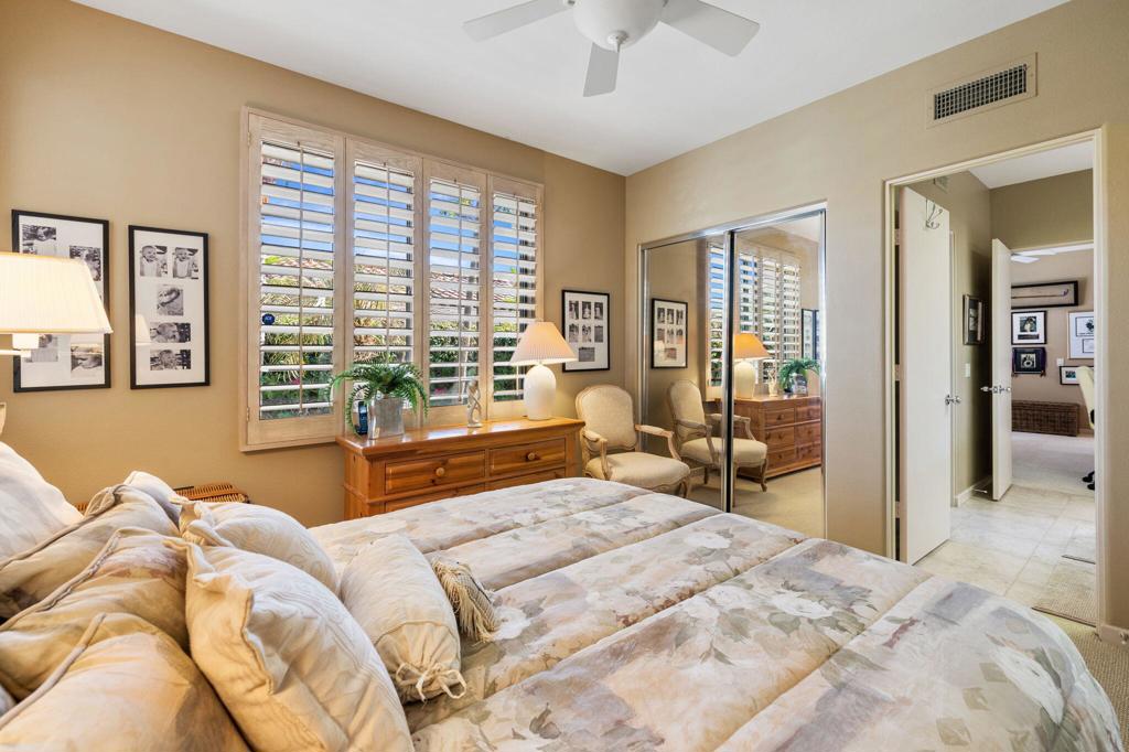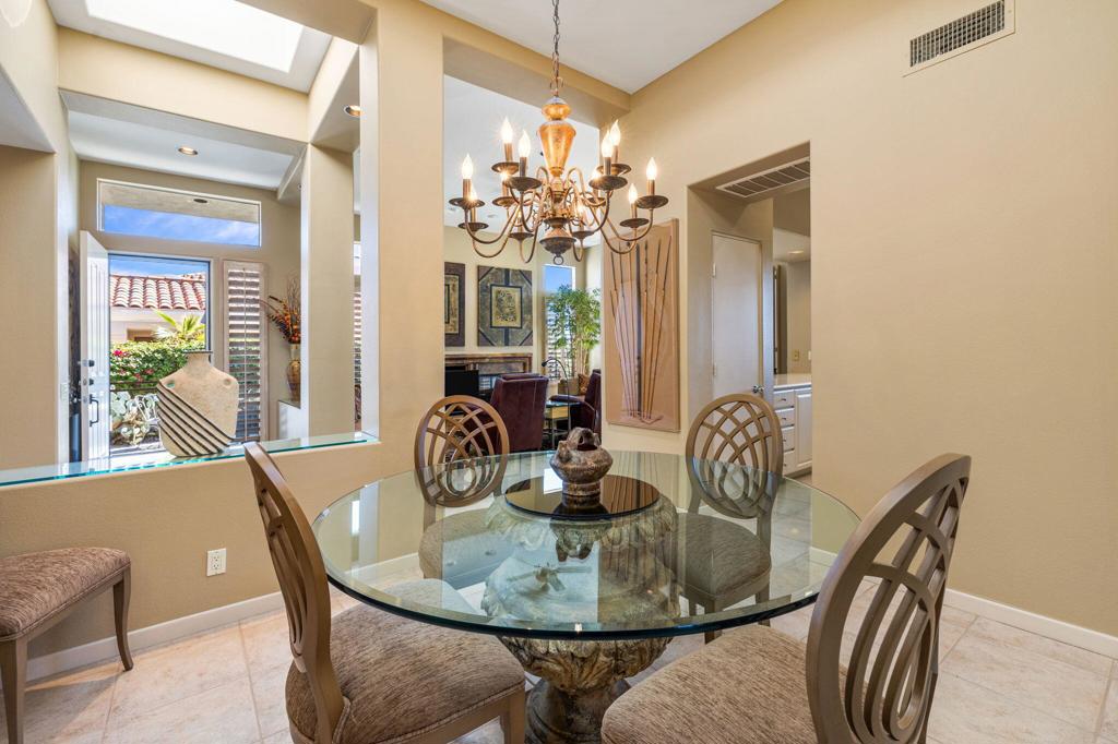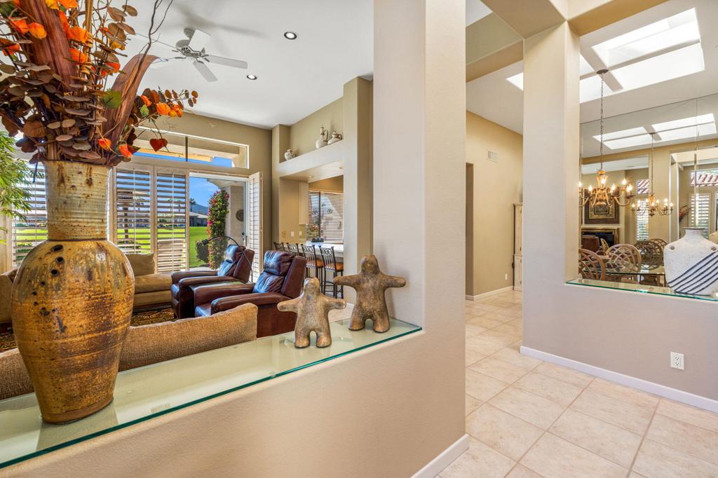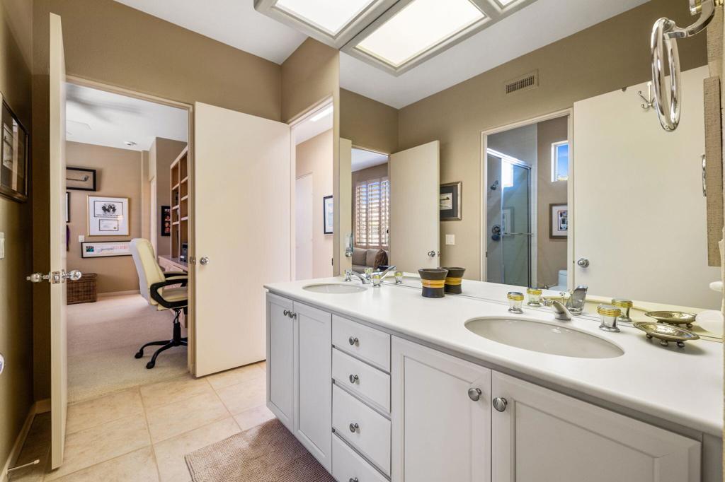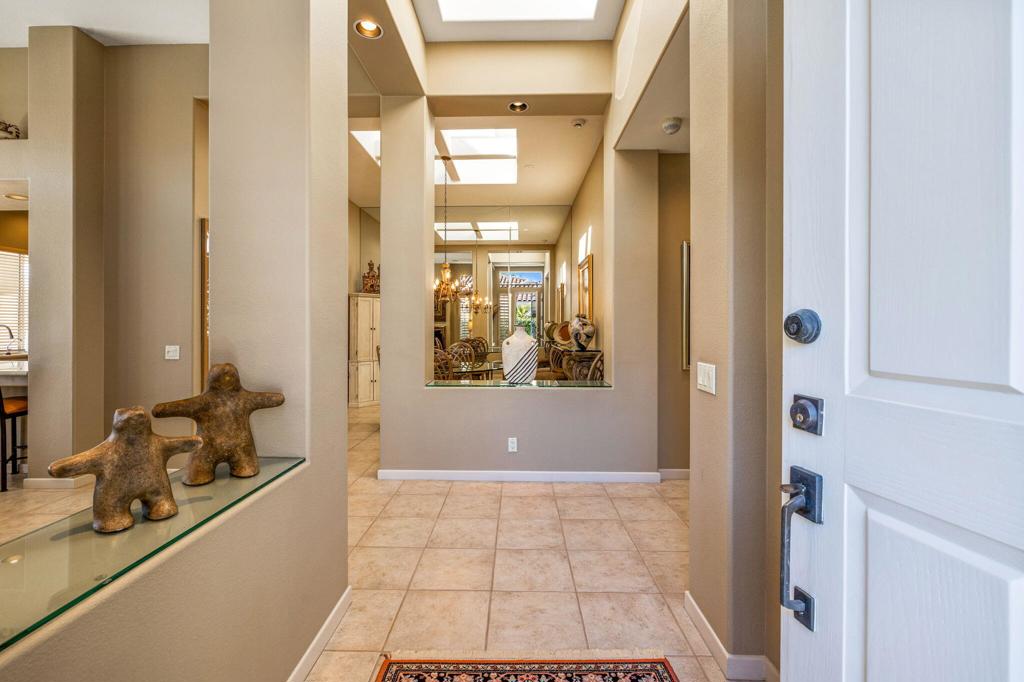 Enjoy immediate access to golf membership with this meticulously maintained Acacia 3 floor plan. This beautiful home welcomes you with a large, inviting courtyard and an expansive back patio offering sweeping southern views of the mountains and the 3rd hole of The Grove course. Step inside to find tile flooring throughout the main living areas, providing an elegant and low-maintenance foundation, while the bedrooms feature upgraded carpet for added comfort. The primary suite offers a private retreat with its own newly paved courtyard--a perfect spot to savor your morning coffee or unwind in the evening. Plus, the home is equipped with solar panels that will be fully paid off at closing, delivering energy efficiency without additional costs. Two additional guest bedrooms, one currently serving as a well-appointed office, provide flexible space for family, guests, or a personal workspace. The home also boasts a recently updated HVAC system, ensuring year-round comfort. With all these features and no wait for a golf membership, this property is a rare find. Come see why it won't stay on the market for long!