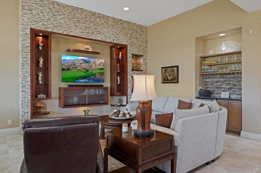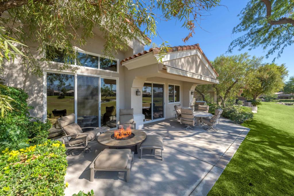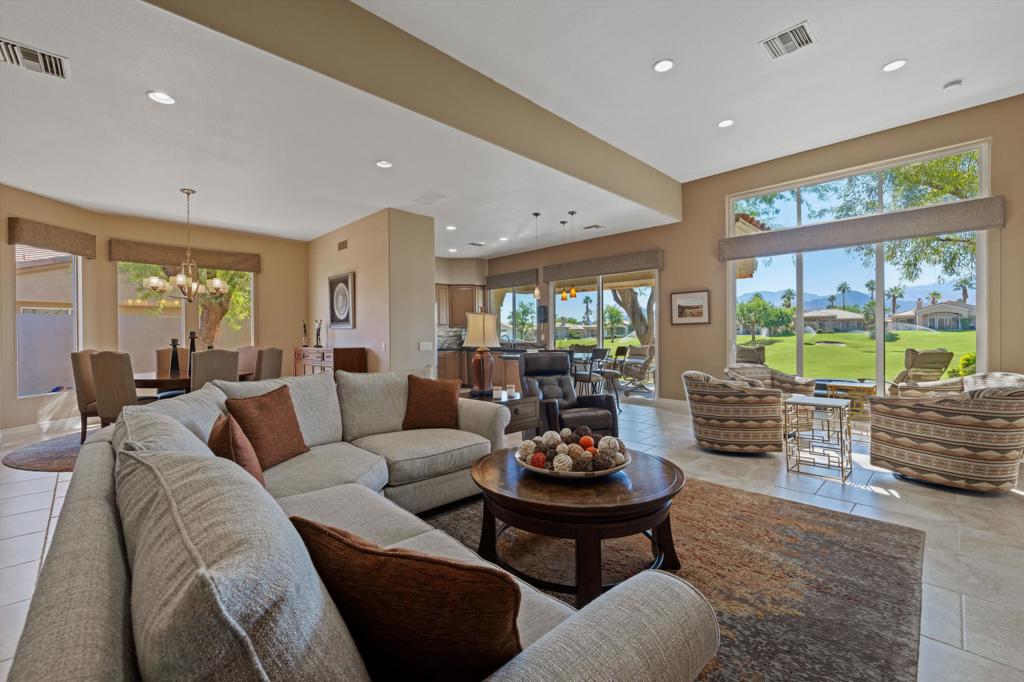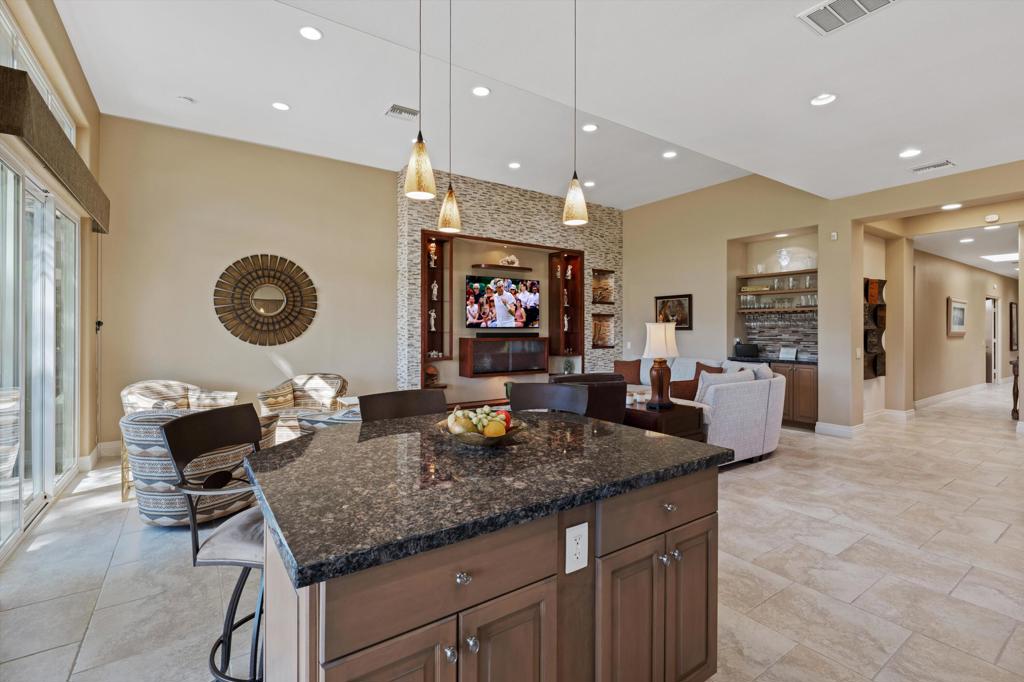 You've hit the TRIFECTA with this one-of-a kind Acacia 4 floor plan that has been gutted and renovated from top to bottom. This south-facing Indian Ridge beauty has undergone major structural changes with over 200sf added to the footprint and every room of the home tastefully remodeled. Not only have walls been removed to create an open concept floor plan, but the living room has been extended and an office/den was added onto the primary bedroom creating a warm inviting home. No stone was left unturned with flooring, all bathrooms re-tiled, kitchen island added with granite throughout, sliders in kitchen and living room, stainless appliances, window coverings and custom built-in entertainment center with stacked stone and shelving. This home is being sold furnished per inventory. Start living the good life today - schedule your private showing of this special property today! Club membership available.