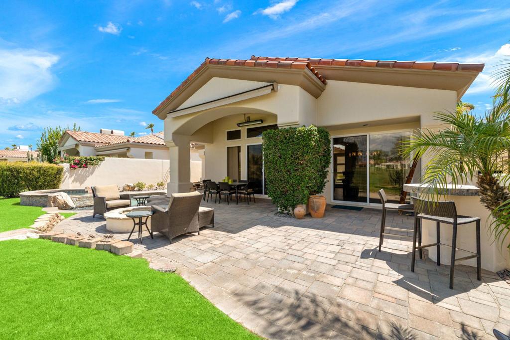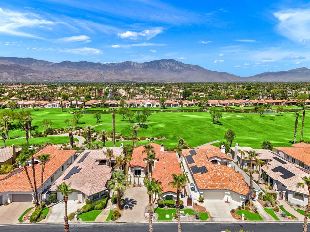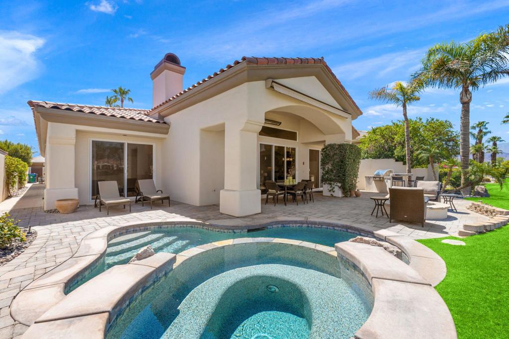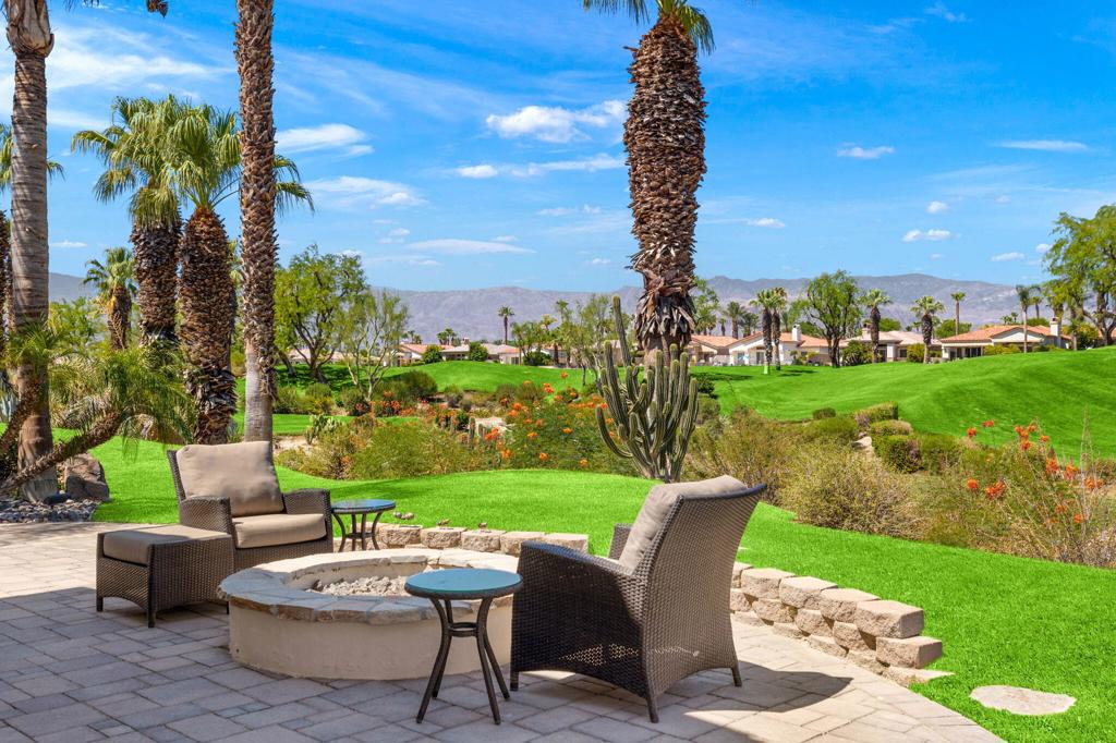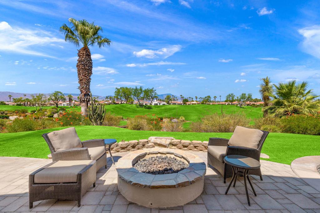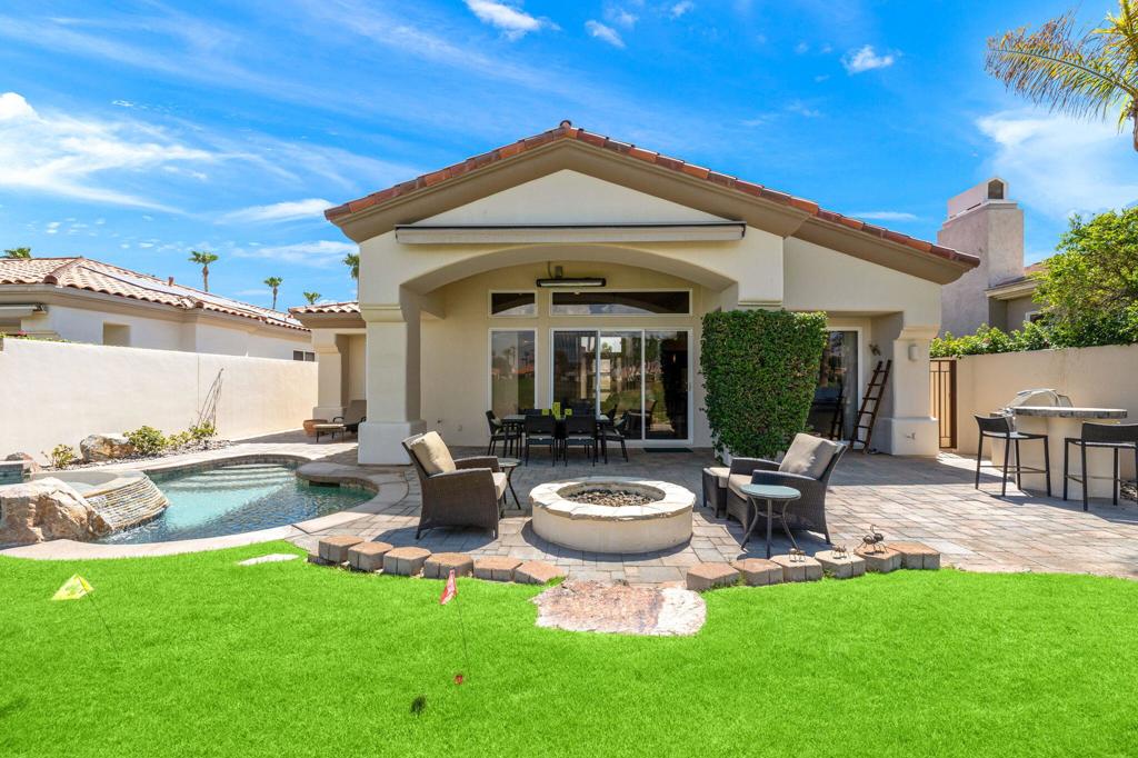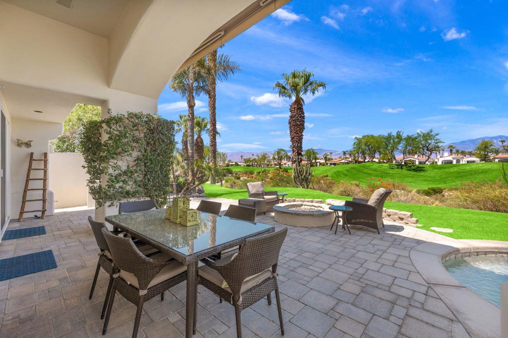 Welcome to this spectacularly remodeled Bougainvillea 1 at Indian Ridge Country Club, a showcase property offering 2,430 sq. ft. with 3 bedrooms and 3.5 bathrooms. Every detail of this home has been thoughtfully updated, from the paved driveway and desert landscaping to the fresh interior finishes, creating a residence that is truly move-in ready. Set against a backdrop of double fairway and San Jacinto Mountain views, this home is a desert retreat like no other. Enjoy unforgettable sunsets from your private patio featuring a dipping pool, spa, built-in BBQ, and fire pit, perfect for relaxing evenings or entertaining guests. Inside, modern elegance shines with quartz countertops, newly tiled showers, new flooring, and a serene primary suite designed for ultimate comfort. Additional modern upgrades include newer A/C units, Nest thermostats, remote door entry, and an air-conditioned epoxy-floored garage. Offered fully furnished per inventory, this home is the complete package. Located along the 5th and 6th holes of the Arroyo Course, this property pairs luxury living with resort-style amenities. Indian Ridge Country Club offers two Arnold Palmer signature golf courses, a state-of-the-art fitness center, tennis and pickleball courts, a full-service spa, and multiple dining venues. Don't miss your opportunity to own a slice of paradise in Palm Desert's premier country club community.