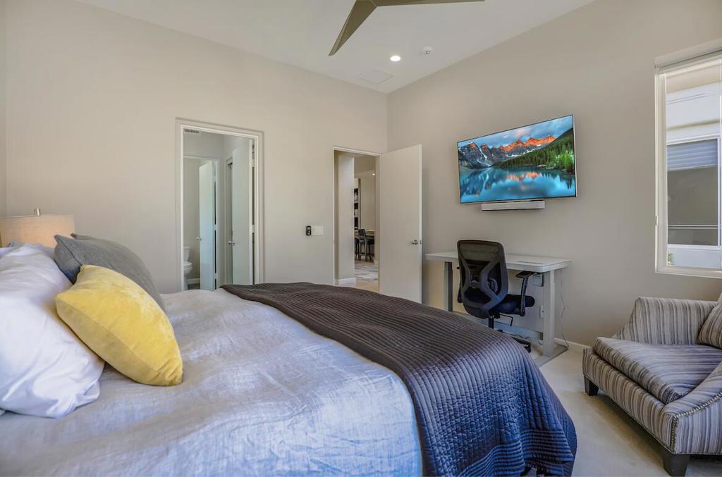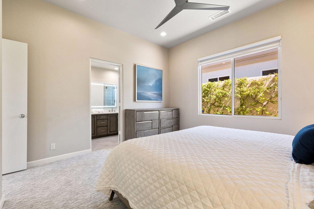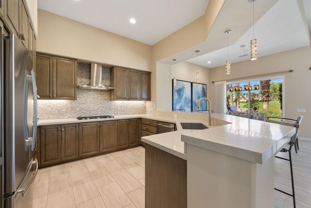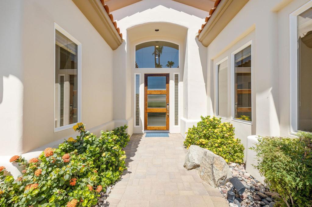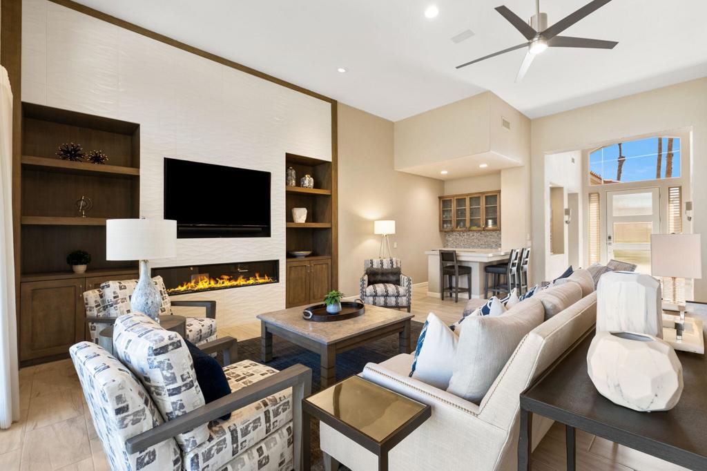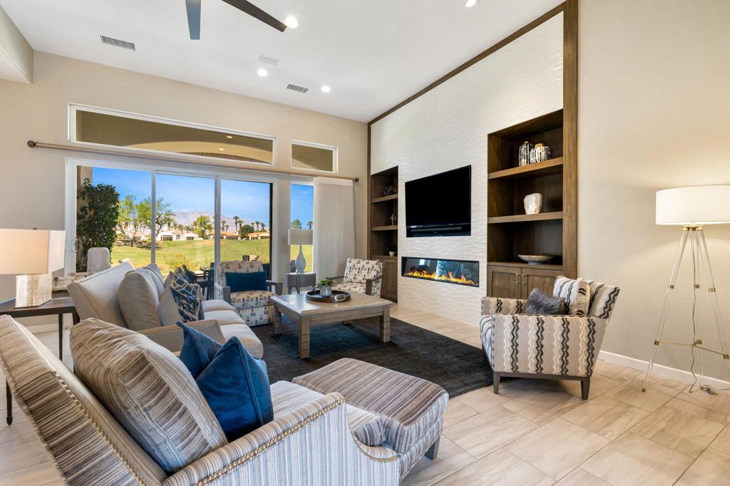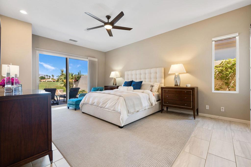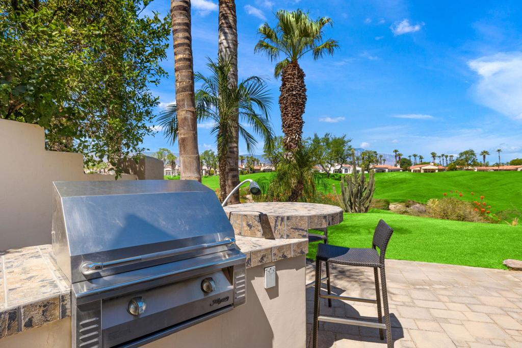 Welcome to this spectacularly remodeled Bougainvillea 1 at Indian Ridge Country Club, a showcase property offering 2,430 sq. ft. with 3 bedrooms and 3.5 bathrooms. Every detail of this home has been thoughtfully updated, from the paved driveway and desert landscaping to the fresh interior finishes, creating a residence that is truly move-in ready. Set against a backdrop of double fairway and San Jacinto Mountain views, this home is a desert retreat like no other. Enjoy unforgettable sunsets from your private patio featuring a dipping pool, spa, built-in BBQ, and fire pit, perfect for relaxing evenings or entertaining guests. Inside, modern elegance shines with quartz countertops, newly tiled showers, new flooring, and a serene primary suite designed for ultimate comfort. Additional modern upgrades include newer A/C units, Nest thermostats, remote door entry, and an air-conditioned epoxy-floored garage. Offered fully furnished per inventory, this home is the complete package. Located along the 5th and 6th holes of the Arroyo Course, this property pairs luxury living with resort-style amenities. Indian Ridge Country Club offers two Arnold Palmer signature golf courses, a state-of-the-art fitness center, tennis and pickleball courts, a full-service spa, and multiple dining venues. Don't miss your opportunity to own a slice of paradise in Palm Desert's premier country club community.