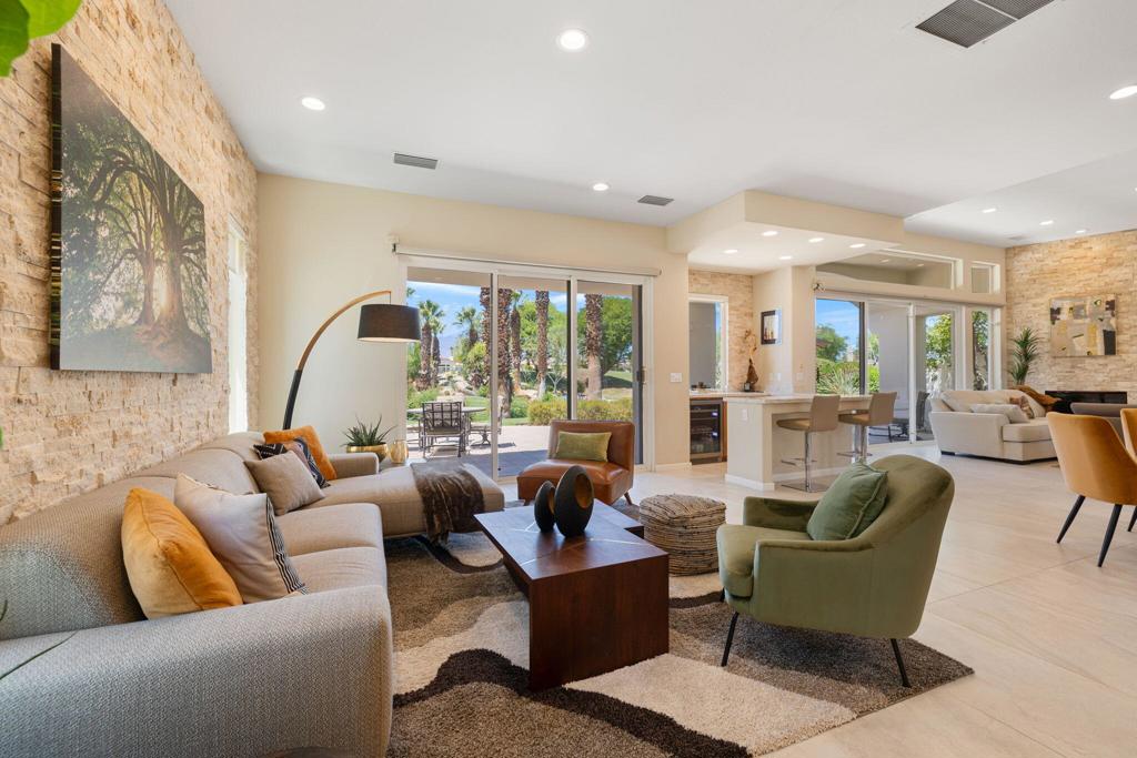 Sold before on the MLS! The popular Bougainvillea 2 floor plan at 2742 SF with 3 bedroom, 3.5 bathroom is in the perfect location. The lush park-like setting overlooks the 5th tee box on the Arroyo course and the sits amongst tall beautiful palm trees providing plenty of shade. With a gorgeous west facing view looking out at the San Jacinto and Santa Rosa mountain ranges, Contemporary design and updated throughout. Sold furnished with a Club membership.