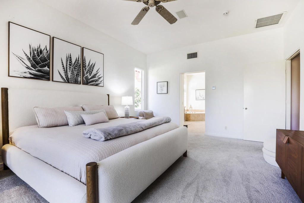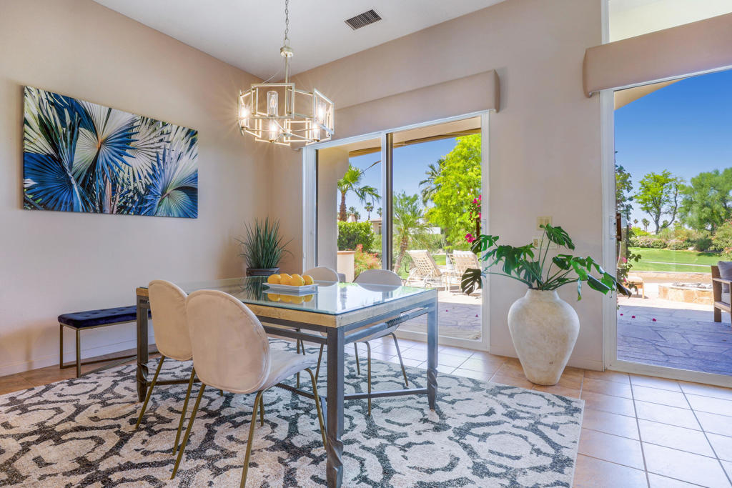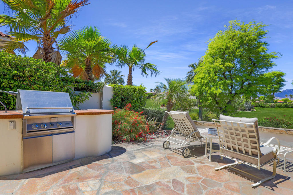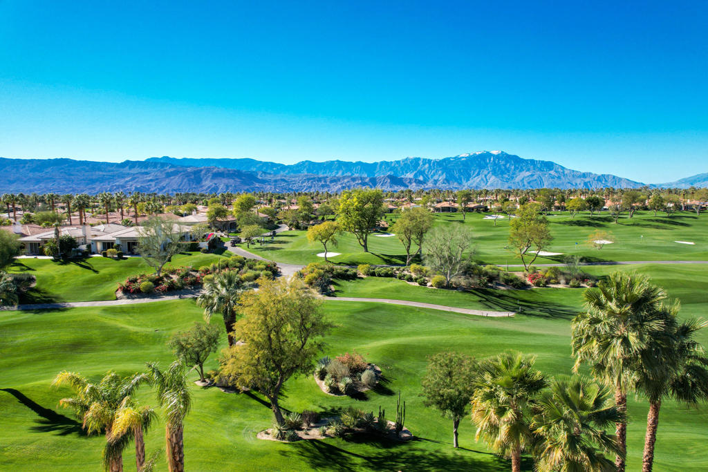 Available October 2025 at $3,500 and available November and December 2025 at $7,500/month. Not available for 2026 season. Spa Home with panoramic mountain & golf course views, elevated lot overlooking #18 Arroyo. Extended stone patio features private spa, fire pit, awnings and built-in BBQ. This Bougainvillea 1 floor plan is very popular due to open floor plan featuring living, dining, wet bar and kitchen all-encompassing the patio w/those great views! The private master suite opens right out on to the patio where you can take in the gorgeous views and comfort of your own spa. Master has walk-in closet and en suite bath with dual vanities, bathtub and separate shower. Bougainvillea 1 model has 2 en suite guest rooms - 1 in the front of the home and 1 on the opposite side of the home. Gorgeous pavers line your driveway and courtyard walkway, with a beautiful glass front door at your entry. Indian Ridge Country Club is one of the desert's premier private country club communities with a great central location in the Palm Springs area, close to Interstate 10, El Paseo and the airport. Use of owners GOLF membership available for additional cost and 3 month minimum.