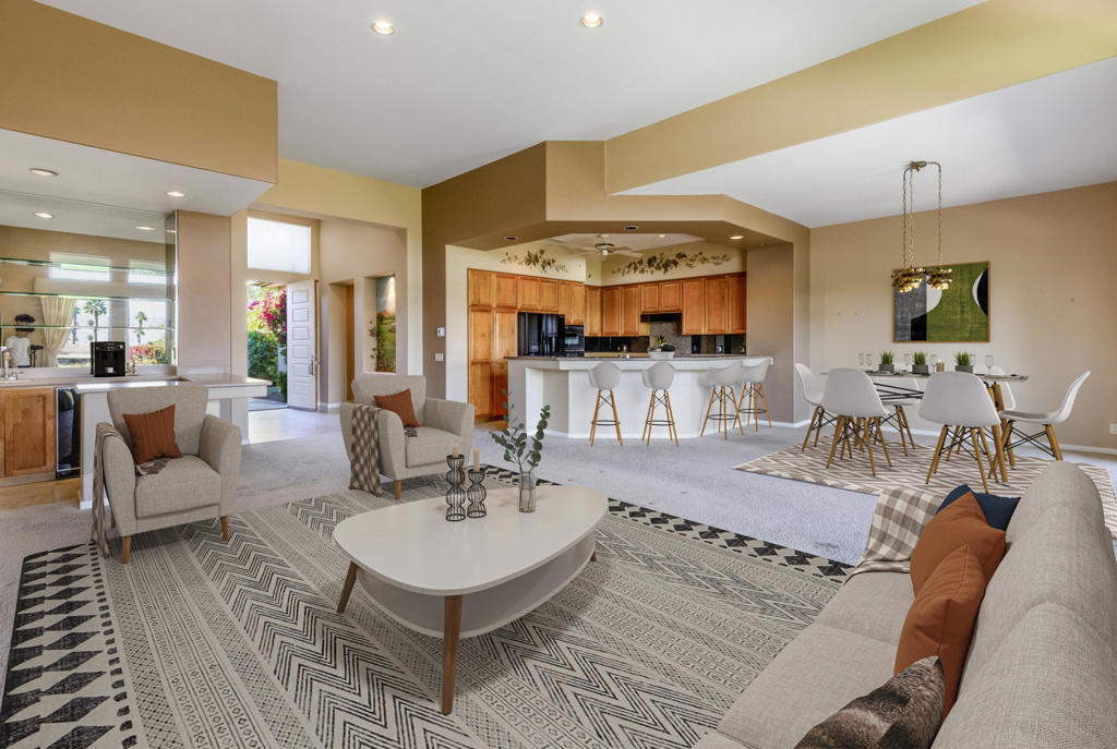 Attention Designers and Visionaries! Discover the potential in this highly sought-after Bougainvillea 1 floor plan, offering 2,430 square feet, 3 bedrooms, and 3.5 bathrooms. Located on a desirable interior street, this home is a blank canvas, ready for your creative touch! The back patio can be expanded and presents endless possibilities, whether you want to add a private pool and spa for year-round enjoyment, or custom outdoor living spaces. Positioned on a double fairway, the home boasts unobstructed views of the 4th and 6th hole of the Arroyo course, with a stunning golf course and mountains backdrop. Home is registered with a Club Membership. Indian Ridge Country Club is one of the desert's premier private country club communities with a great central location in the Palm Springs area, close to Interstate 10, and the airport. It is only a short distance from great shopping on El Paseo and many outstanding restaurants and entertainment throughout the Valley cities from La Quinta to Palm Springs. All of Indian Ridge is nestled among beautiful palm trees and perfectly manicured grounds. Within the community you'll also find Rover's Ridge, a dog park exclusive to Indian Ridge homeowners. Don't miss this opportunity to create a space that is uniquely yours. Call today to schedule your private showing!