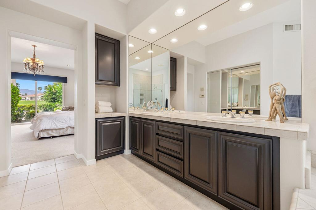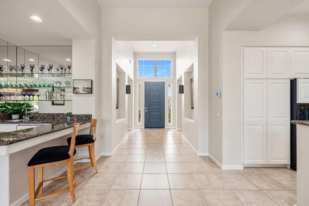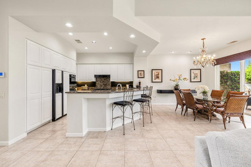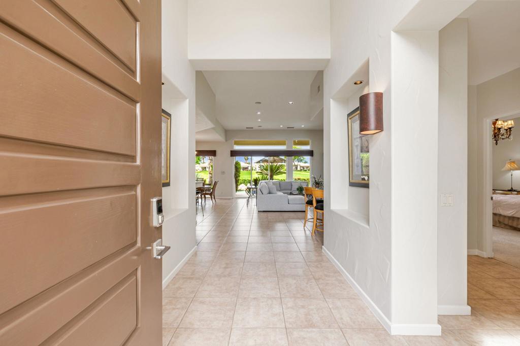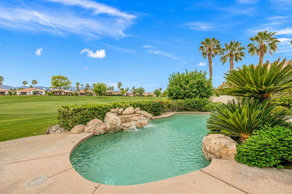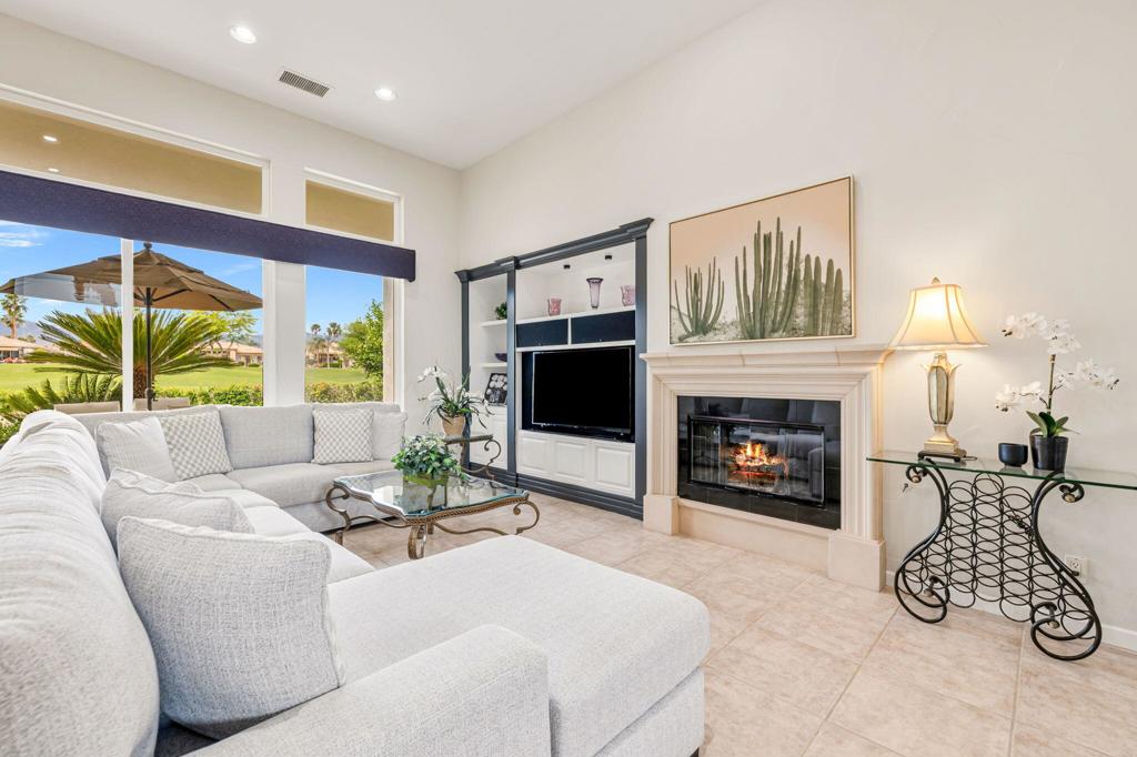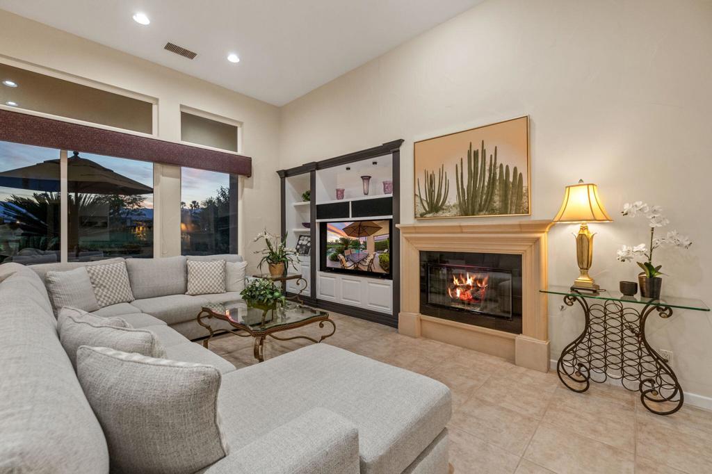 Welcome to one of the most desirable opportunities in Indian Ridge. This highly sought-after west-facing Bougainvillea 1 floor plan is perfectly positioned on the 14th fairway of the Arroyo Course, capturing breathtaking sunsets and delivering the ultimate desert lifestyle. Designed for effortless indoor-outdoor living, this home offers your own private retreat, complete with a heated pool and spa with multi-color lighting, built-in BBQ, and even a Tesla charger. Whether you're entertaining or unwinding under the stars, every detail has been thoughtfully curated. Spanning 2,430 square feet, the home features three spacious en-suite bedrooms and 3.5 baths, offering ideal privacy with separated guest suites. The generous primary suite opens directly to the spa, perfect for a quiet evening soak after a day on the course. Offered furnished and move-in ready, the home has been freshly painted throughout including cabinetry, and features granite countertops in both the kitchen and bar area. Lush citrus trees add charm and character to your outdoor space. And for those looking at investment potential, this property comes with a built-in returning tenant, generating approximately $40,000 annually. This is more than a home, it's a lifestyle, an income opportunity, and a place to truly enjoy everything desert living has to offer.