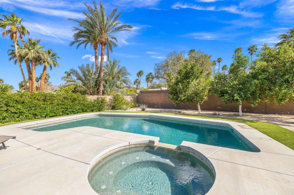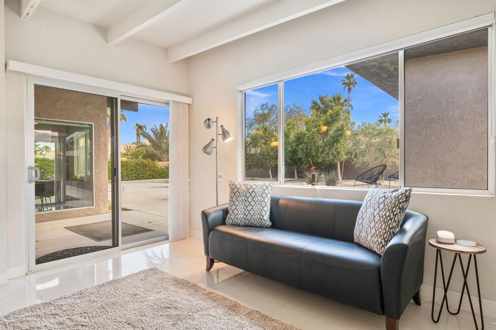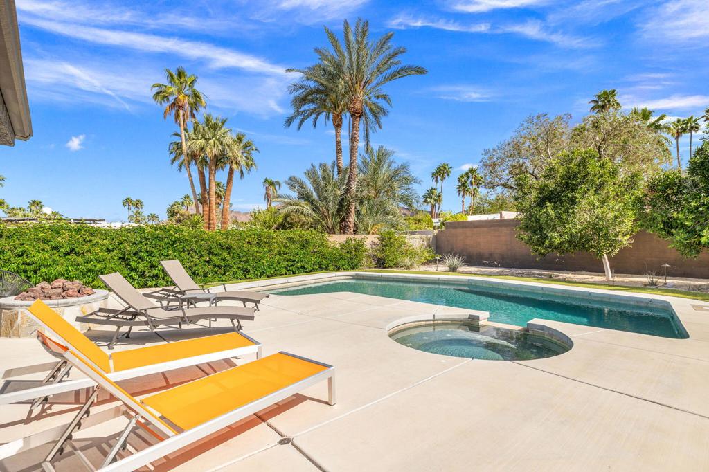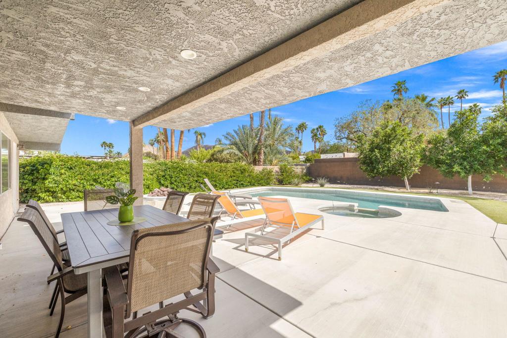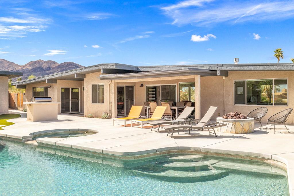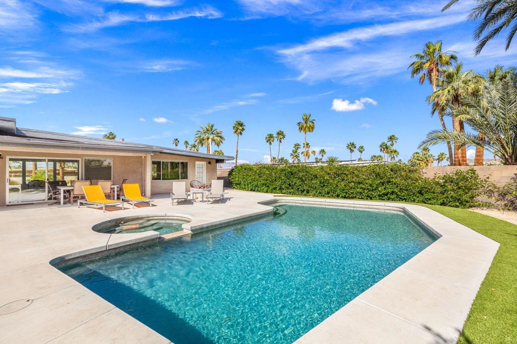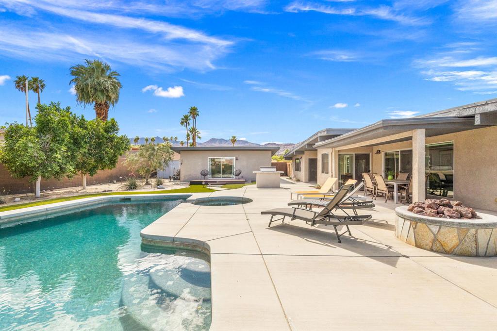 Available May-Sept 2026 at $4500/month, Oct-Nov 2026 at $6500/month, March-April 2027 at $9000/month. Now available for lease in the coveted Silver Spur Ranch neighborhood of South Palm Desert - where comfort, style, and location come together effortlessly. Tucked away at the end of a peaceful cul-de-sac and bordering Ironwood Park, this South-facing home offers a rare sense of privacy with beautiful open surroundings. The exterior sets a warm, inviting tone with natural redwood accents, a circular driveway, and updated Milgard windows and doors, all framed by mature palms and desert landscaping. Inside, the home has been thoughtfully refreshed with a clean, contemporary aesthetic that complements its Mid-Century roots. The primary suite features a king bed and the guest bedroom doubles as a flexible office space and includes a brand-new queen-size sofa bed perfect for visitors or working from home. A detached casita provides additional space with king size bed and ensuite bath ideal for visiting guests, extended family, or a quiet retreat. The backyard is designed for both relaxation and entertaining, featuring a saltwater pool and spa, built-in BBQ, and fire pit all set against a serene, private backdrop. The kitchen blends functionality and style with an island bar, breakfast nook, Thermador range, and Maytag refrigerator, while a solar system helps keep energy use efficient. Silver Spur Ranch is known for its character and charm, with a rich architectural history and stunning mountain views. This prime South Palm Desert location places you just minutes from El Paseo's shops and restaurants, The Living Desert, top golf courses, and nearby hiking trails. Available for lease enjoy a beautifully furnished home in one of the desert's most desirable neighborhoods.