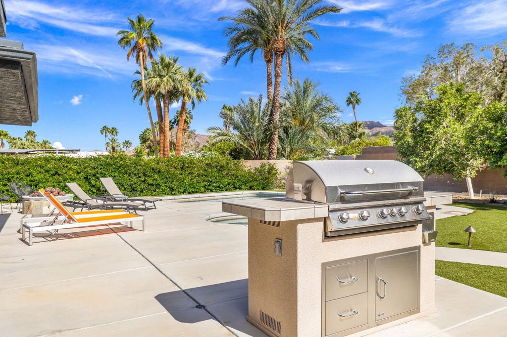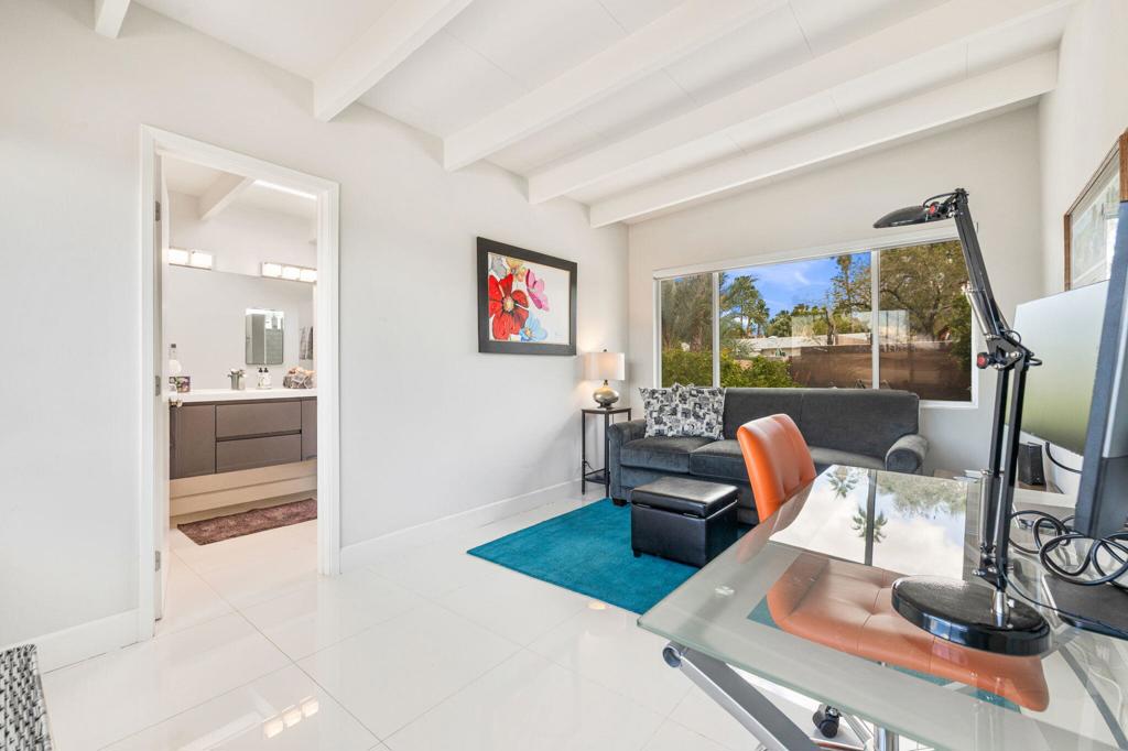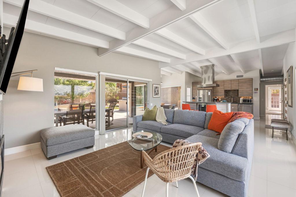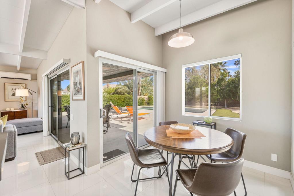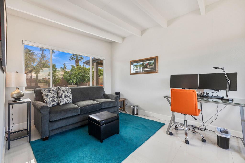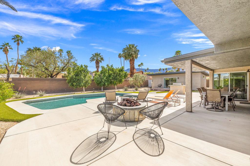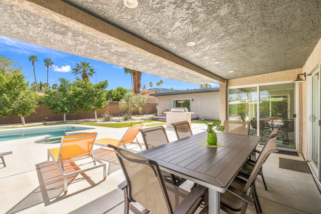 Available May-Sept 2026 at $4500/month, Oct-Nov 2026 at $6500/month, March-April 2027 at $9000/month. Now available for lease in the coveted Silver Spur Ranch neighborhood of South Palm Desert - where comfort, style, and location come together effortlessly. Tucked away at the end of a peaceful cul-de-sac and bordering Ironwood Park, this South-facing home offers a rare sense of privacy with beautiful open surroundings. The exterior sets a warm, inviting tone with natural redwood accents, a circular driveway, and updated Milgard windows and doors, all framed by mature palms and desert landscaping. Inside, the home has been thoughtfully refreshed with a clean, contemporary aesthetic that complements its Mid-Century roots. The primary suite features a king bed and the guest bedroom doubles as a flexible office space and includes a brand-new queen-size sofa bed perfect for visitors or working from home. A detached casita provides additional space with king size bed and ensuite bath ideal for visiting guests, extended family, or a quiet retreat. The backyard is designed for both relaxation and entertaining, featuring a saltwater pool and spa, built-in BBQ, and fire pit all set against a serene, private backdrop. The kitchen blends functionality and style with an island bar, breakfast nook, Thermador range, and Maytag refrigerator, while a solar system helps keep energy use efficient. Silver Spur Ranch is known for its character and charm, with a rich architectural history and stunning mountain views. This prime South Palm Desert location places you just minutes from El Paseo's shops and restaurants, The Living Desert, top golf courses, and nearby hiking trails. Available for lease enjoy a beautifully furnished home in one of the desert's most desirable neighborhoods.