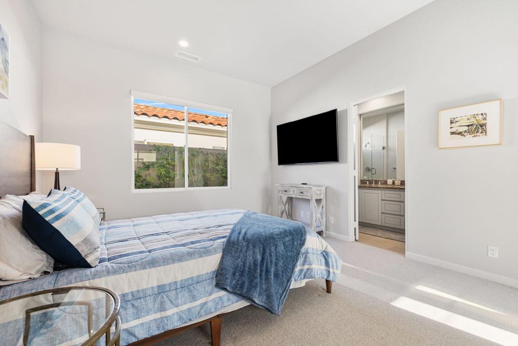 Beautifully remodeled Bougainvillea 2 with unforgettable west-facing water, fairway and mountain views! This 3BD/3.5BA, 2,742 sq. ft. home lives like a modern desert retreat - featuring sleek 24x24 Italian quartz tile, wool Berber carpet, fresh paint inside and out, and designer furnishings throughout. The living space feels bright and open with the removal of pony walls and columns, creating a seamless flow between the kitchen, dining, and great room areas. Enjoy a reimagined great room with a new gas fireplace insert, custom stone surround, recessed TV walls, and all-new LED lighting. The kitchen shines with freshly painted cabinetry and new appliances including refrigerator, dishwasher, and wine fridge. Smart-home upgrades include Nest thermostats, Lockly camera door lock, smart TVs, and new blinds with blackout in the primary. Outdoors, relax under the 17-ft remote-control awning, entertain with natural gas hookups for fire table & BBQ, and enjoy refreshed landscaping and gorgeous golf course views. Turnkey, stylish, and sitting on Arroyo #16 - this home delivers the ultimate Indian Ridge lifestyle. Sold furnished. Club membership available.