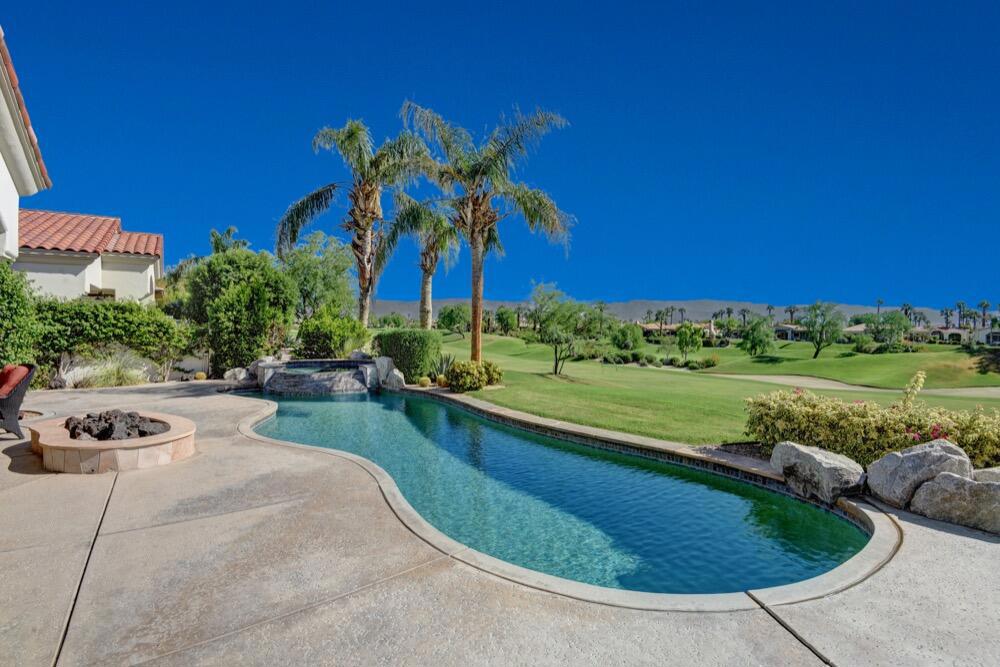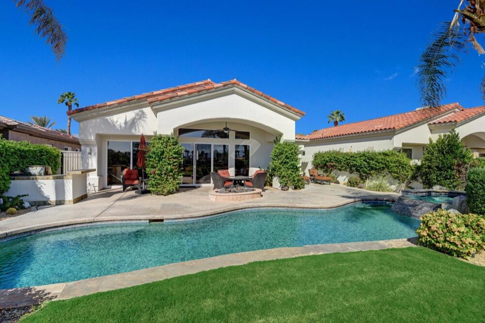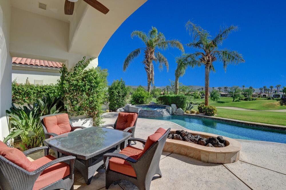 Seasonal lease available November 2024 - March 2025! This fabulously updated Bougainvillea 1 floor plan is the perfect place to call home for next season. Highly upgraded floor plan complete with travertine flooring, granite counters and so much more! Private pool and spa, built-in BBQ and fire pit are sure to make your desert day and nights unforgettable. IndianRidge Club membership access available with membership approval. Utilize the Fitness Center with the latest strength and cardio equipment and the active schedule of classes, the full-service day spa, 3 restaurants with outstanding food, plus a never-ending social calendar. Indian Ridge Country Club is one of the desert's premier private country club communities with a great central location in the Palm Springs area, close to Interstate 10, El Paseo and the airport. Landlord pays monthly HOA dues includes cable/internet.