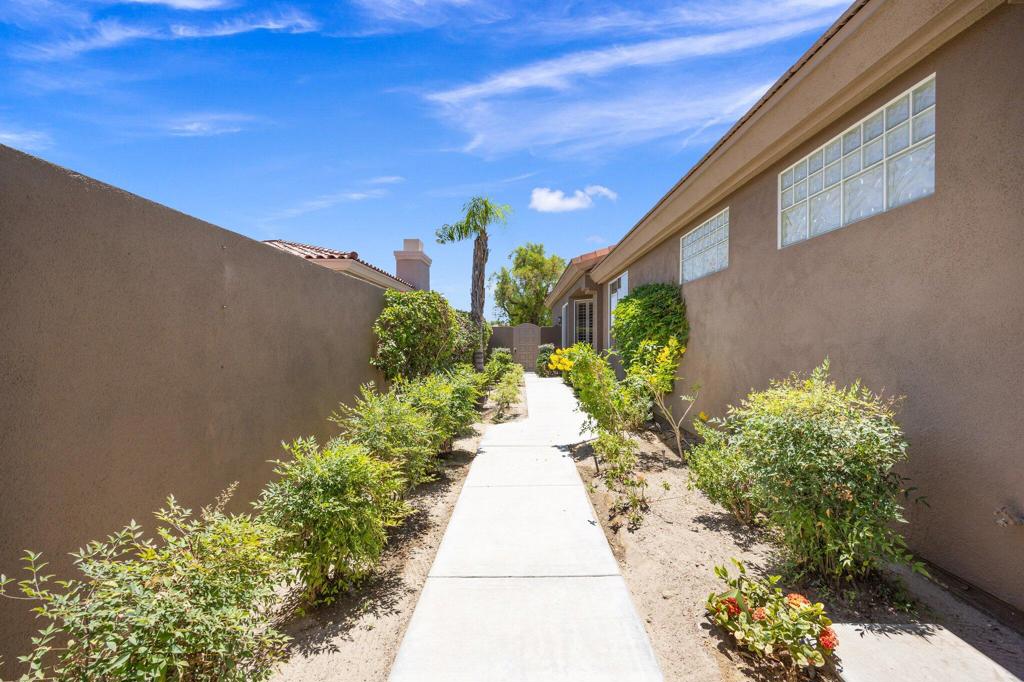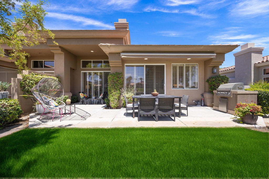 Available Now through April 2026! South-Facing Golf Course Living at Its Finest - Welcome to 763 Box Canyon Trail! Nestled in the heart of Indian Ridge Country Club, this beautifully maintained home offers the perfect blend of resort-style living, elegant comfort, and stunning golf course views. Positioned along the 7th hole of the Grove Course with a desirable south-facing orientation, this property captures abundant sunshine and showcases panoramic fairway vistas - plus a peaceful water view to the east that adds to the tranquil charm of the outdoor space. Step inside the Acacia 4 floor plan, offering 2,182 square feet of light and bright living space with 3 spacious bedrooms and 3.5 bathrooms. The interior has been thoughtfully updated with new plank tile flooring that flows seamlessly from room to room, creating a clean, contemporary feel. The open-concept design allows for easy entertaining, while large windows frame the natural beauty of the surroundings and flood the home with warm desert light. Outdoors, the back patio is an entertainer's dream, complete with a built-in BBQ, ideal for weekend grilling, hosting guests, or simply enjoying a quiet sunset with a cocktail in hand. Whether you're sipping morning coffee with views of the water or watching golfers navigate the fairway, every moment feels like a getaway. This home is furnished with Restoration Hardware plus the use of the owner's golf cart. Owner pays monthly HOA dues that include cable and internet.