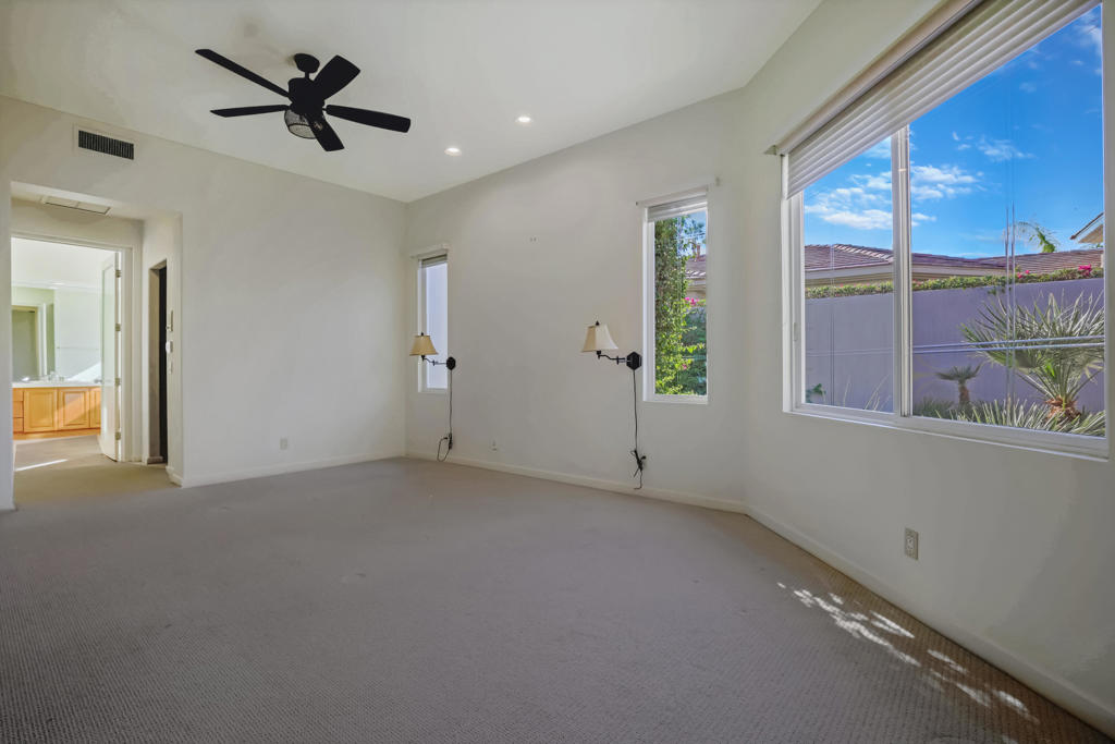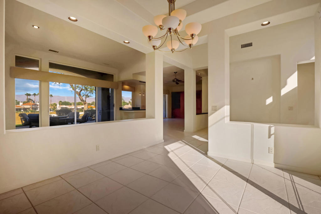 Lease available long term! This beautiful Bougainvillea 2 floorplan sits on an elevated lot with fantastic mountain and golf course views of the Grove Course, hole #3. The floorplan is open and spacious and includes living room, family room and separate dining room. The kitchen has been updated with stainless appliances and has plenty of storage space. The primary bedroom is the perfect retreat complete with walk in closet, separate shower and tub and double vanities. Two other spacious rooms are perfect for guests or an office, both with ensuite bathrooms. Landlord pays monthly HOA dues that include cable and internet. Come see for yourself why this is the perfect move in ready home!