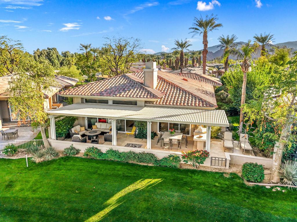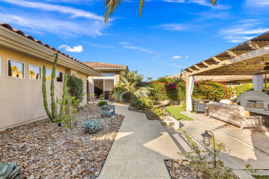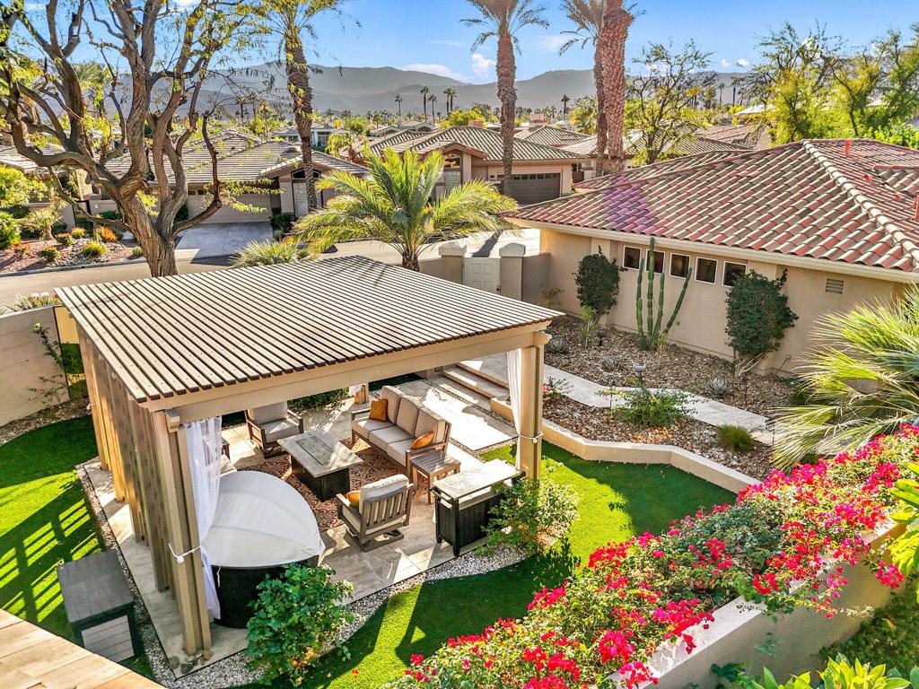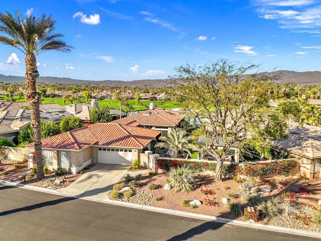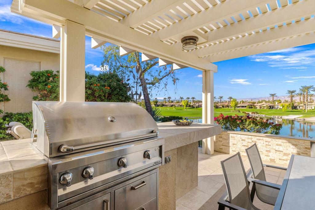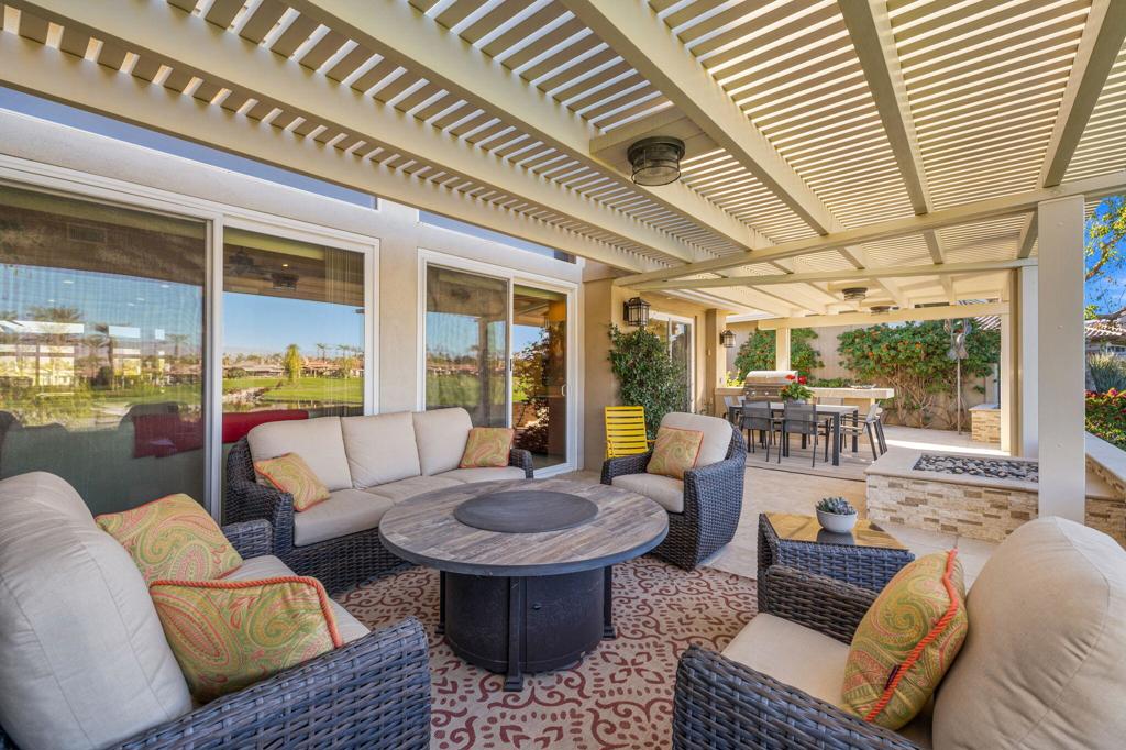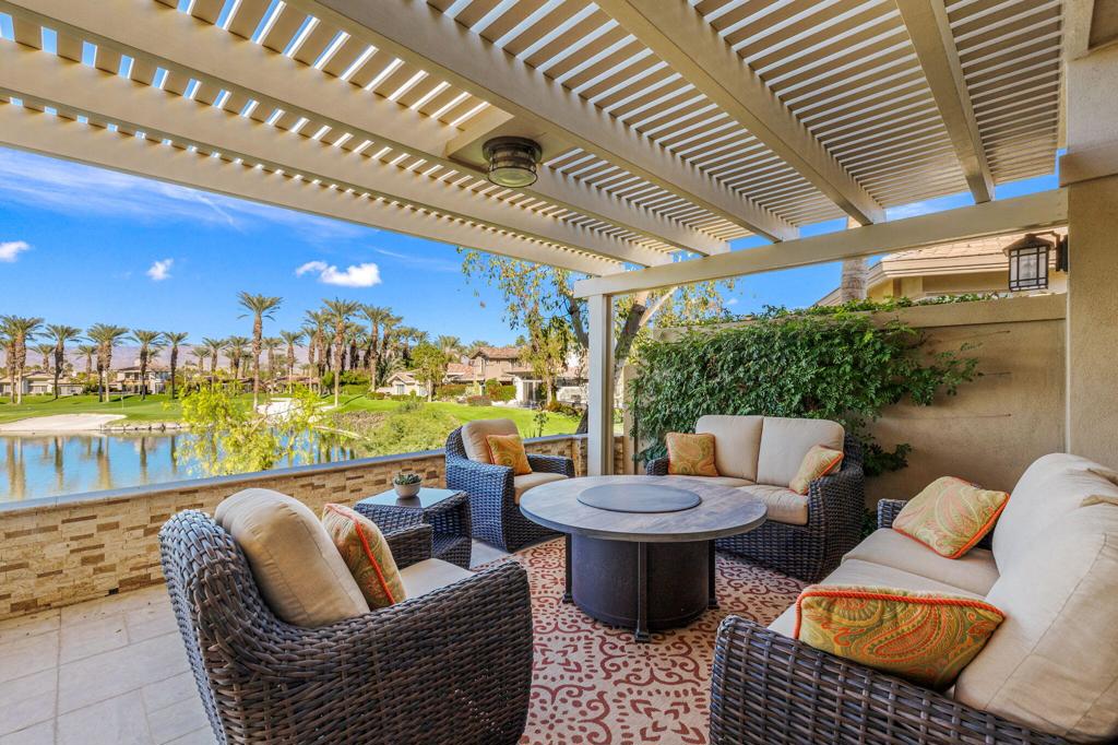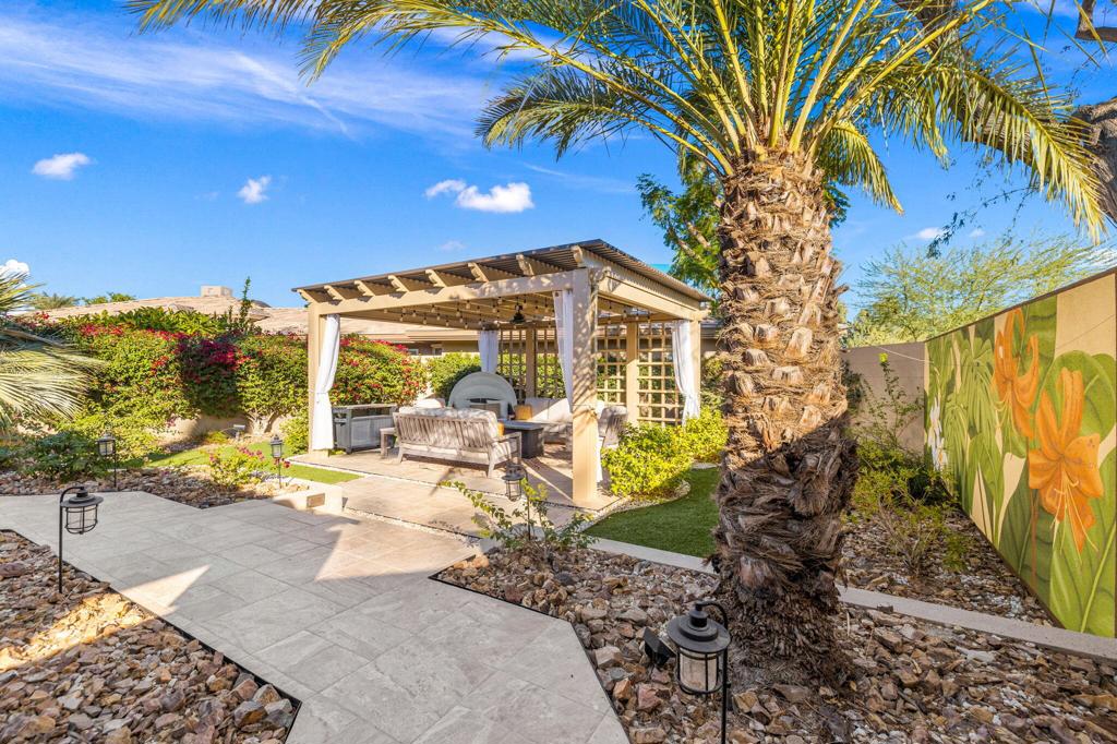 Step Into Your Dream Home at Indian Ridge! Prepare to be wowed by this stunning 3-bedroom, 3.5-bathroom Smoke Tree 3 floor plan, offering an expansive 3,102 square feet of luxurious living space. Perfectly perched on the 6th hole of the Grove course, this home is a true triple threat: breathtaking mountain and water views, exceptional amenities, and unrivaled charm. Outdoors, you'll find not one but two entertainment spaces: a back patio complete with a built-in BBQ, cozy fire pit, stylish stacked stone pony wall, and sleek slatted patio cover to accommodate patio lighting. The oversized courtyard is equally inviting, featuring a built-in pergola, ideal for soaking up the sun, sipping your favorite drink, or diving into a good book. If you've had dreams of a south facing pool, there is plenty of room to add a front-loaded pool. Step inside to discover a home that has been meticulously maintained, exuding pride of ownership at every turn. The light and bright kitchen sets the stage for culinary delights, while the remodeled primary bathroom invites you to unwind in a luxurious soaking tub, the perfect end to a day filled with the endless activities Indian Ridge has to offer. Bonus? This gem includes a club membership with no waitlist. Don't let this exceptional property pass you by. Call today for your private showing and make this beauty yours!