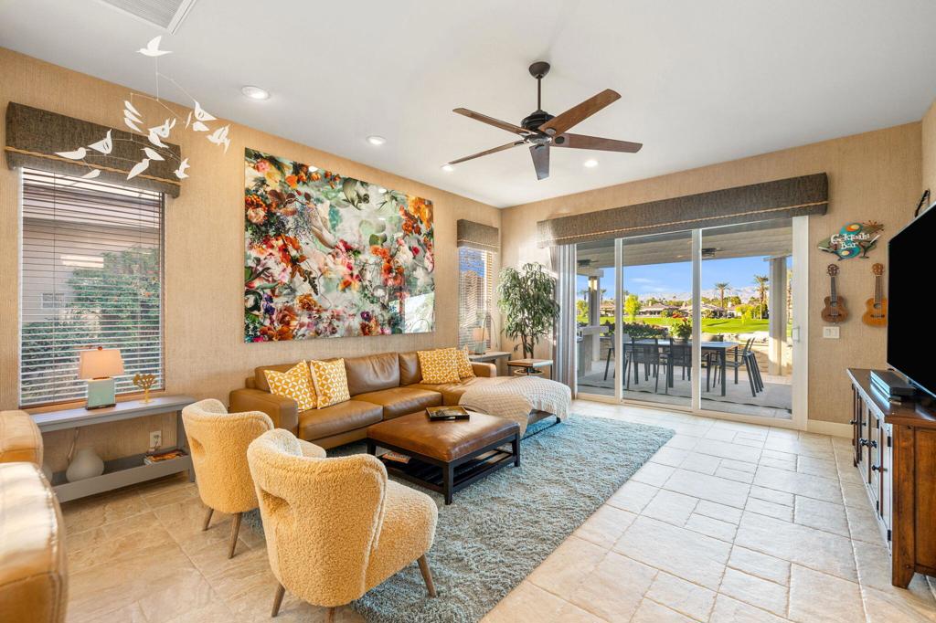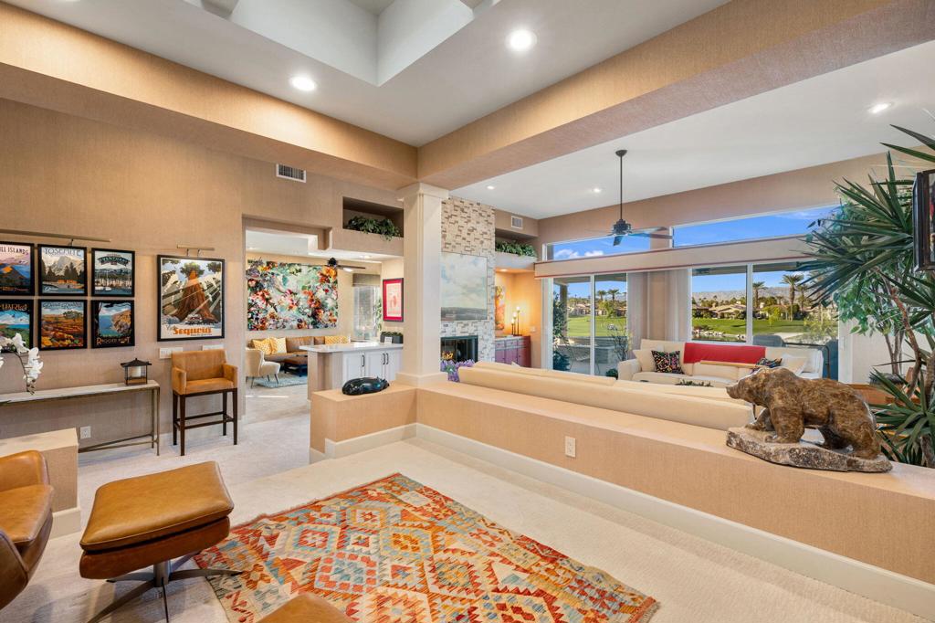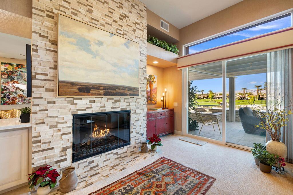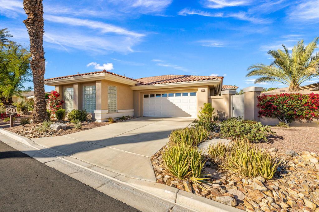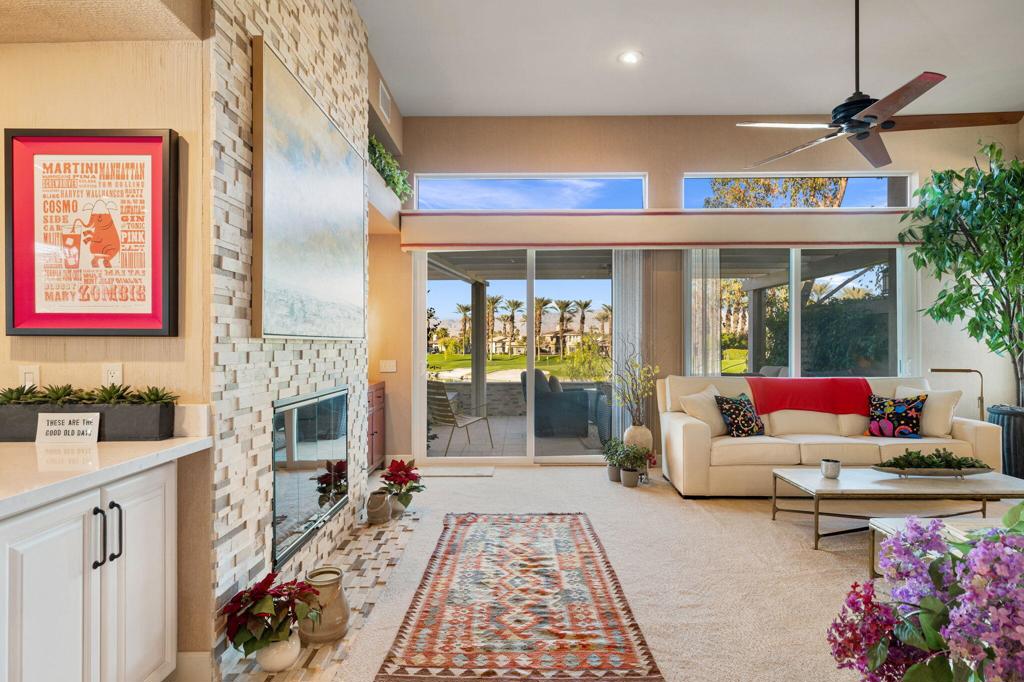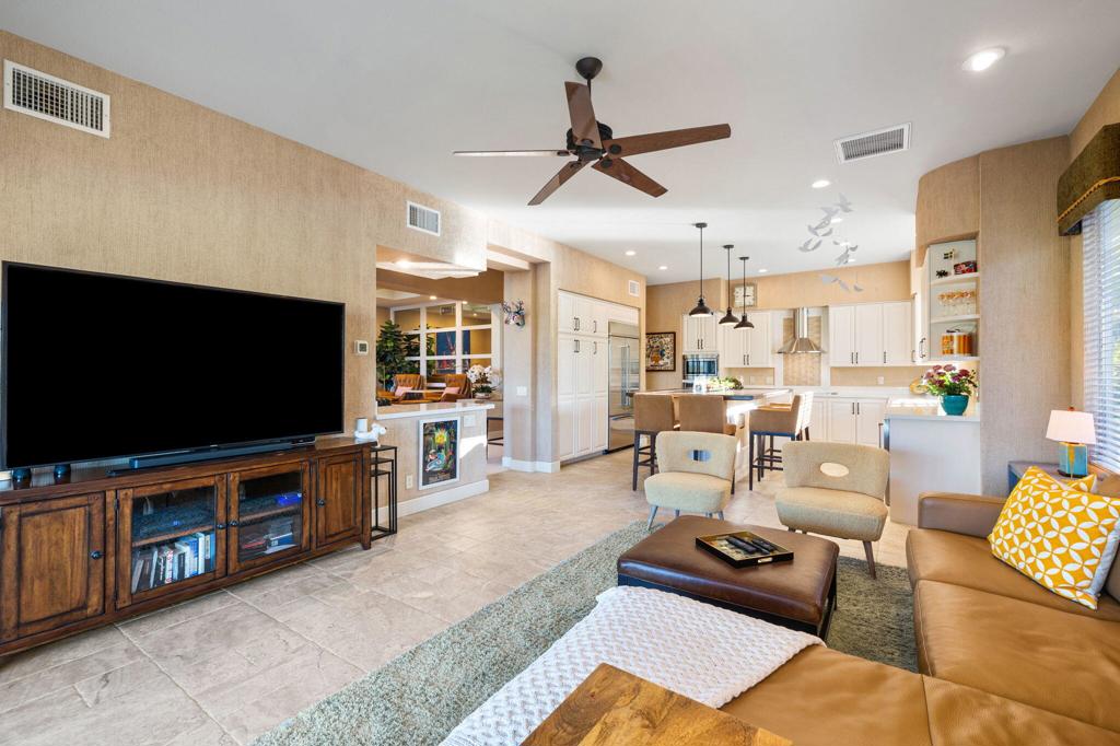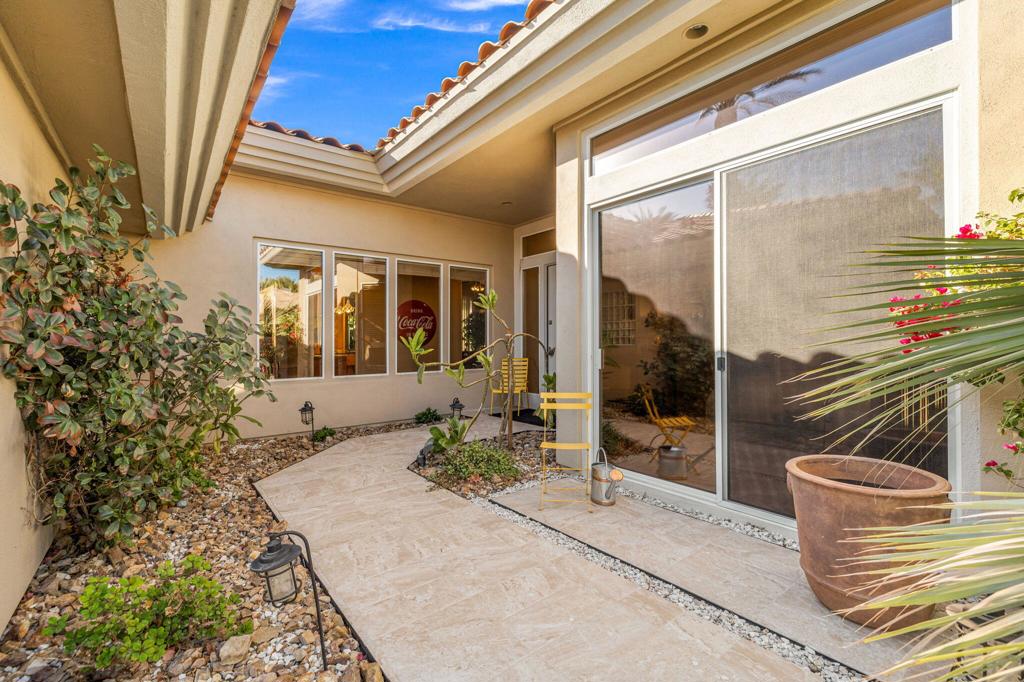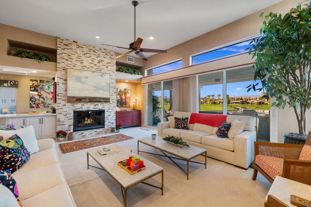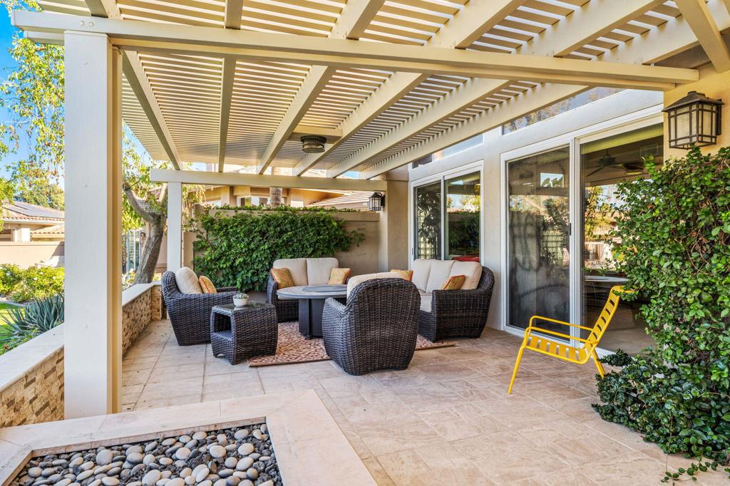 Step Into Your Dream Home at Indian Ridge! Prepare to be wowed by this stunning 3-bedroom, 3.5-bathroom Smoke Tree 3 floor plan, offering an expansive 3,102 square feet of luxurious living space. Perfectly perched on the 6th hole of the Grove course, this home is a true triple threat: breathtaking mountain and water views, exceptional amenities, and unrivaled charm. Outdoors, you'll find not one but two entertainment spaces: a back patio complete with a built-in BBQ, cozy fire pit, stylish stacked stone pony wall, and sleek slatted patio cover to accommodate patio lighting. The oversized courtyard is equally inviting, featuring a built-in pergola, ideal for soaking up the sun, sipping your favorite drink, or diving into a good book. If you've had dreams of a south facing pool, there is plenty of room to add a front-loaded pool. Step inside to discover a home that has been meticulously maintained, exuding pride of ownership at every turn. The light and bright kitchen sets the stage for culinary delights, while the remodeled primary bathroom invites you to unwind in a luxurious soaking tub, the perfect end to a day filled with the endless activities Indian Ridge has to offer. Bonus? This gem includes a club membership with no waitlist. Don't let this exceptional property pass you by. Call today for your private showing and make this beauty yours!