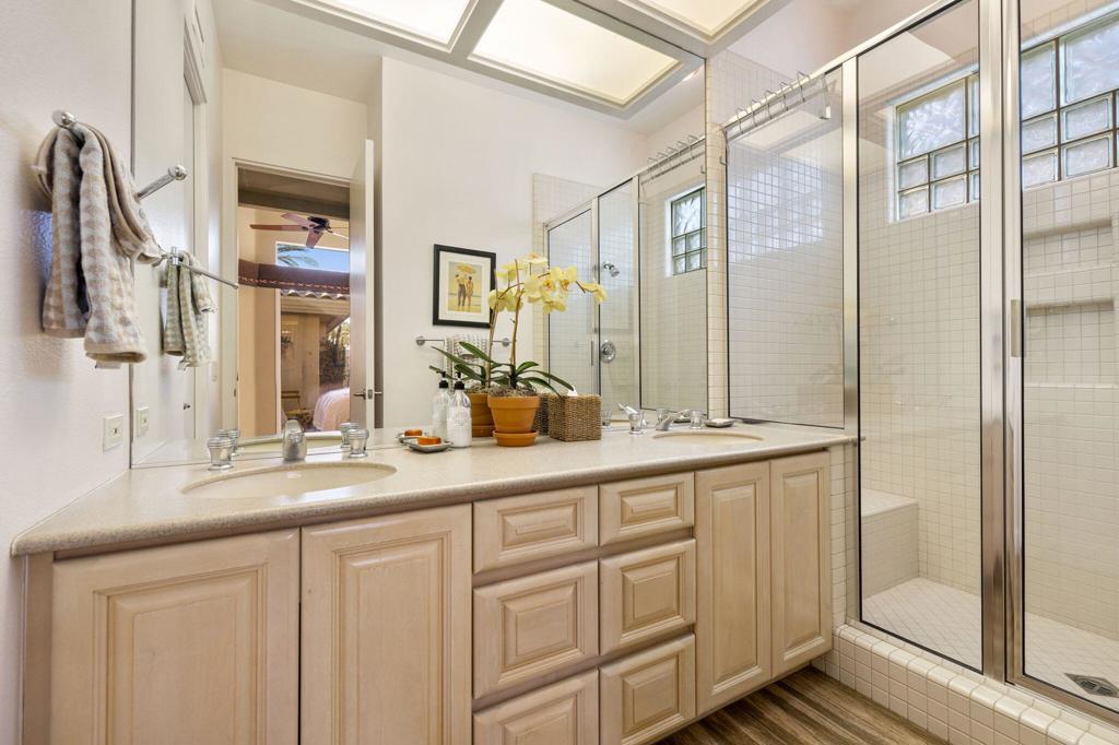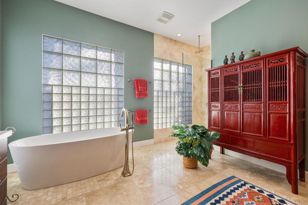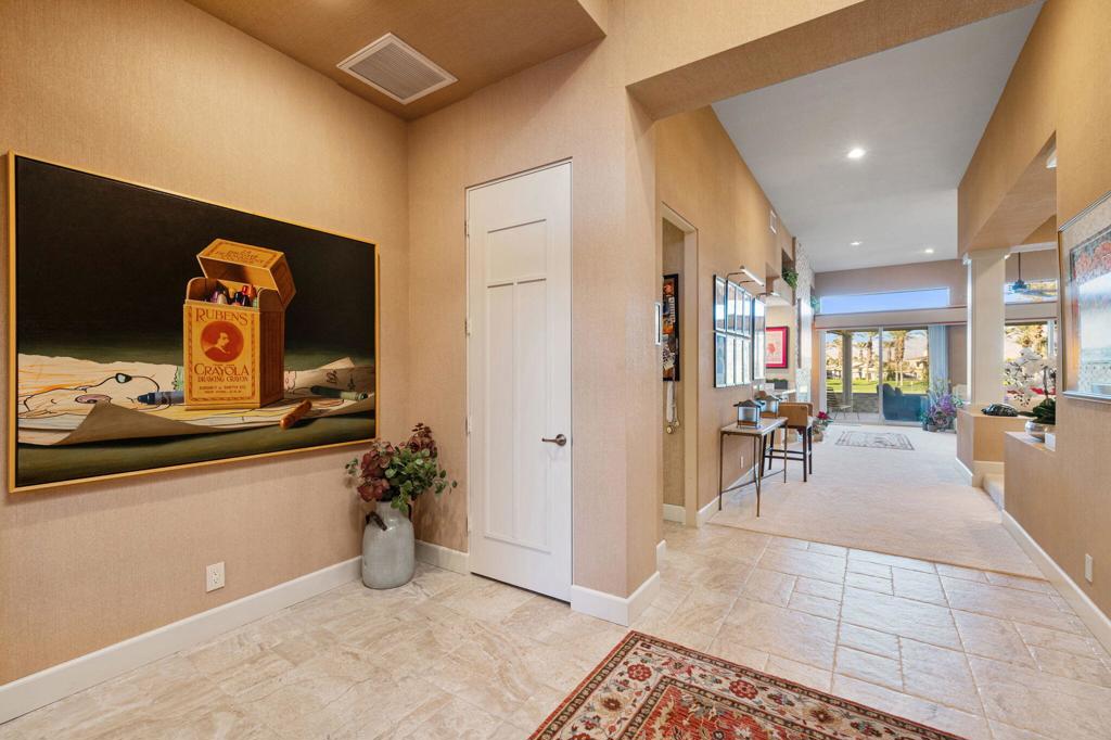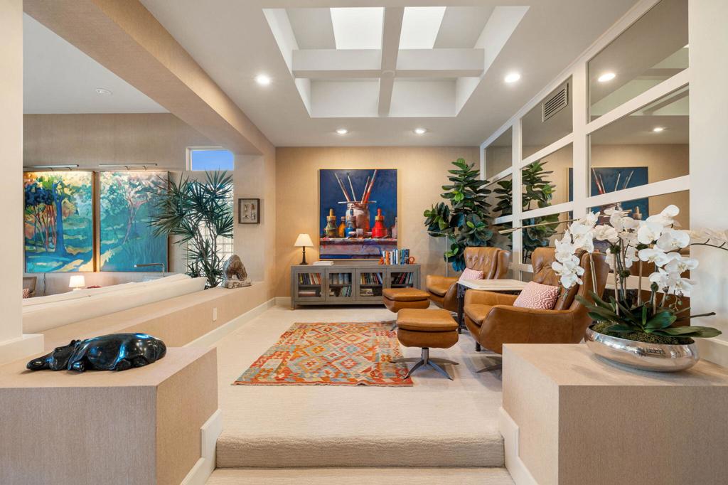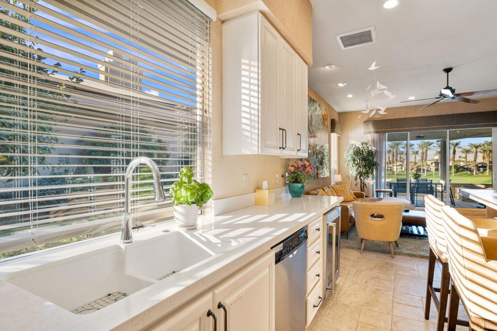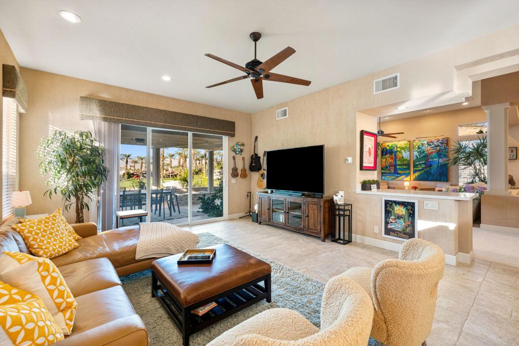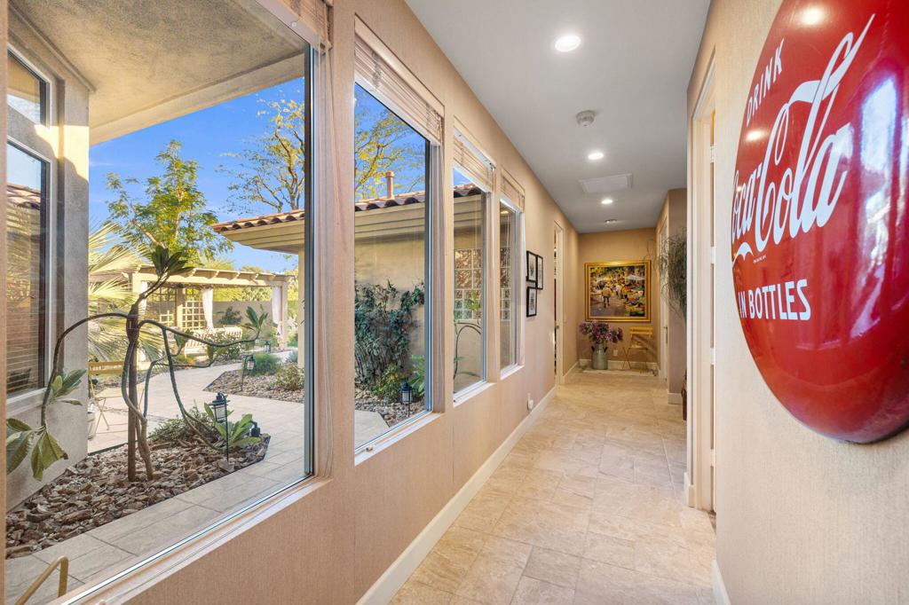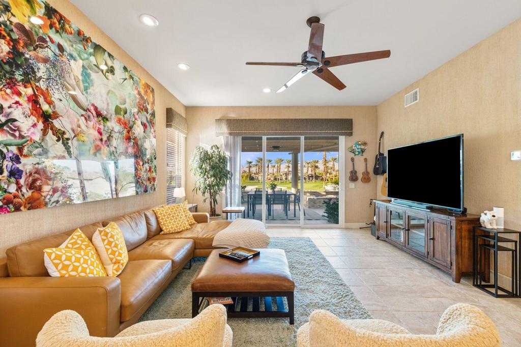 Step Into Your Dream Home at Indian Ridge! Prepare to be wowed by this stunning 3-bedroom, 3.5-bathroom Smoke Tree 3 floor plan, offering an expansive 3,102 square feet of luxurious living space. Perfectly perched on the 6th hole of the Grove course, this home is a true triple threat: breathtaking mountain and water views, exceptional amenities, and unrivaled charm. Outdoors, you'll find not one but two entertainment spaces: a back patio complete with a built-in BBQ, cozy fire pit, stylish stacked stone pony wall, and sleek slatted patio cover to accommodate patio lighting. The oversized courtyard is equally inviting, featuring a built-in pergola, ideal for soaking up the sun, sipping your favorite drink, or diving into a good book. If you've had dreams of a south facing pool, there is plenty of room to add a front-loaded pool. Step inside to discover a home that has been meticulously maintained, exuding pride of ownership at every turn. The light and bright kitchen sets the stage for culinary delights, while the remodeled primary bathroom invites you to unwind in a luxurious soaking tub, the perfect end to a day filled with the endless activities Indian Ridge has to offer. Bonus? This gem includes a club membership with no waitlist. Don't let this exceptional property pass you by. Call today for your private showing and make this beauty yours!